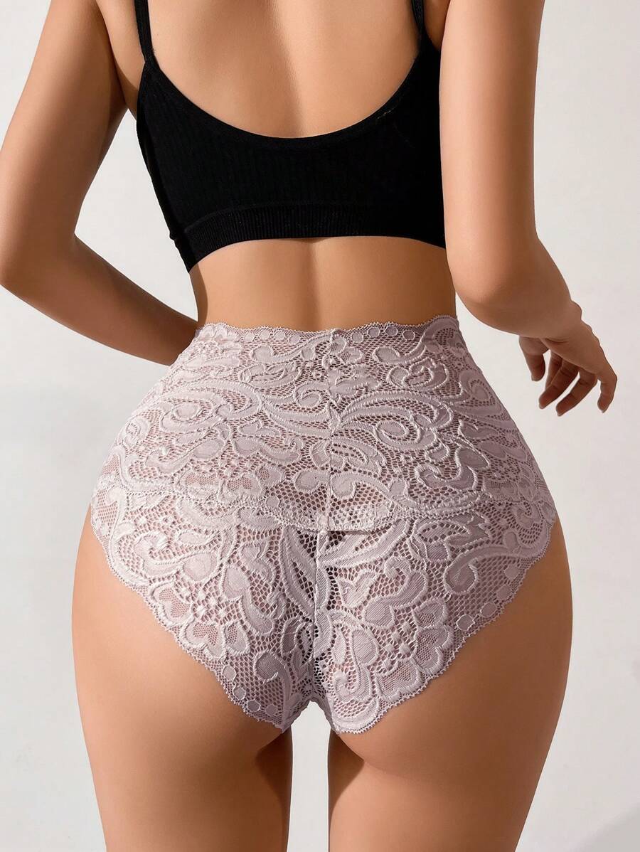 Ropa interior elegante y romantica de encaje con talle alto, lenceria de color albaricoque