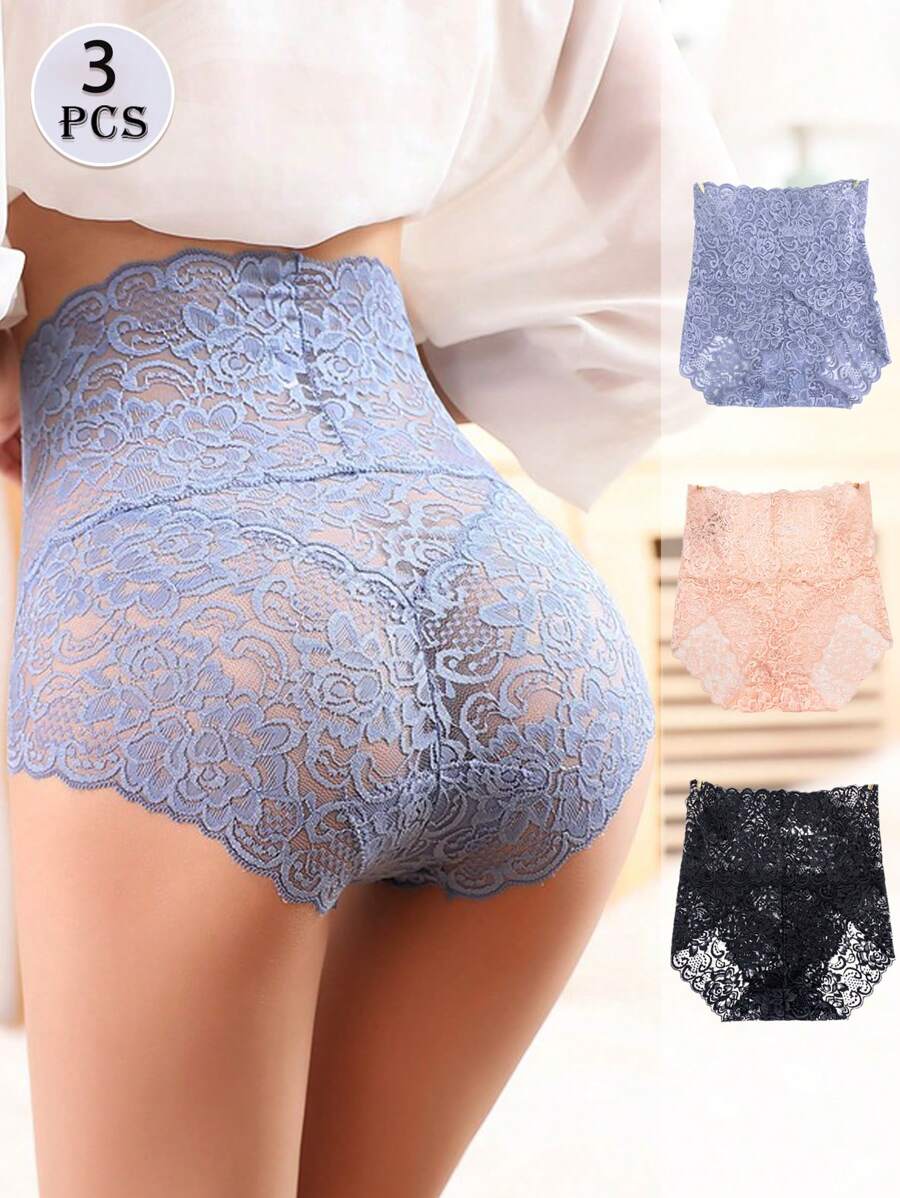 3 uds bragas de encaje de cintura alta para mujer sexy control de barriga patron de elevacion de trasero bragas transparentes sin costuras lenceria sexy