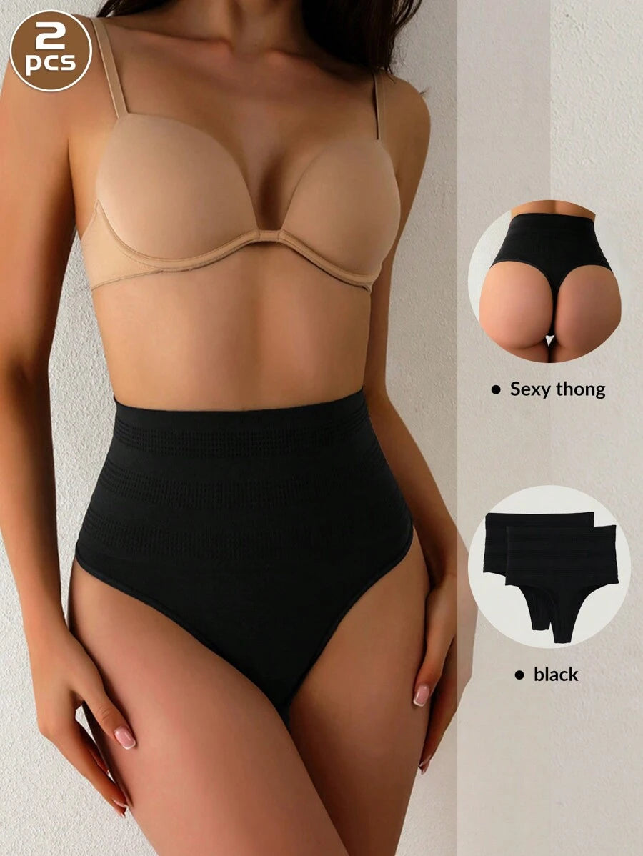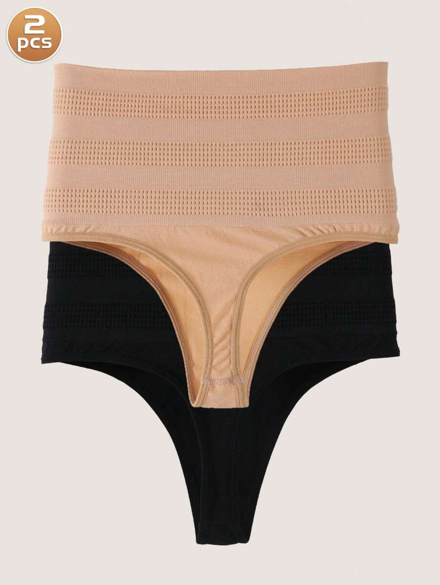 2 piezas triangulo en forma de tanga, ropa interior sexy de control del abdomen y moldeadora de body de alta cintura para mujeres