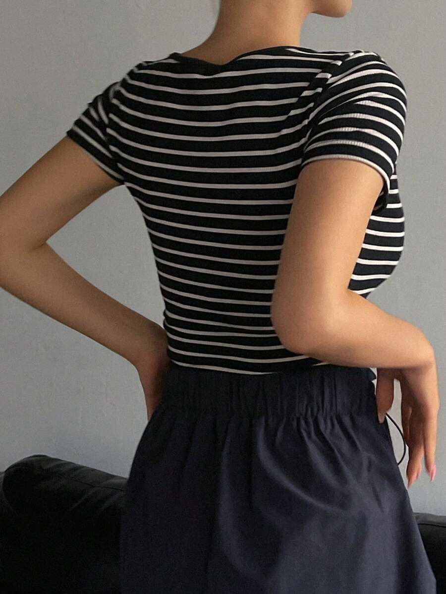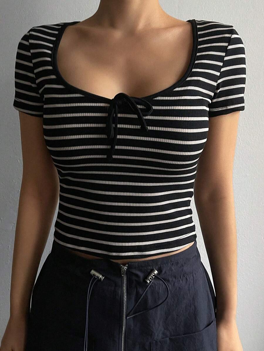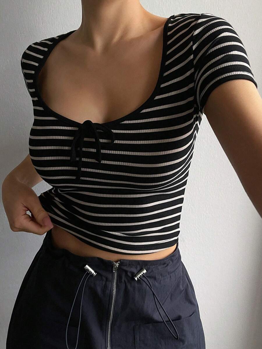 Camisa de mujer con cuello redondo envuelto y lazo, top de verano lindo en estilo y2k, crop tops para mujer
