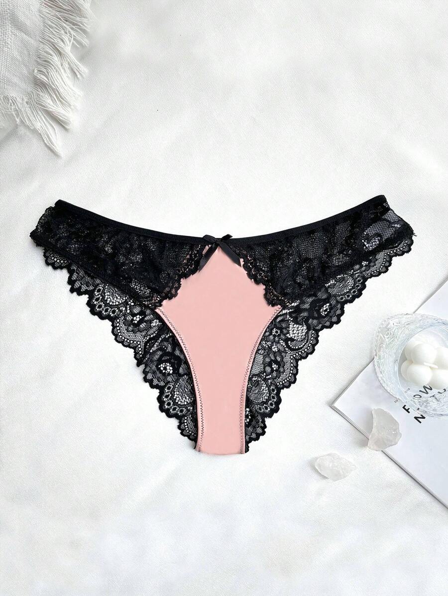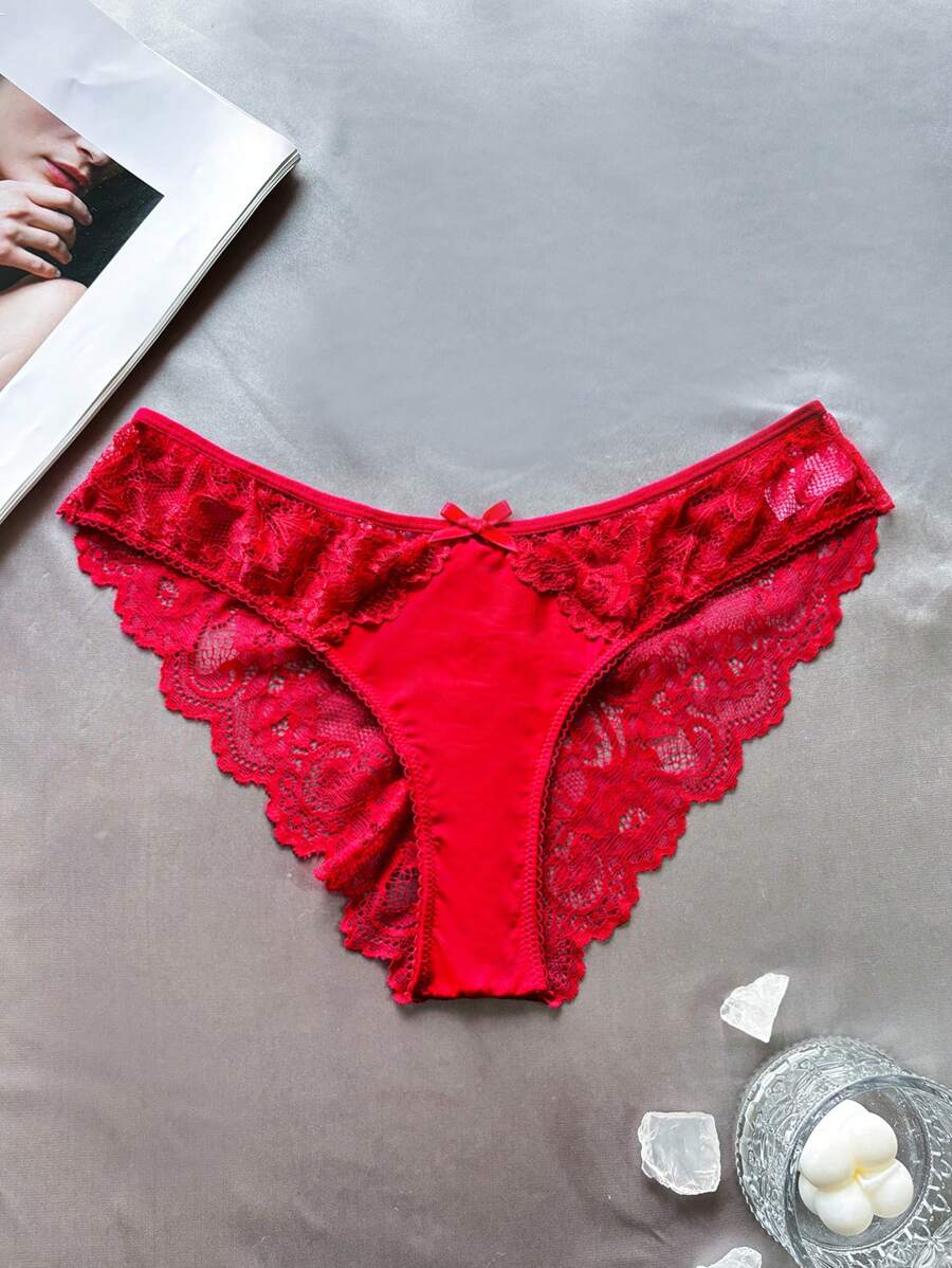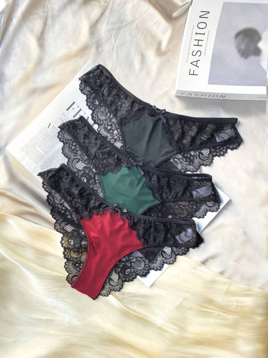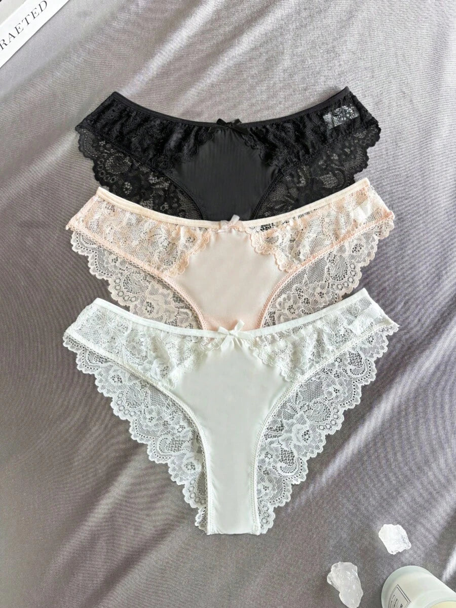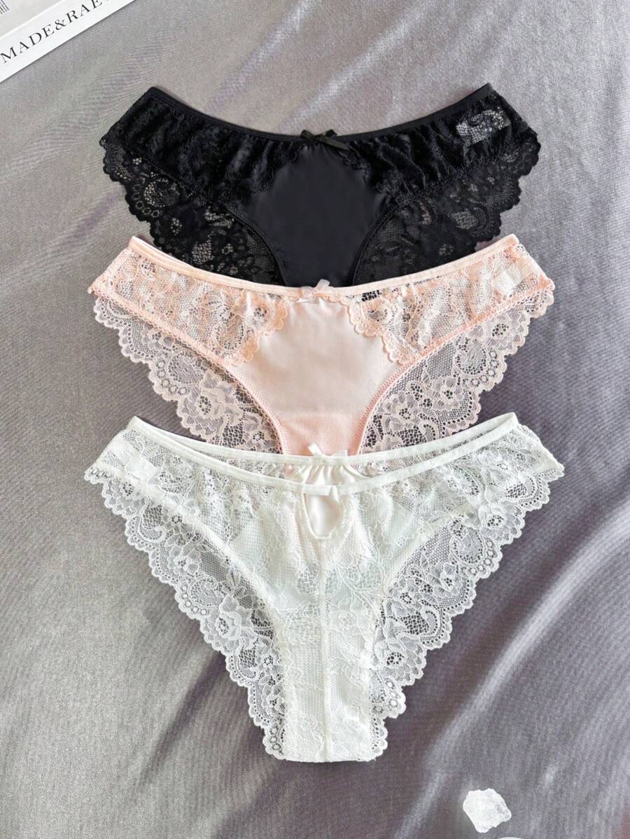 3 piezas de ropa interior de mujer de unicolor con encaje y decoracion de mono en la cintura baja