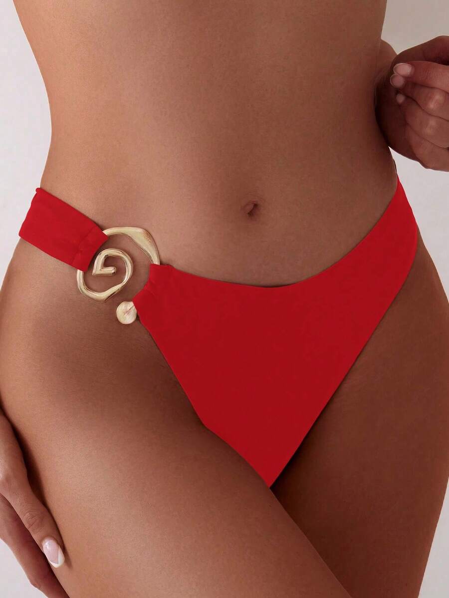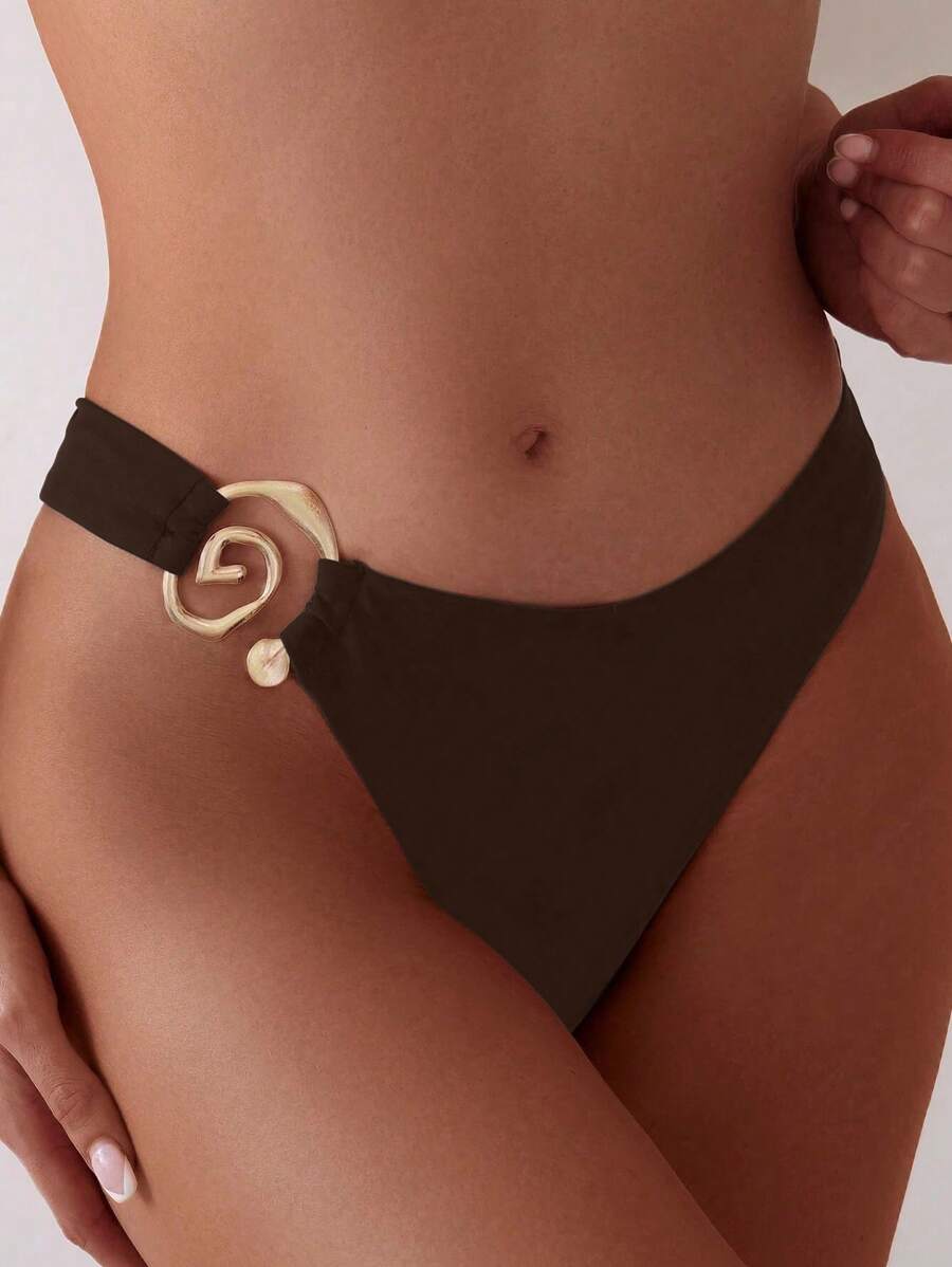 Bottom de bikini de unicolor, de uso diario y minimalista con hebilla de anillo dorado para el verano