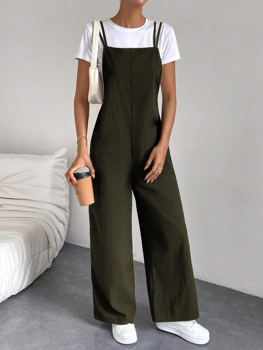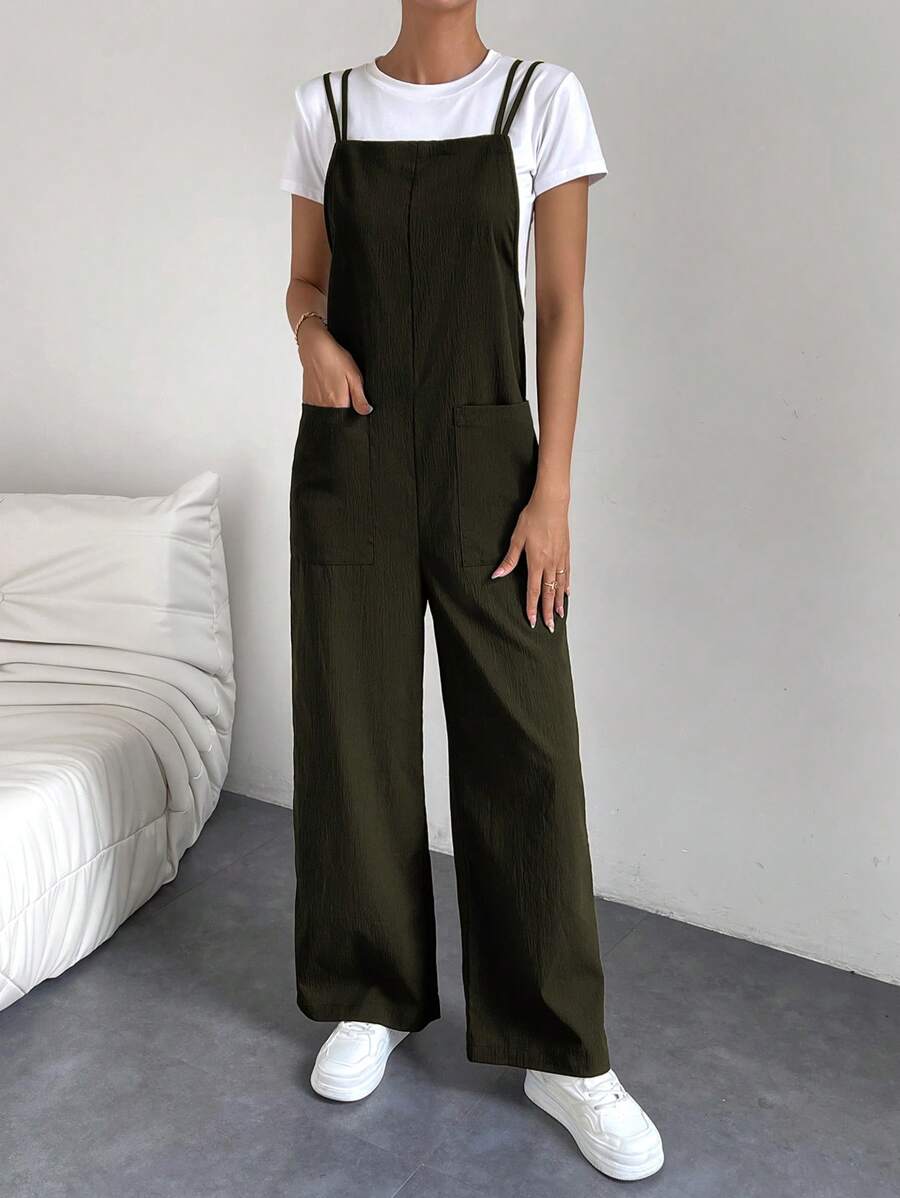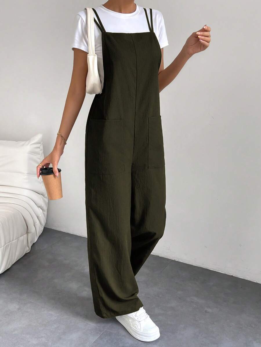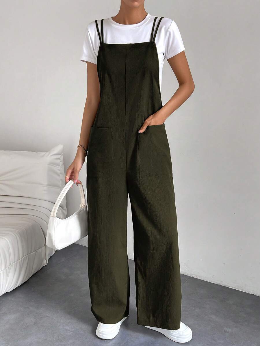 Zielony enterizo casual de mujer con tirantes ajustables, adecuado para la oficina, la escuela y todas las estaciones