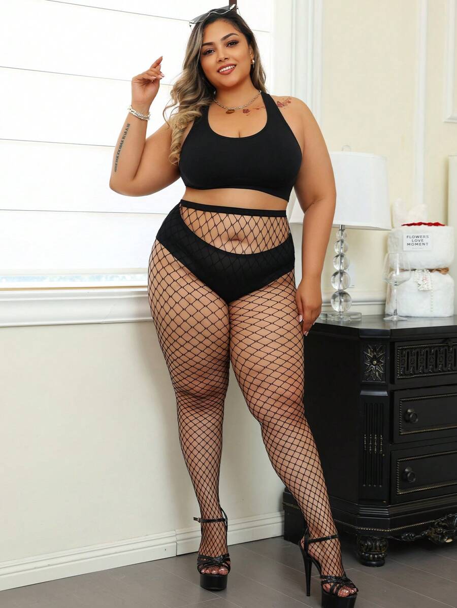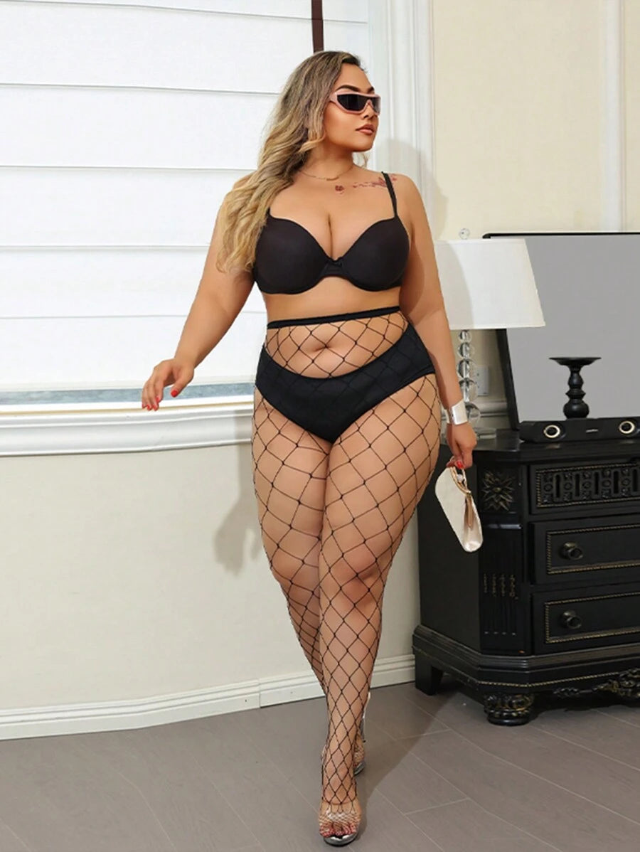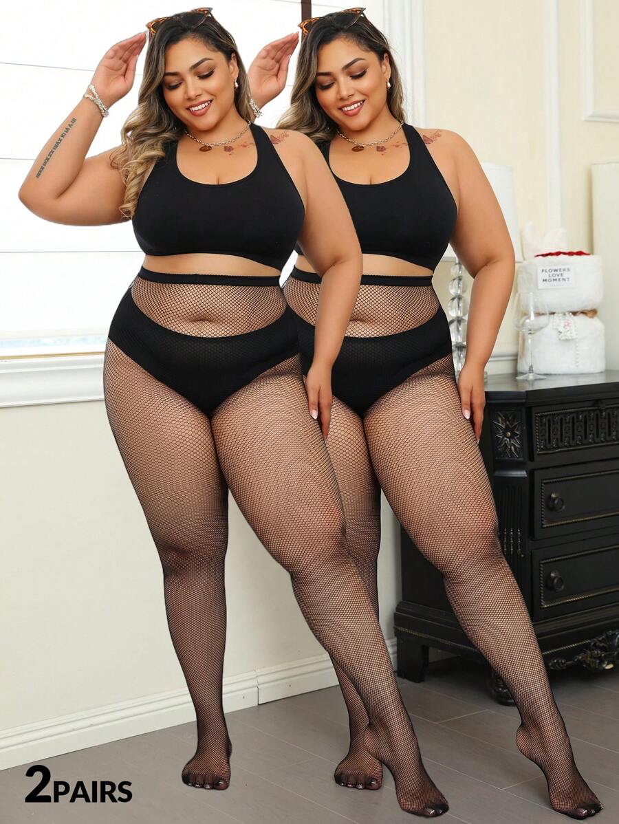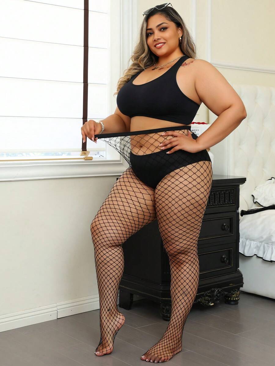 1 pieza medias de red negras de talla grande con alta elasticidad y aberturas, adecuadas para todas las temporadas de mujer