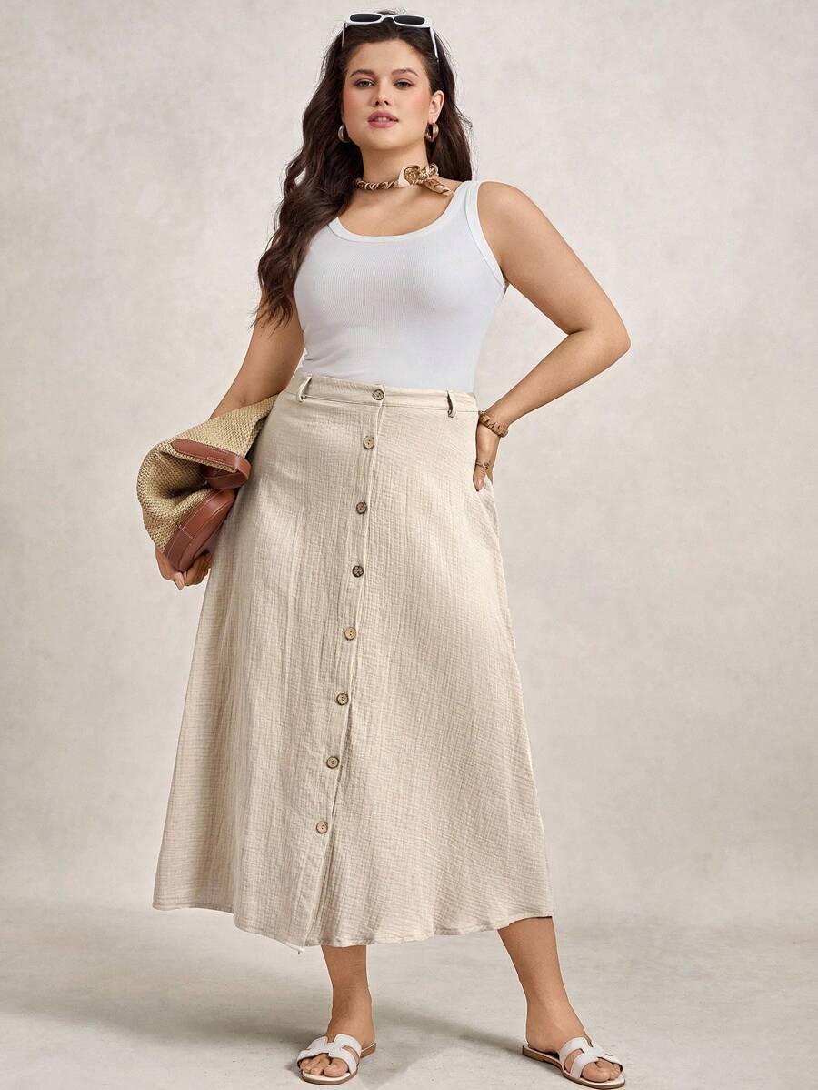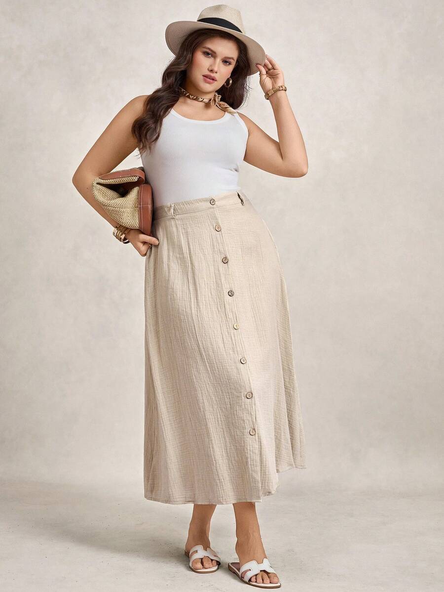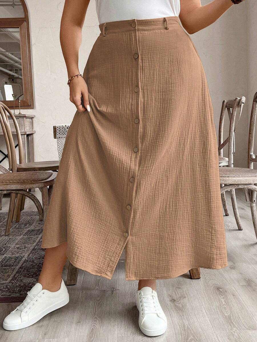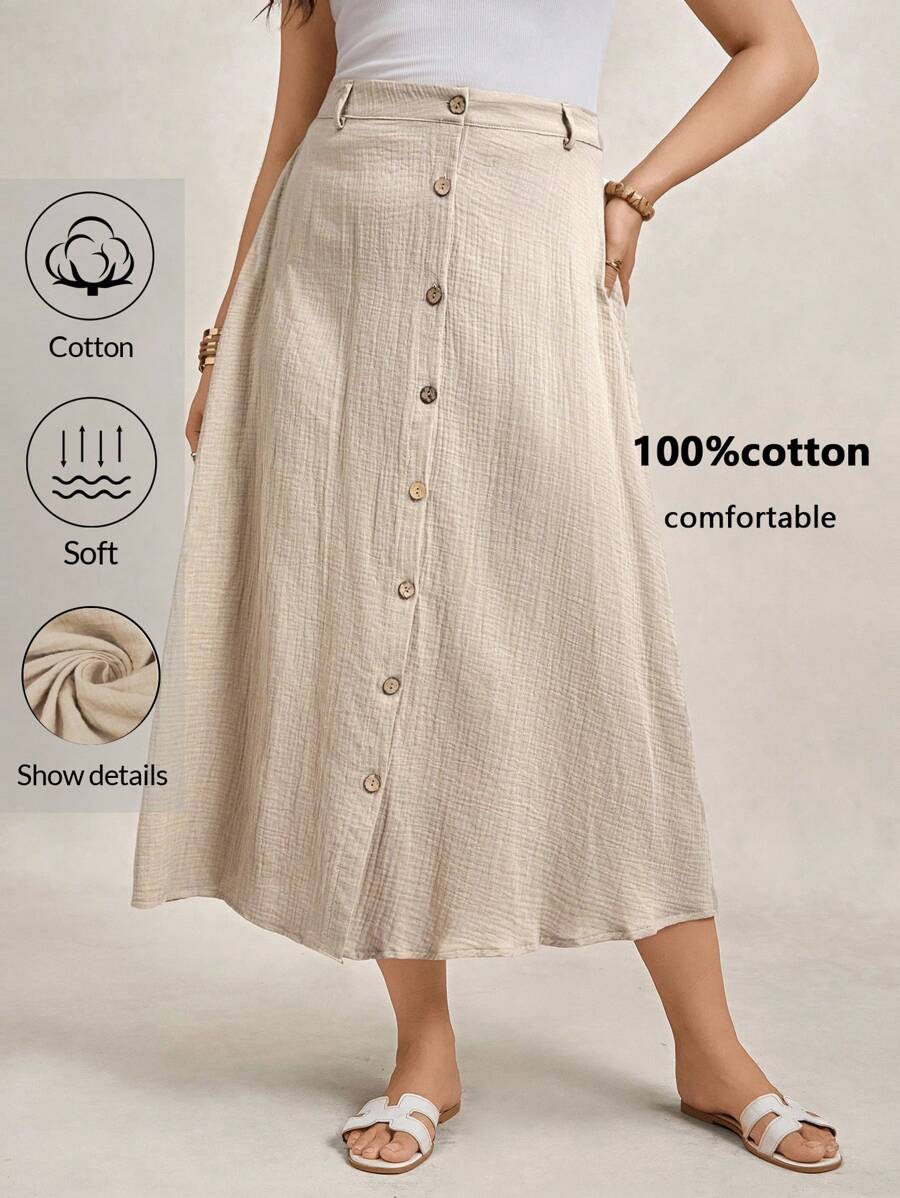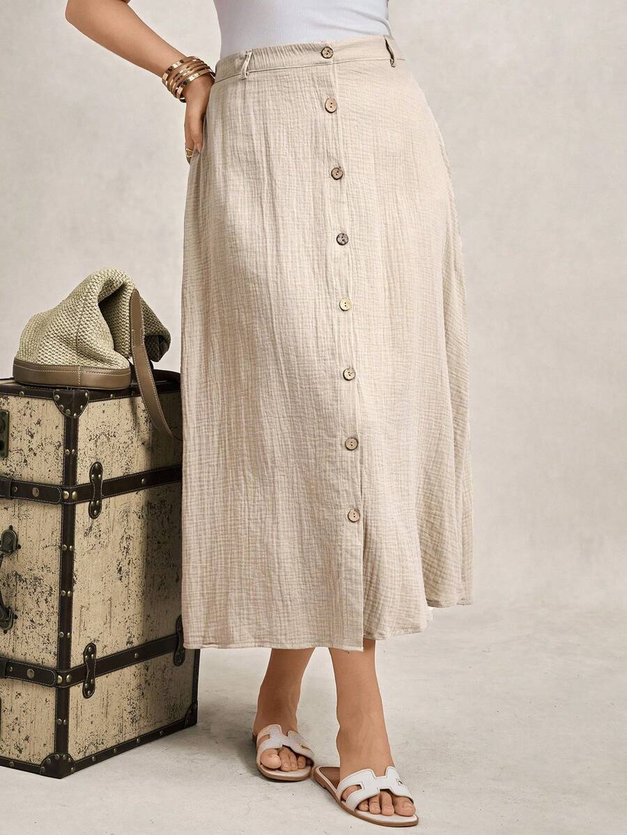 Zelara falda de algodon comoda de talla grande para mujer con botones de color albaricoque casual