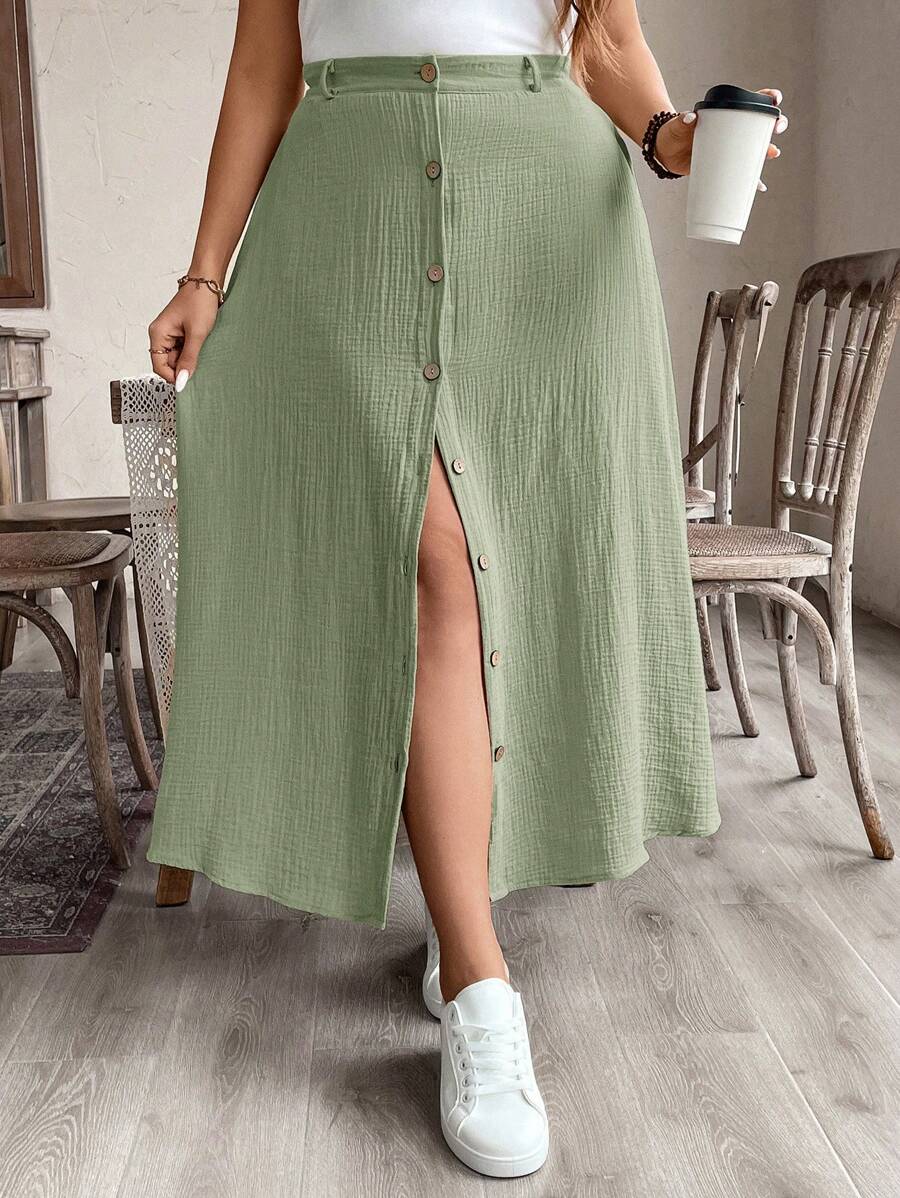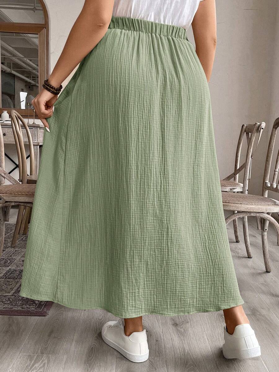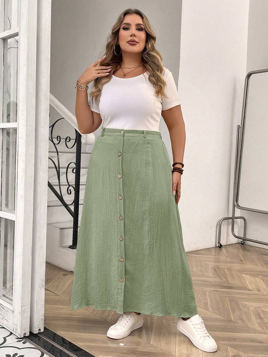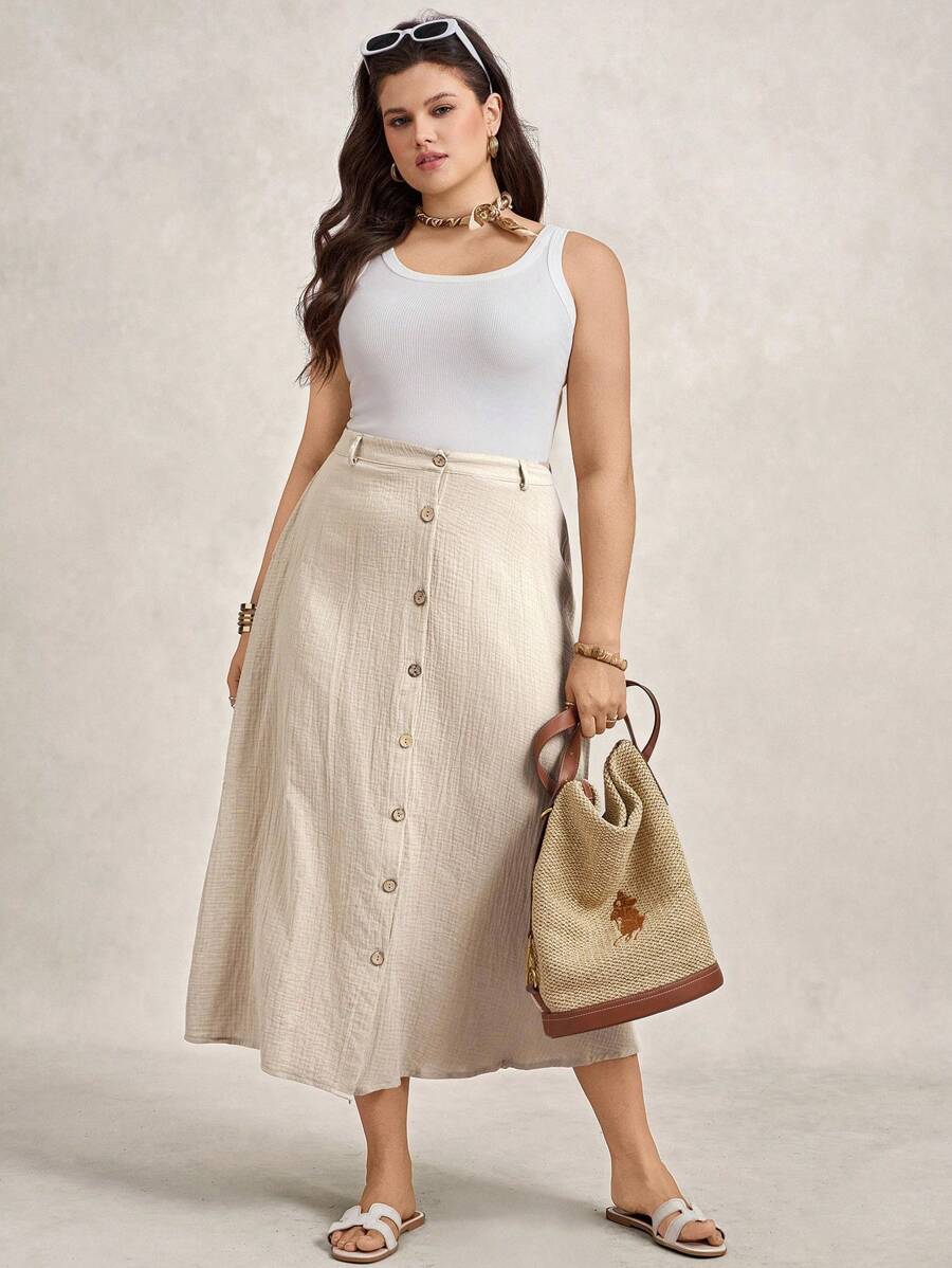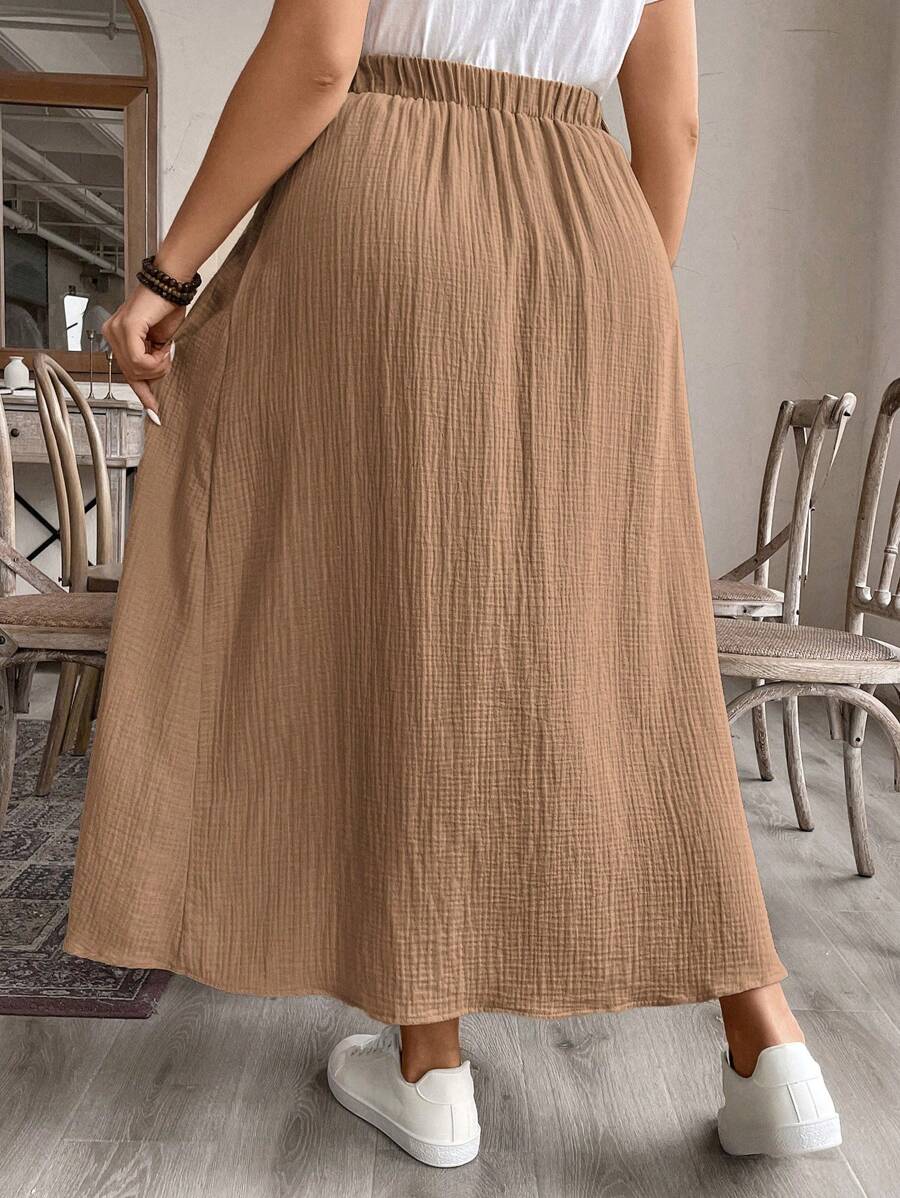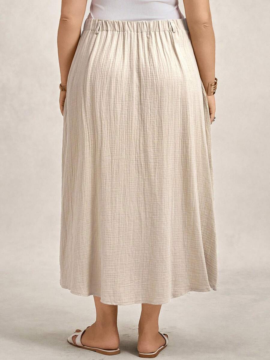 Zelara falda de algodon comoda de talla grande para mujer con botones de color albaricoque casual