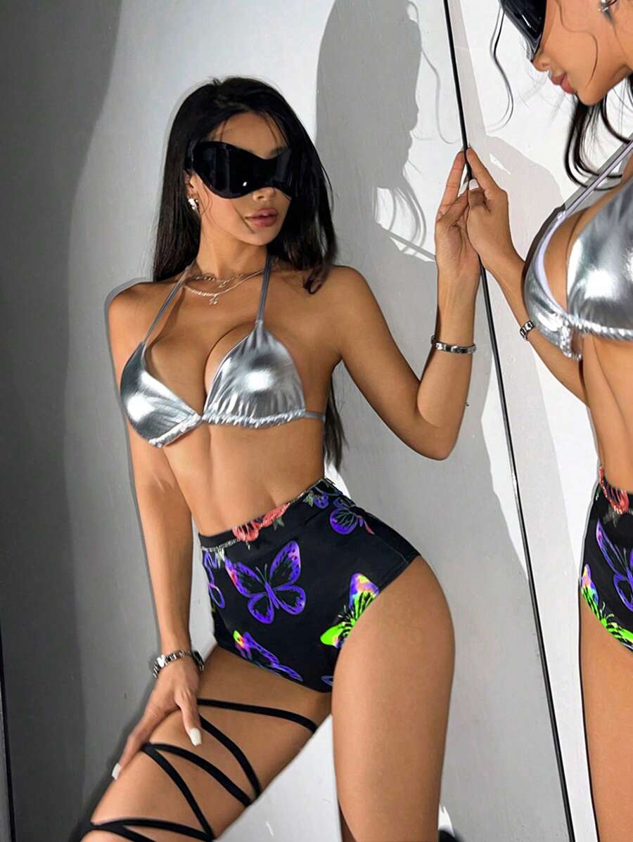 Egrlera pantalones cortos super cortos con estampado de mariposas fluorescentes de colores para look y2k