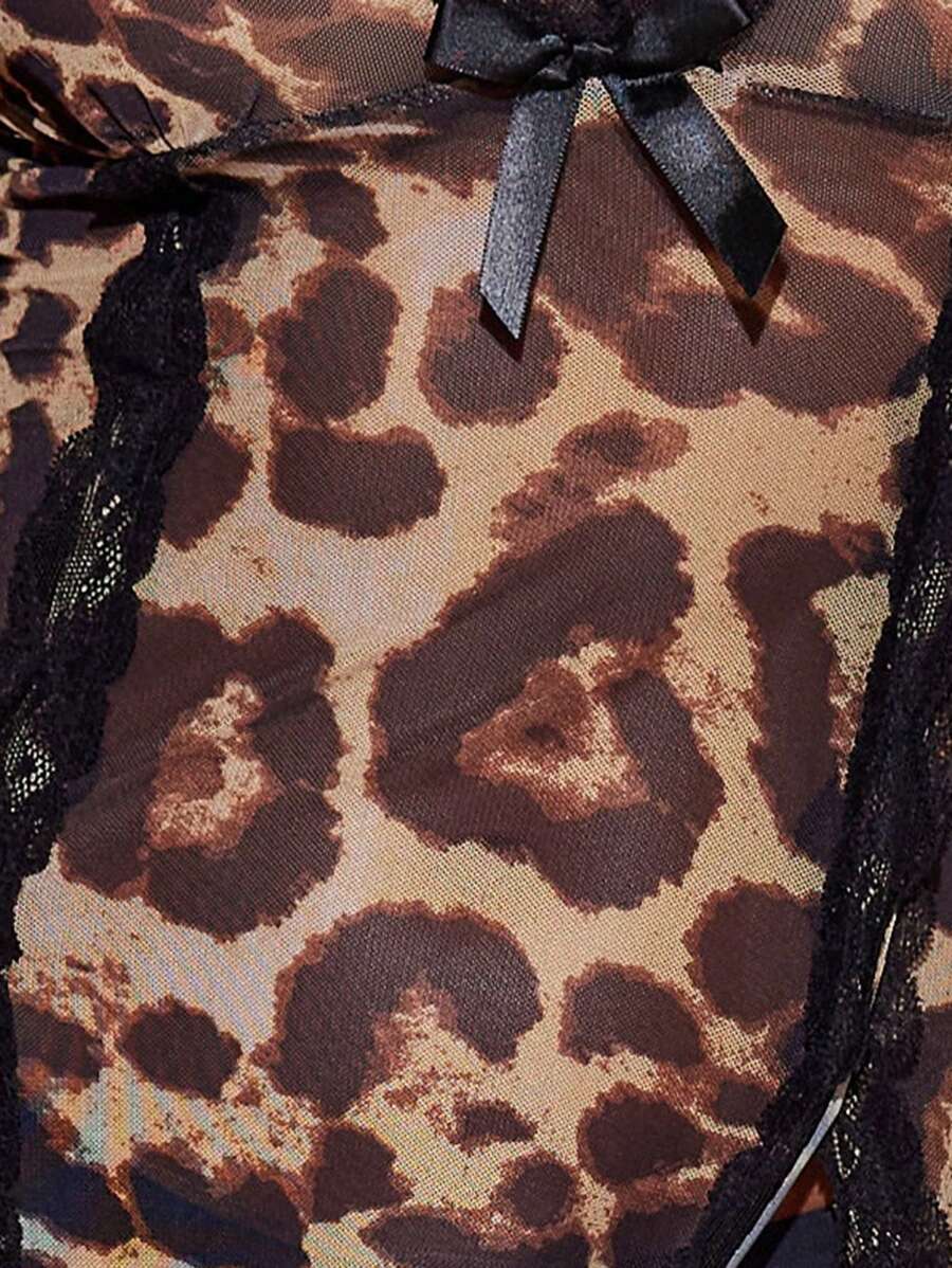 Vestido largo de dormir de estilo fashionista con camisola de encaje, contraste de malla y estampado floral para mujer