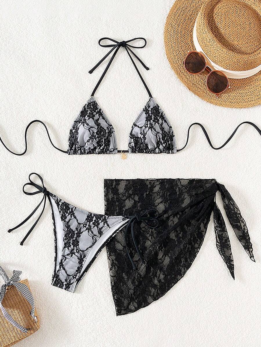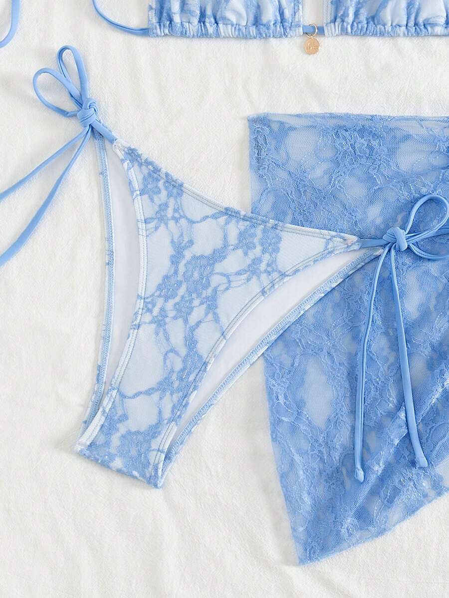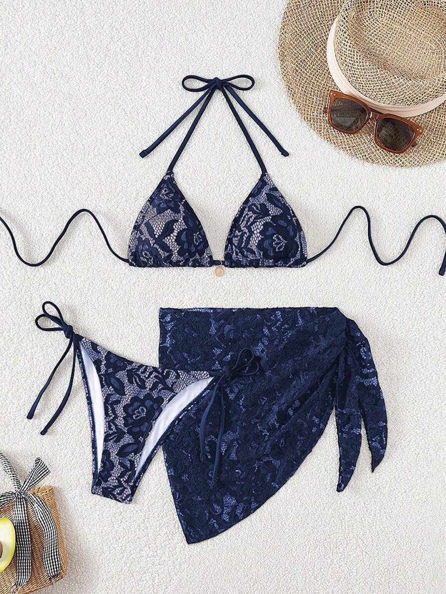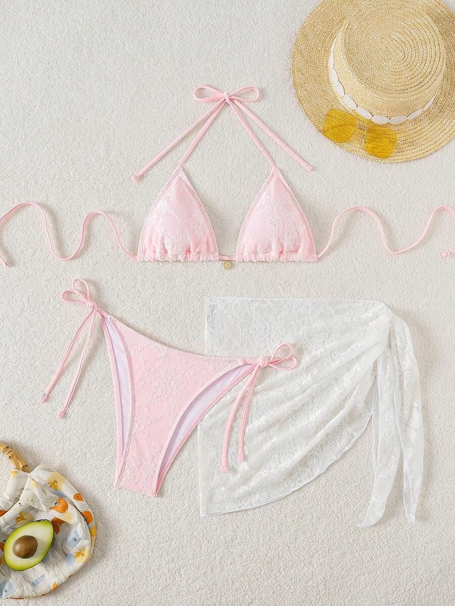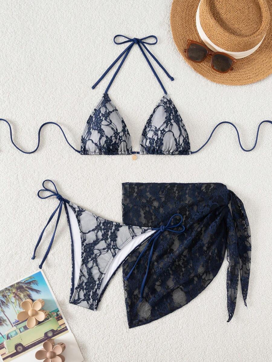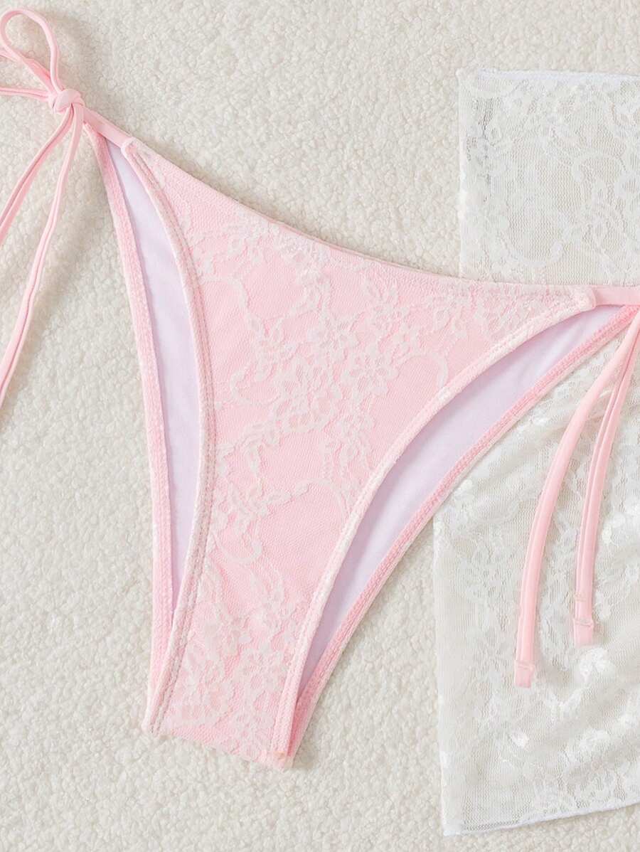 3 piezas conjunto de bikini de encaje de verano para mujer