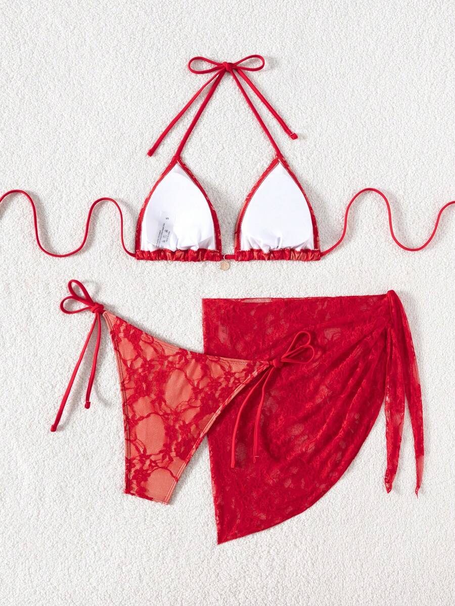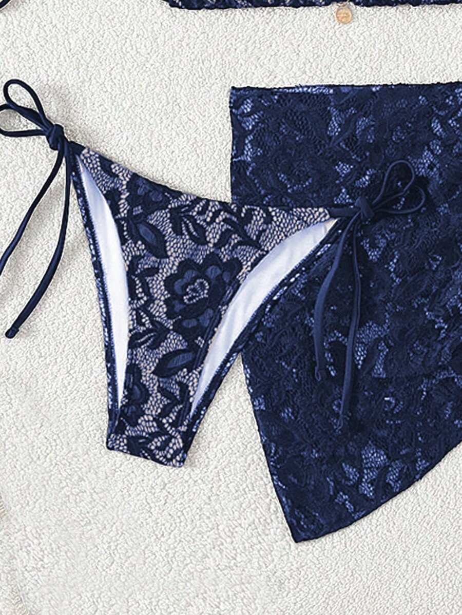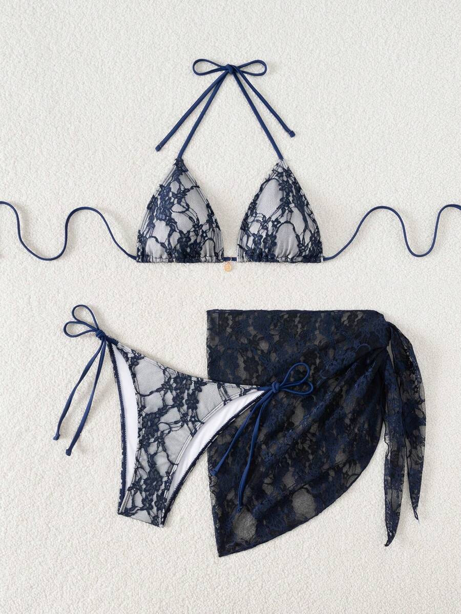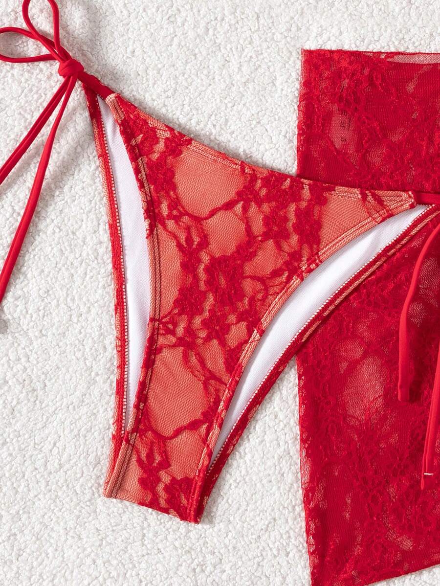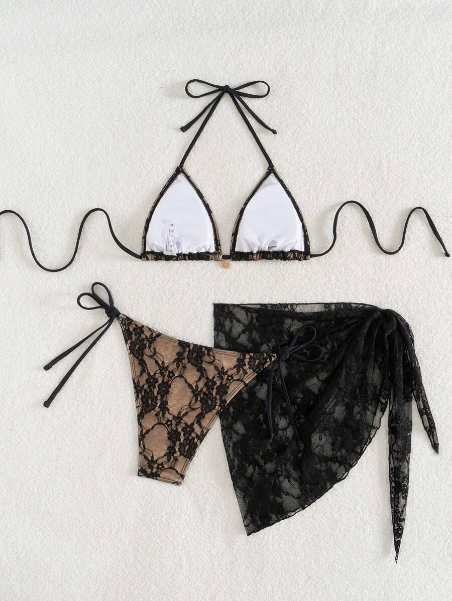 3 piezas conjunto de bikini de encaje de verano para mujer