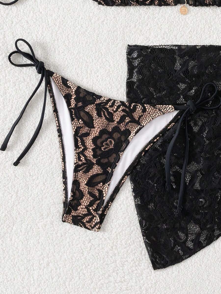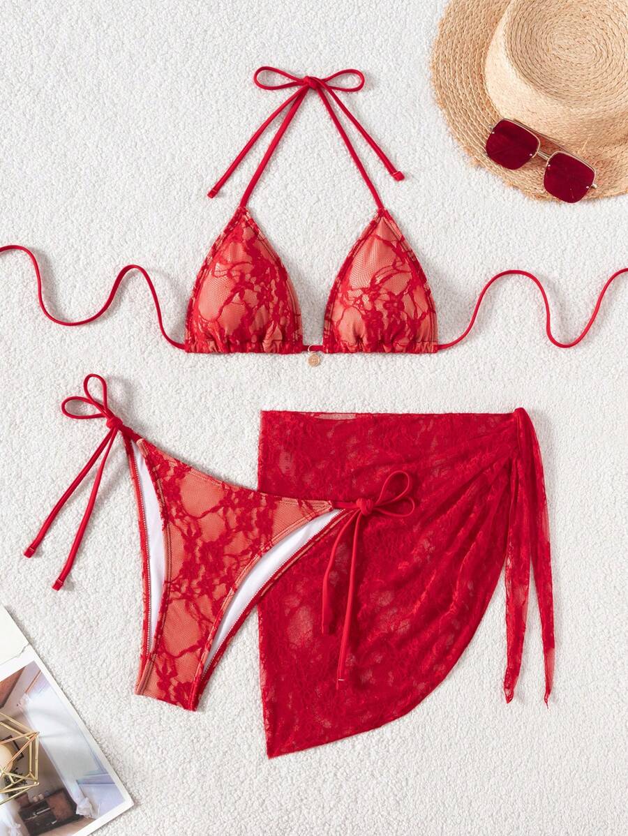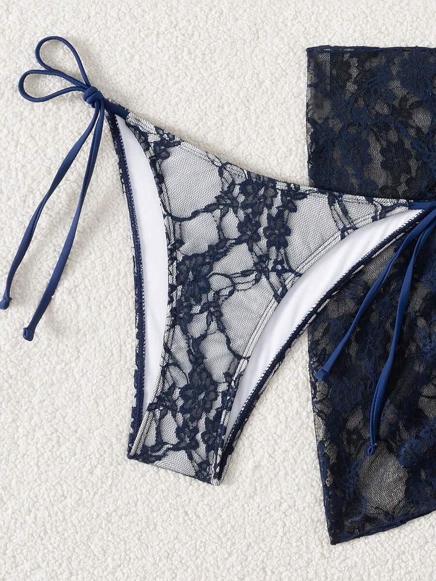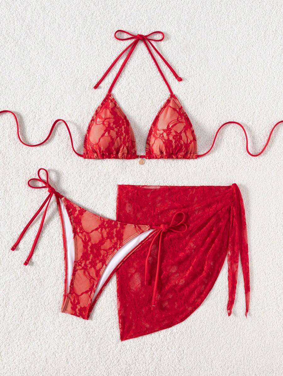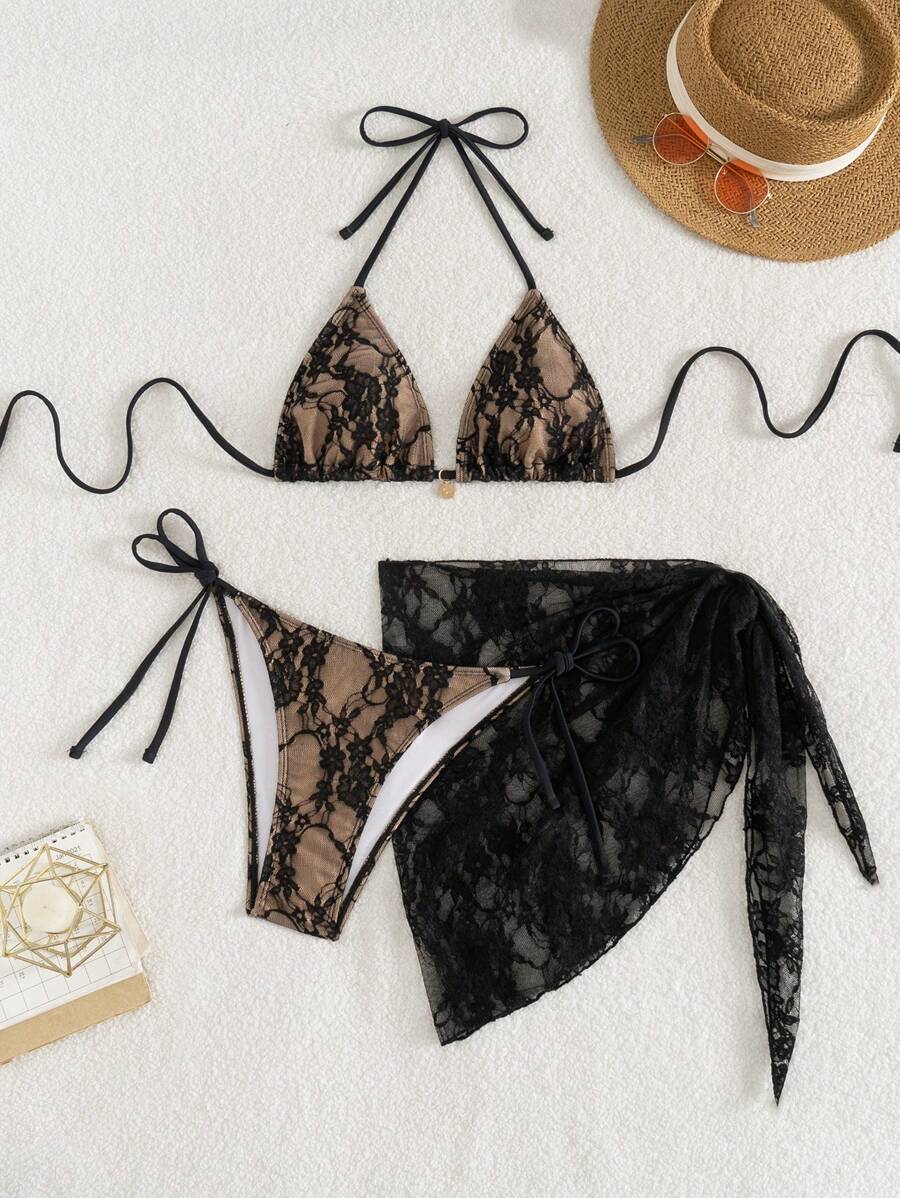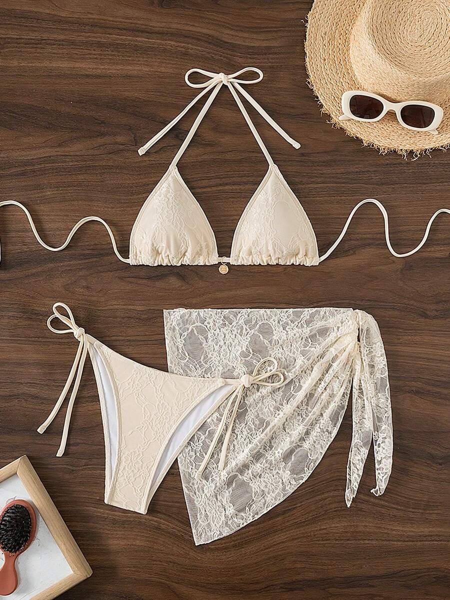 3 piezas conjunto de bikini de encaje de verano para mujer