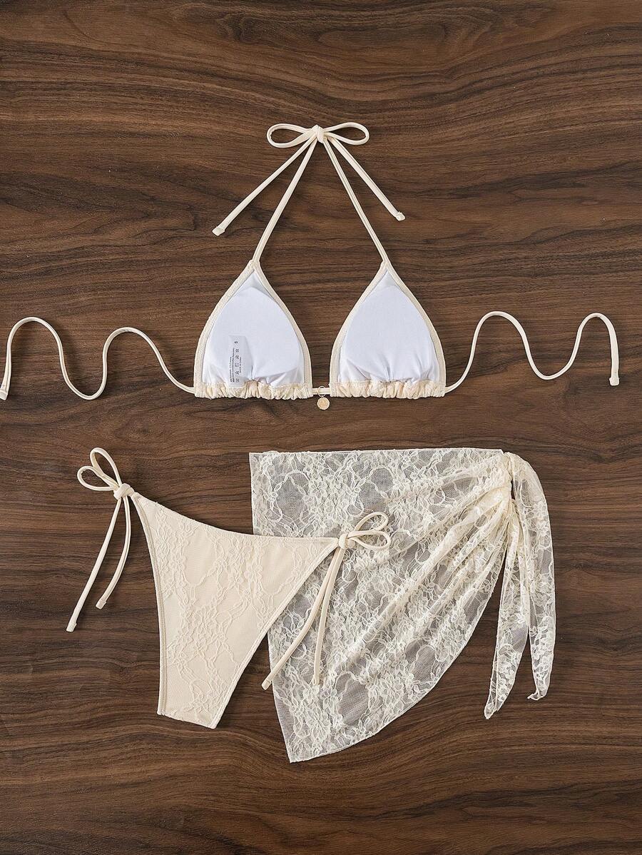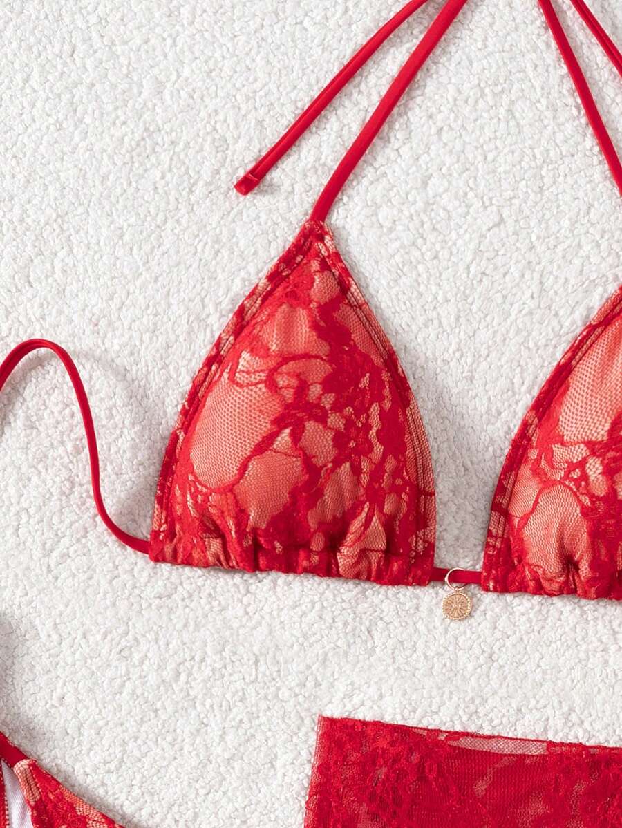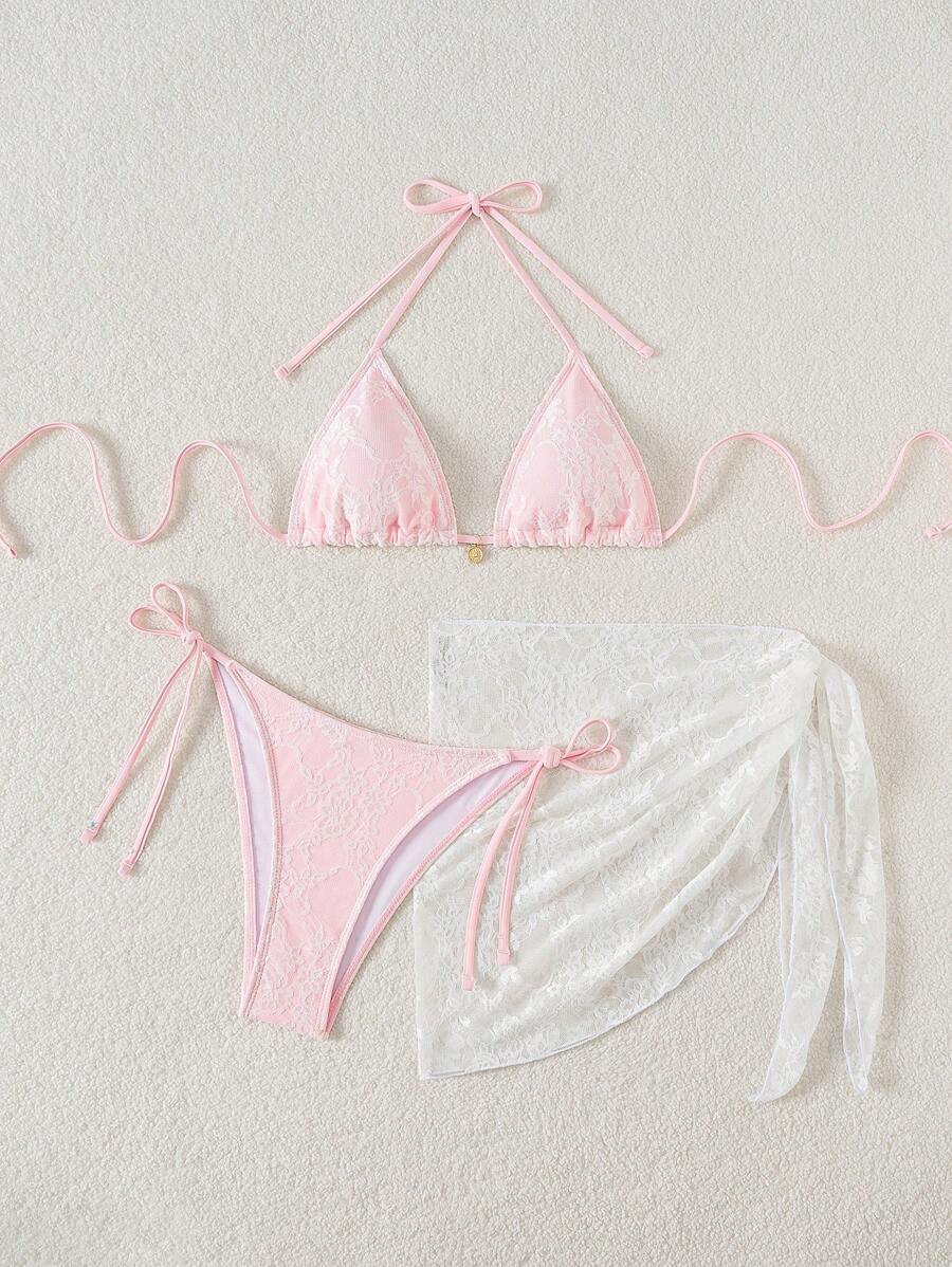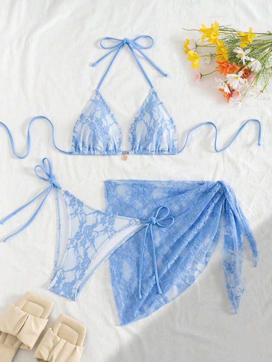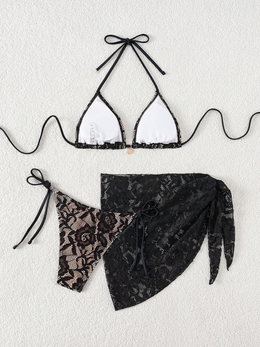 3 piezas conjunto de bikini de encaje de verano para mujer