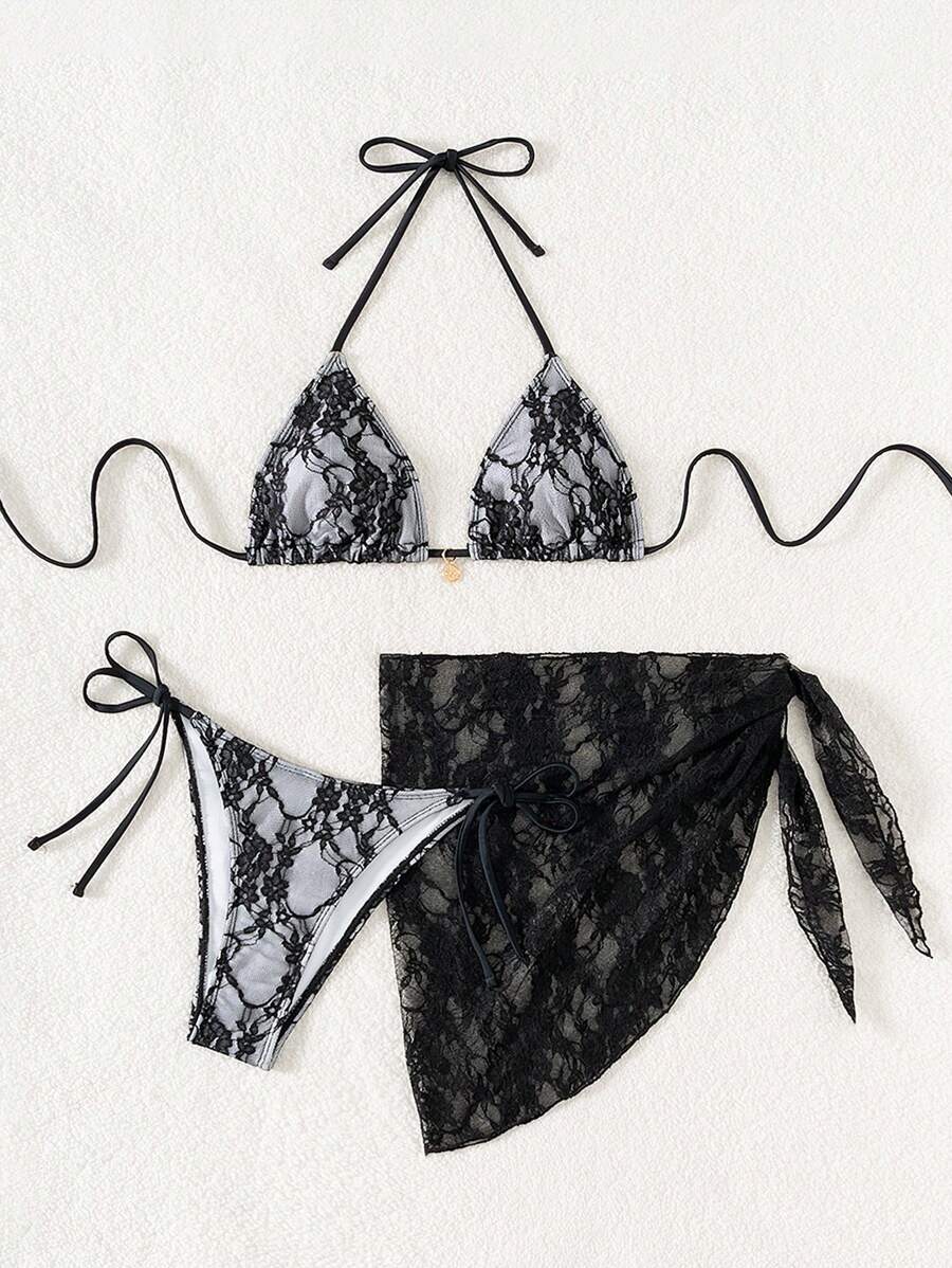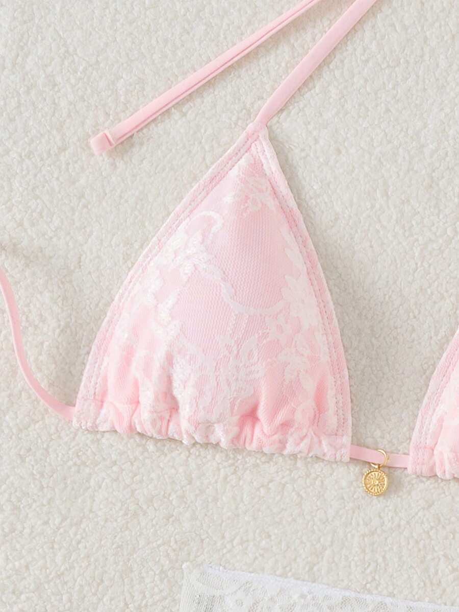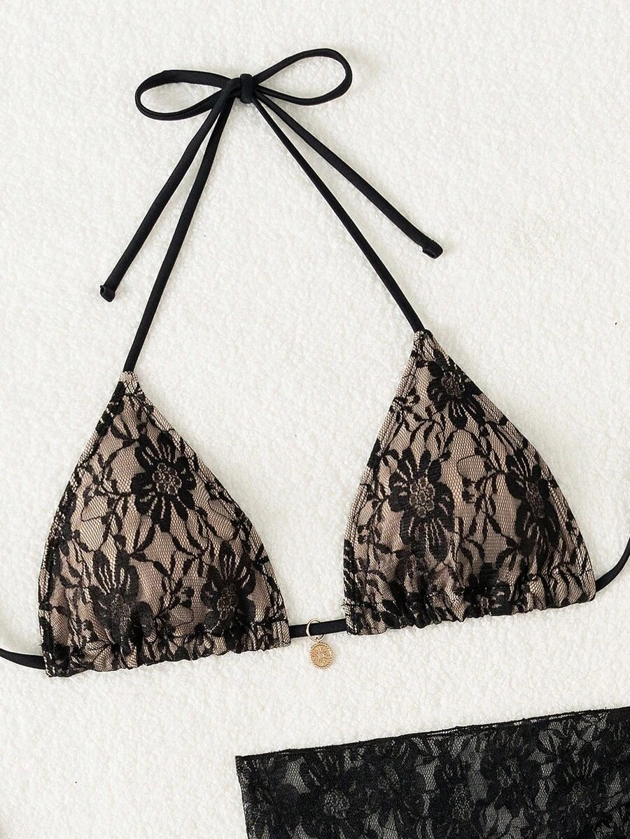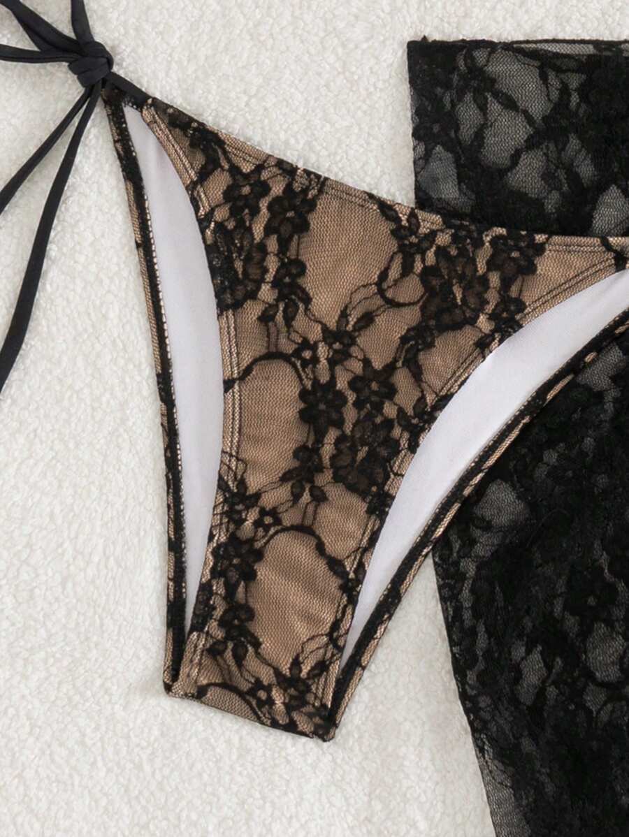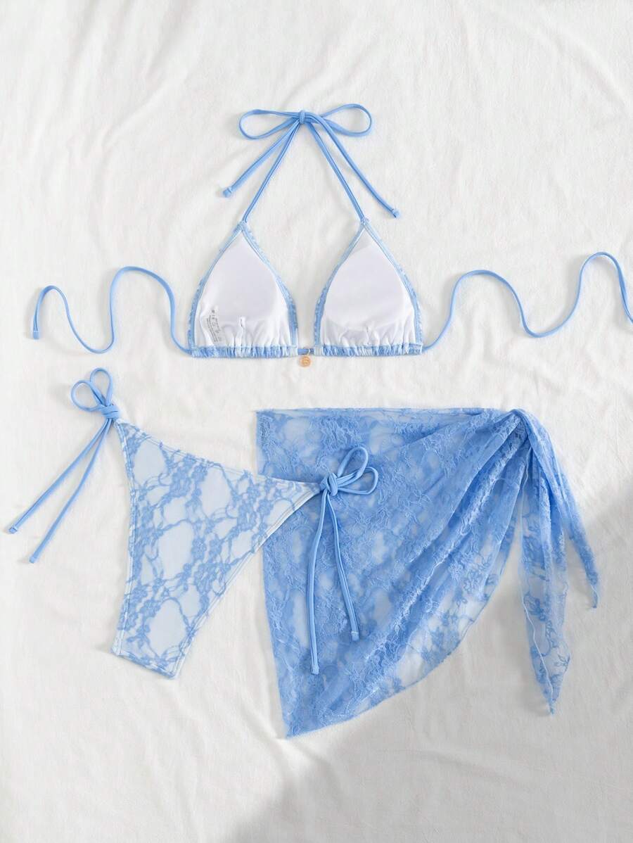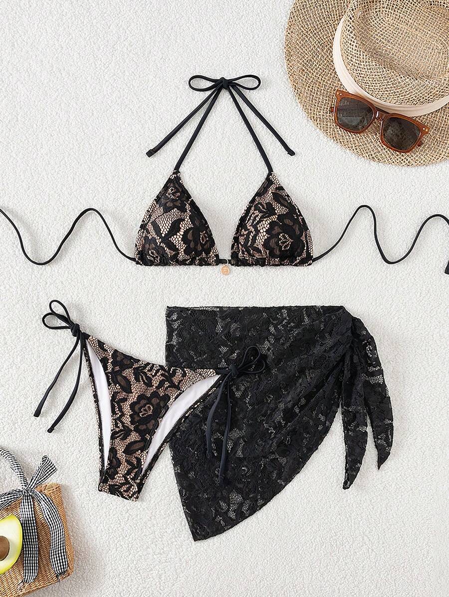 3 piezas conjunto de bikini de encaje de verano para mujer