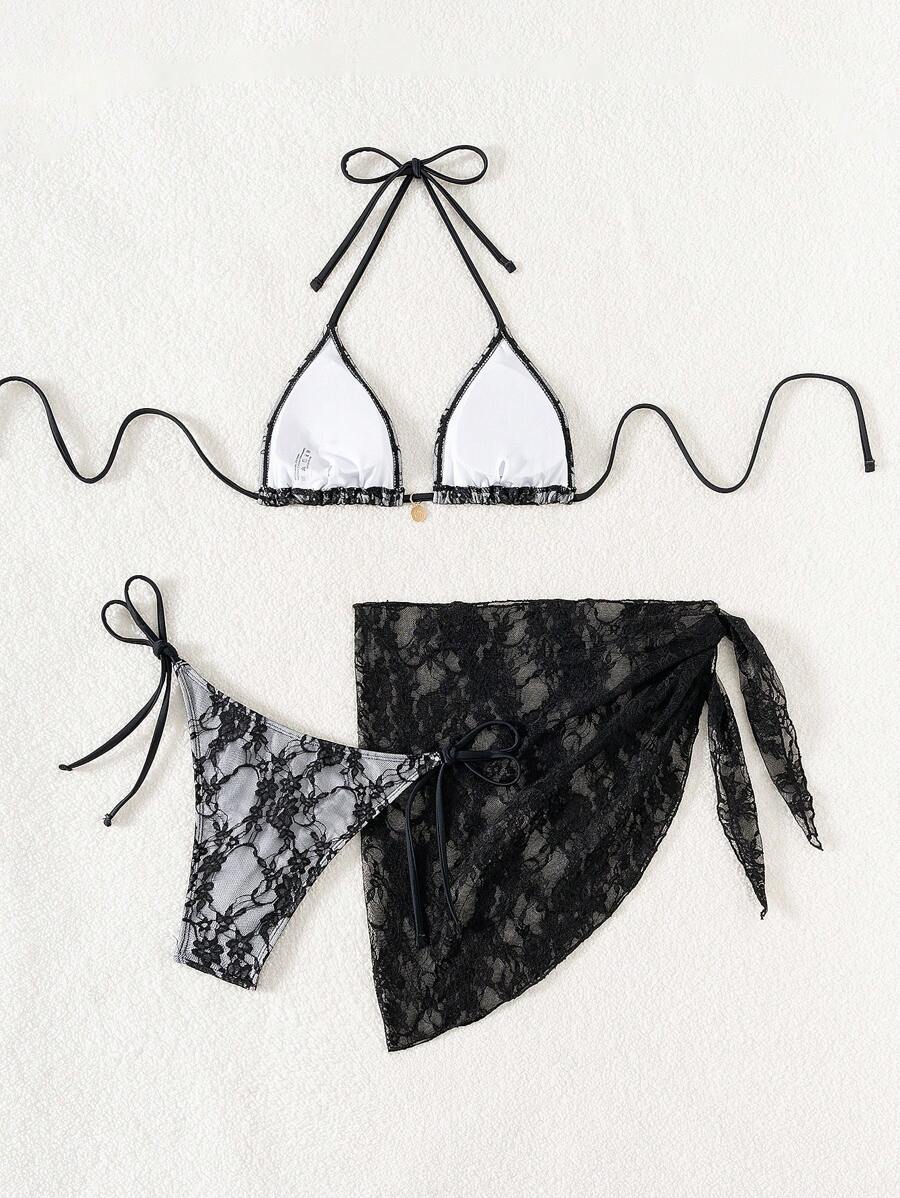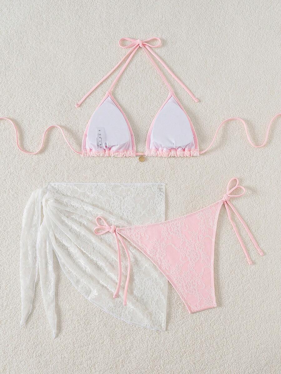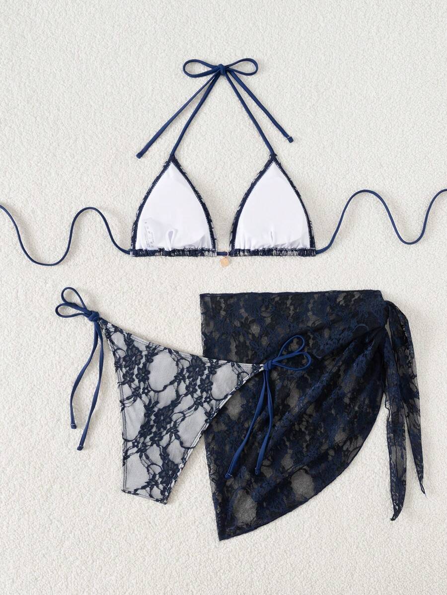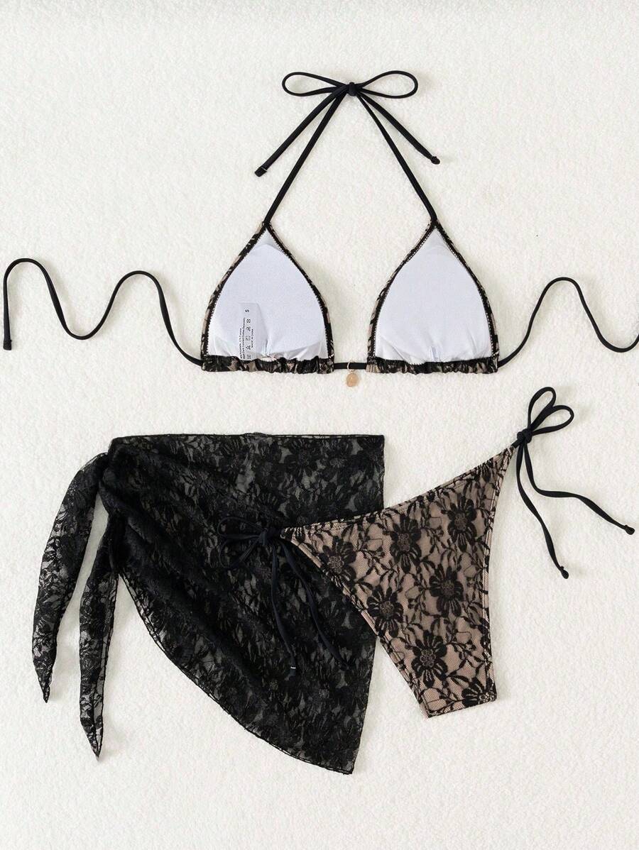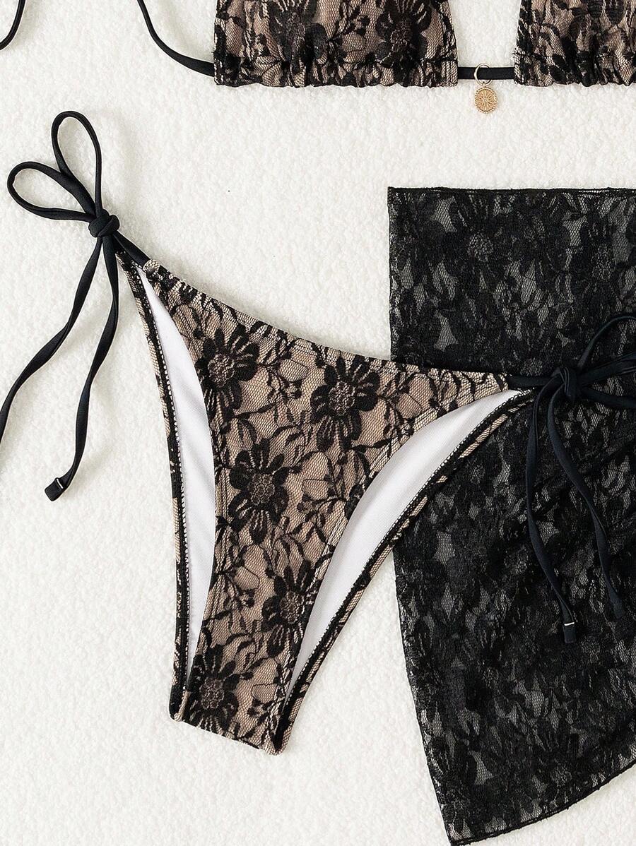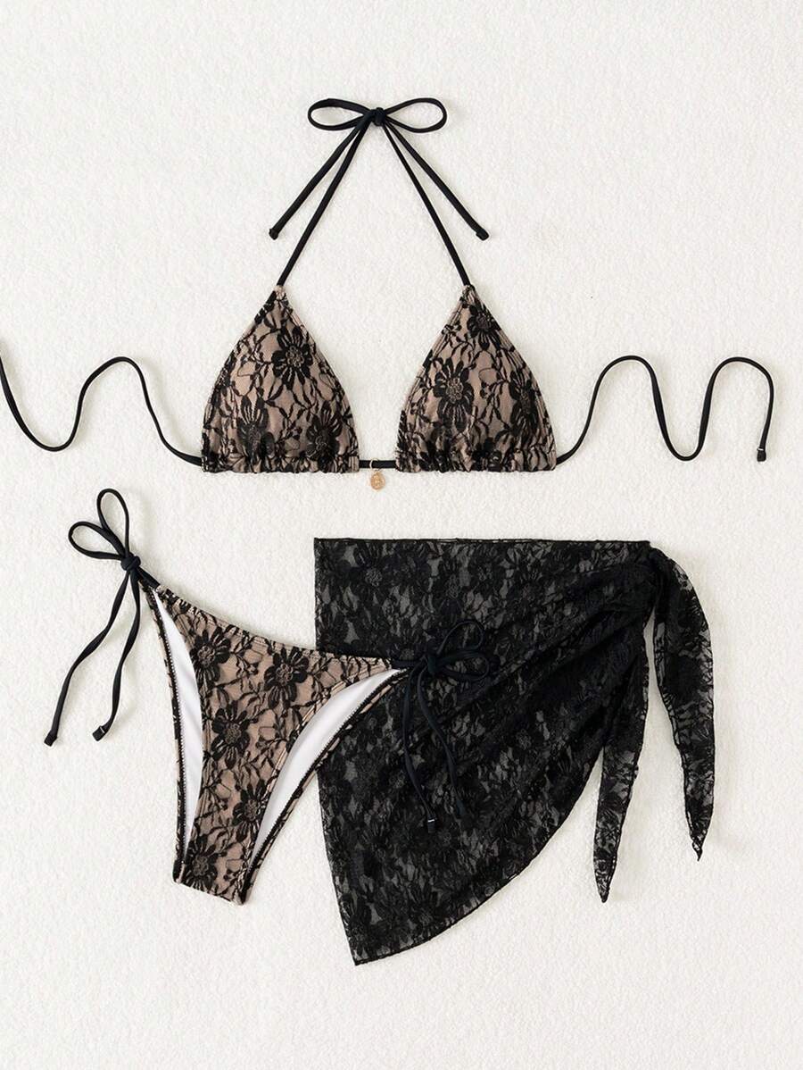 3 piezas conjunto de bikini de encaje de verano para mujer