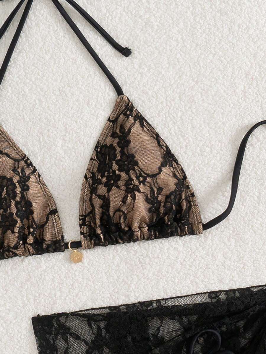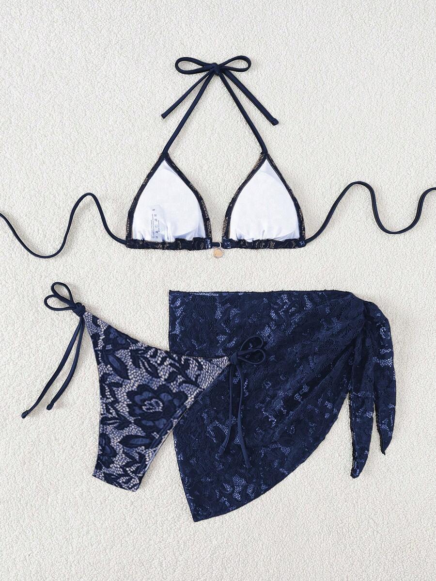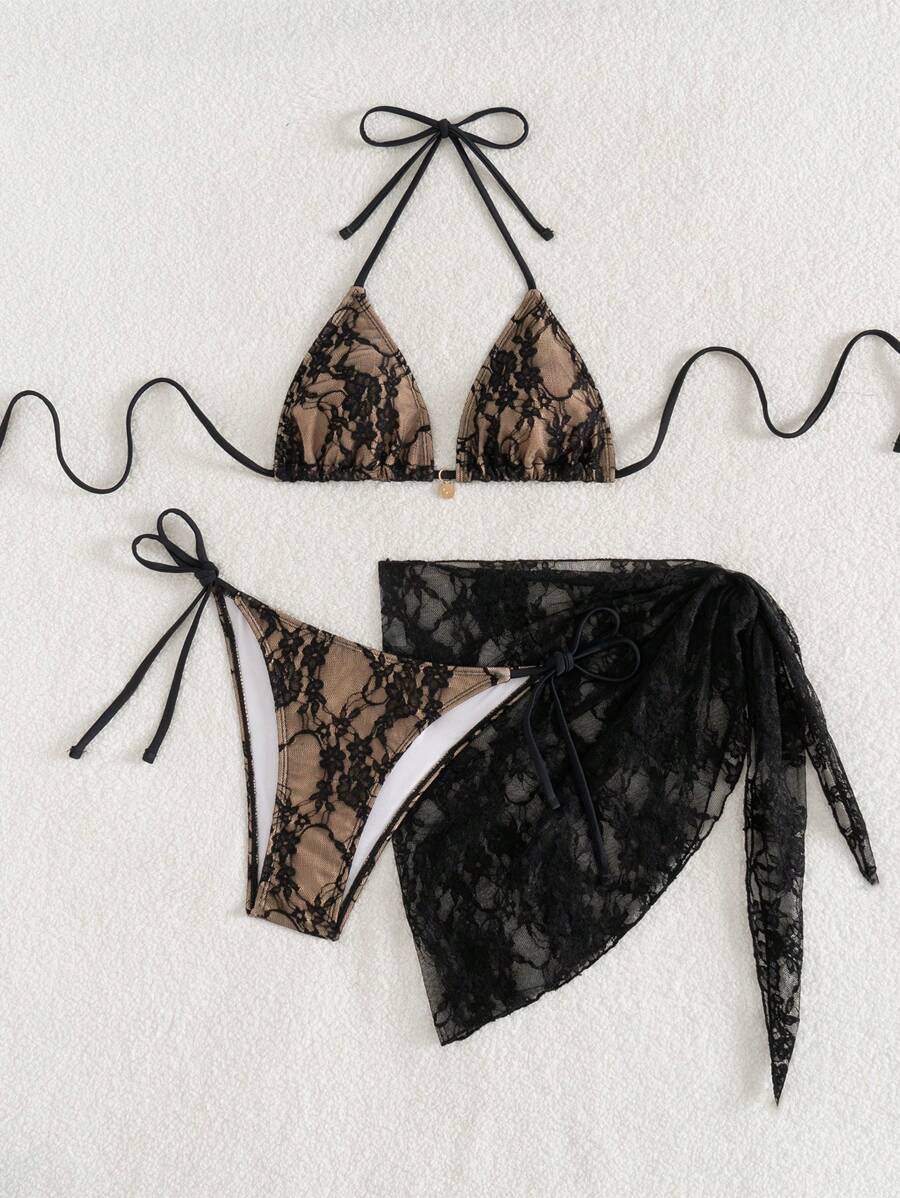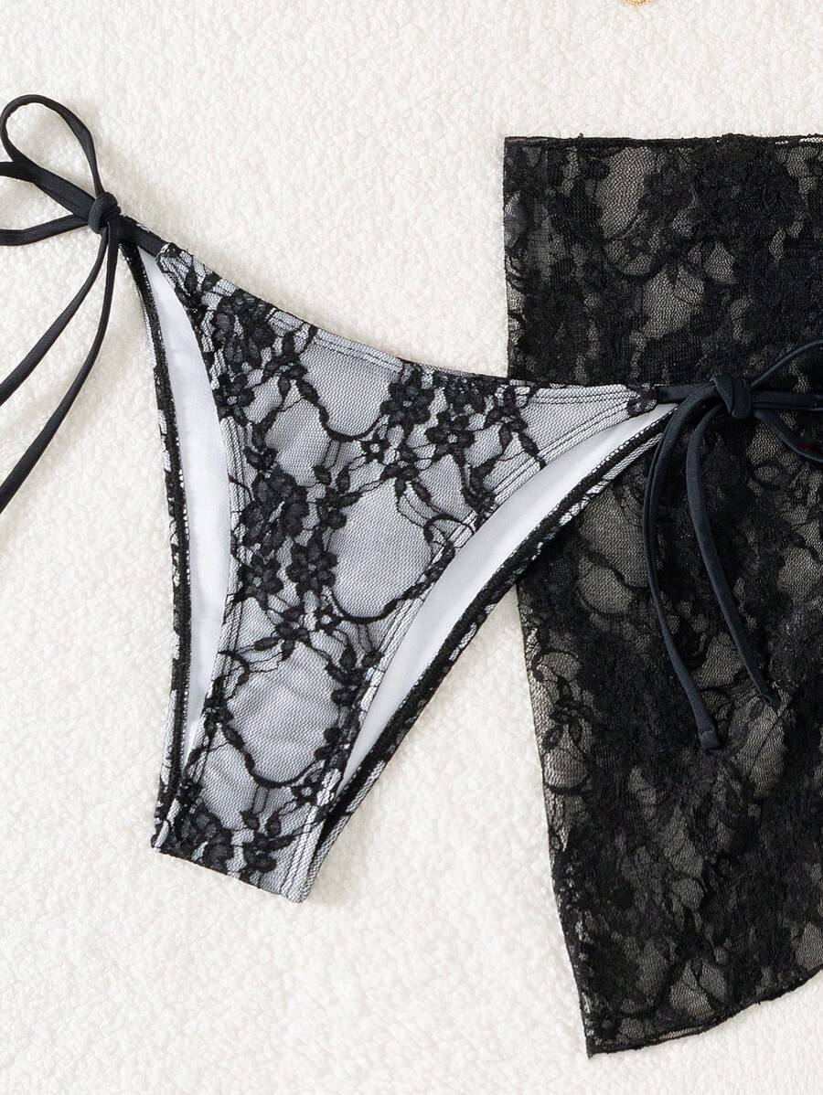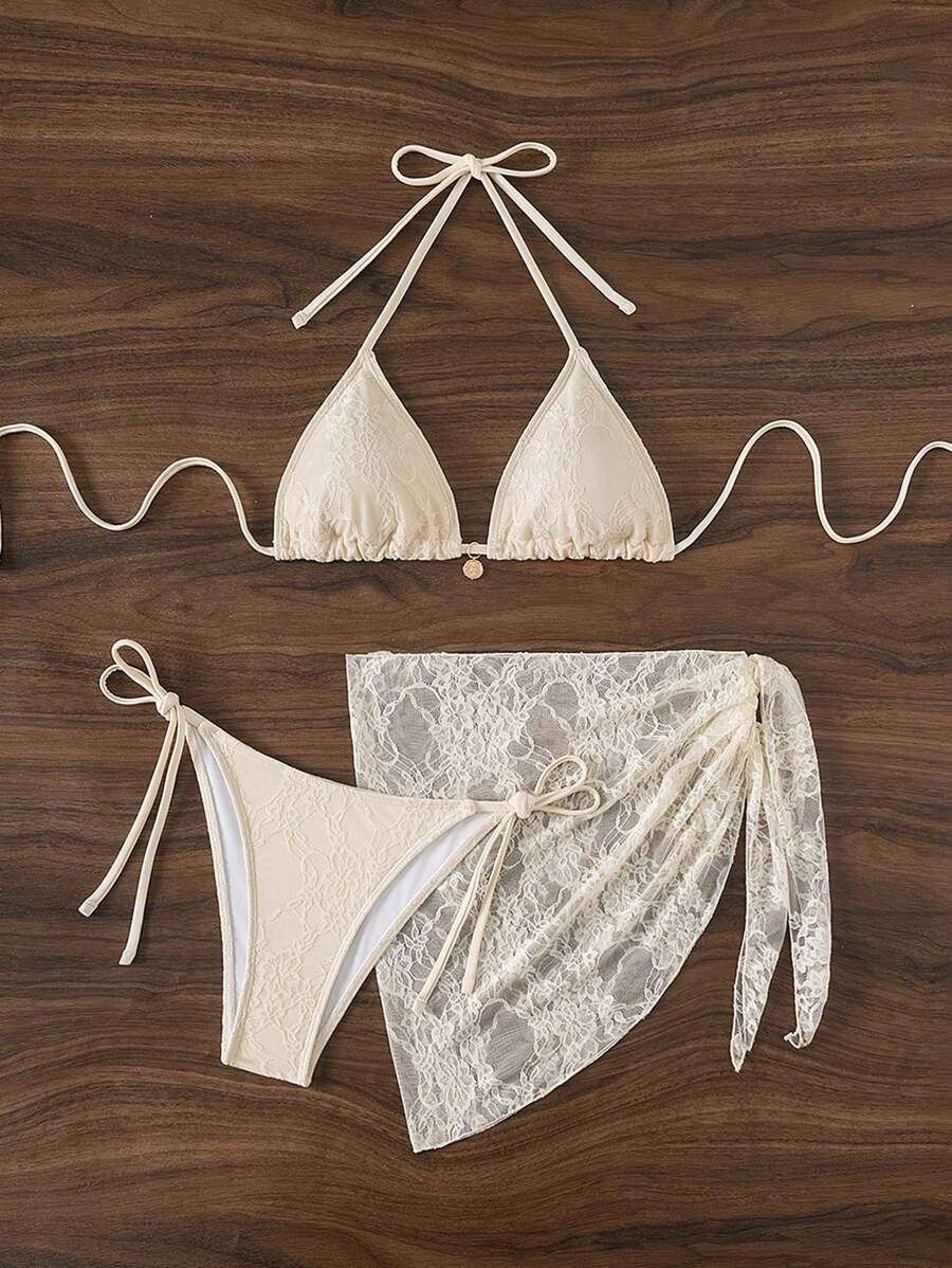 3 piezas conjunto de bikini de encaje de verano para mujer