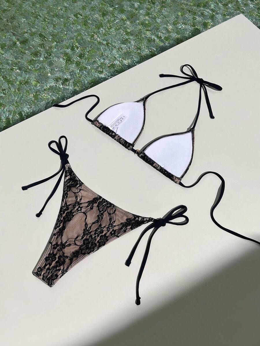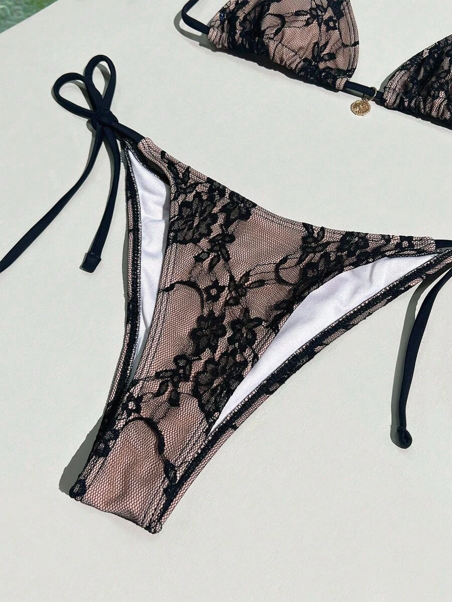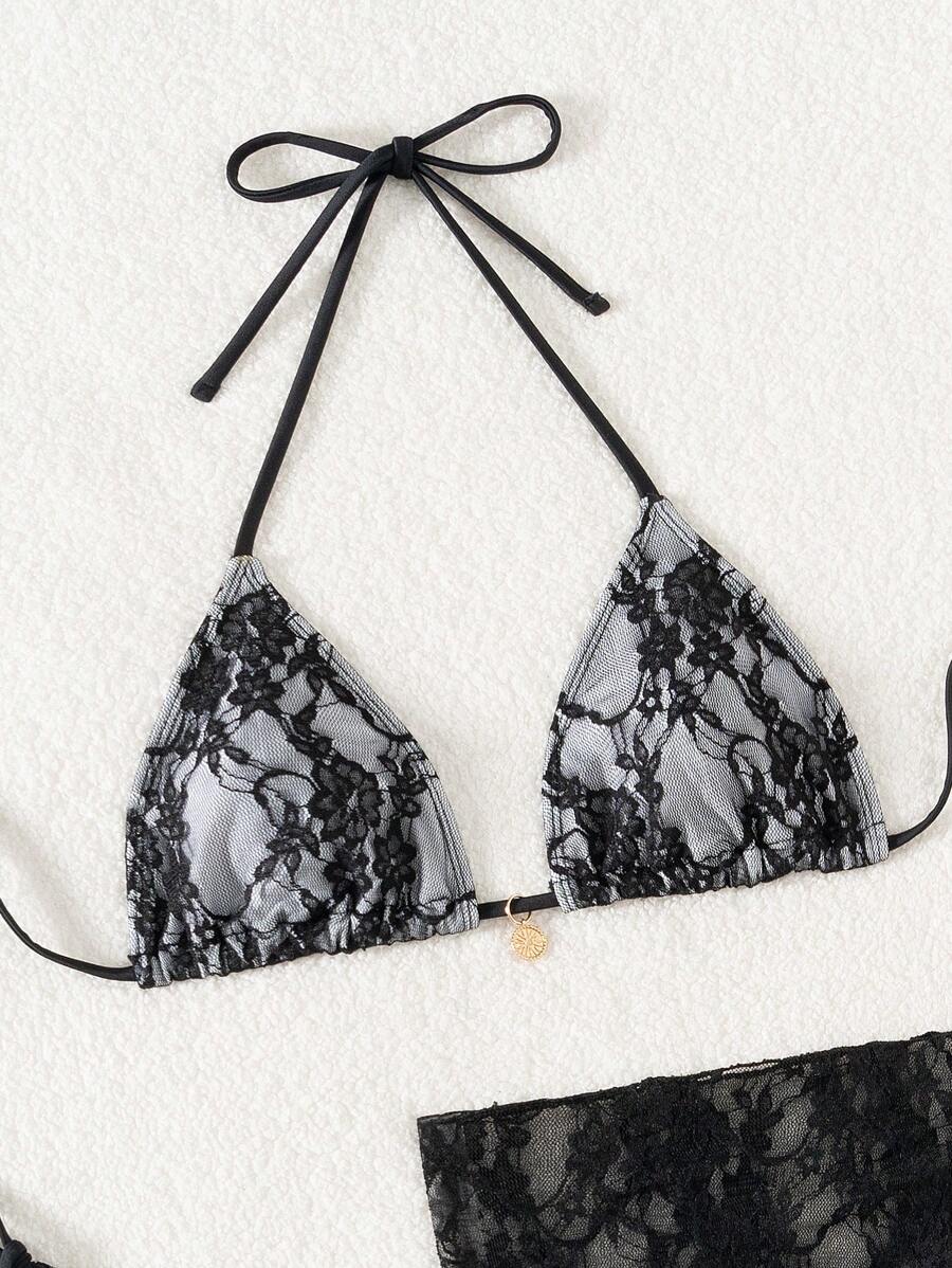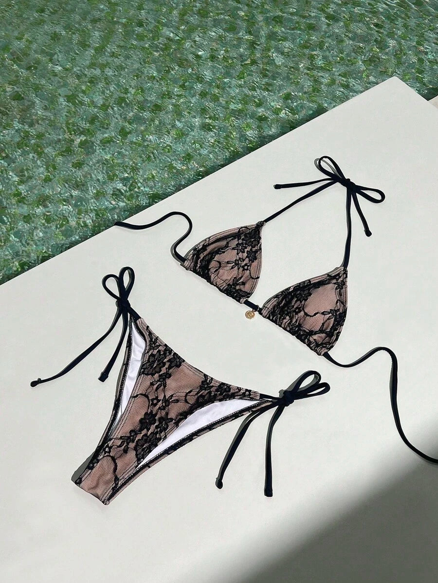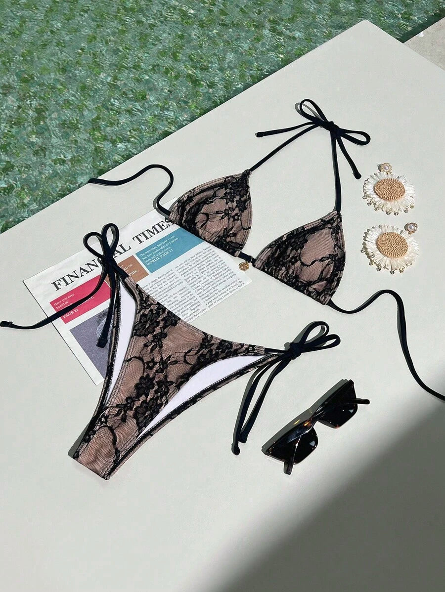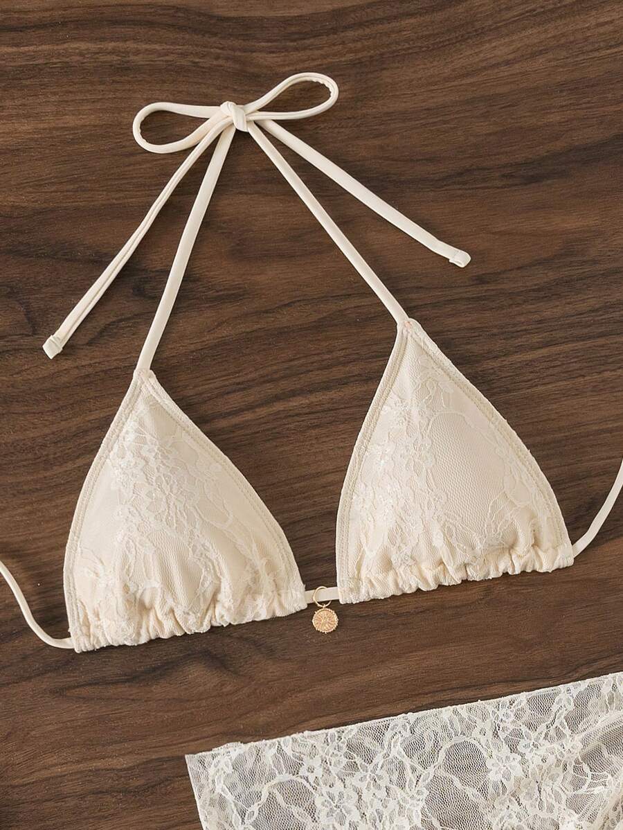 3 piezas conjunto de bikini de encaje de verano para mujer