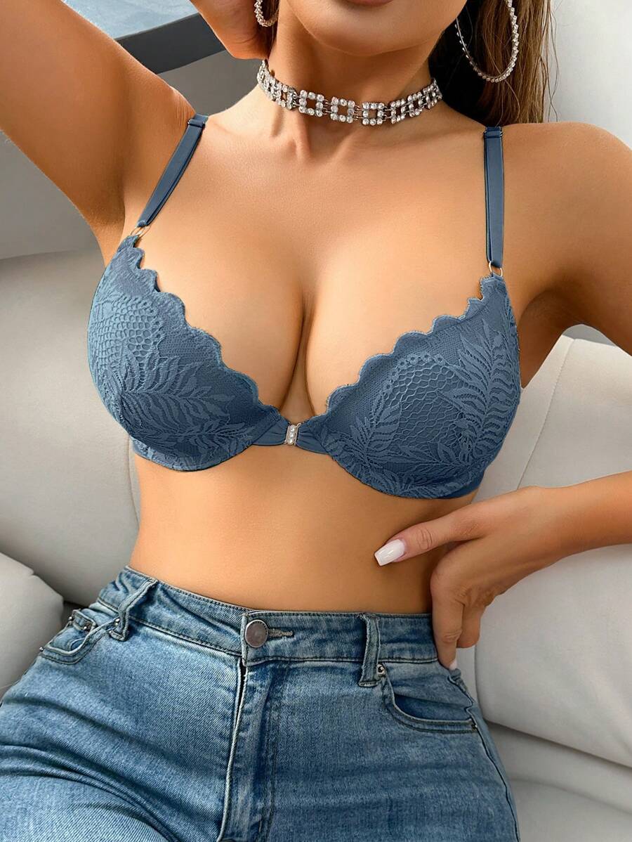 1 pieza brasier con aros y cierre delantero de encaje con decoracion de cristal, lenceria