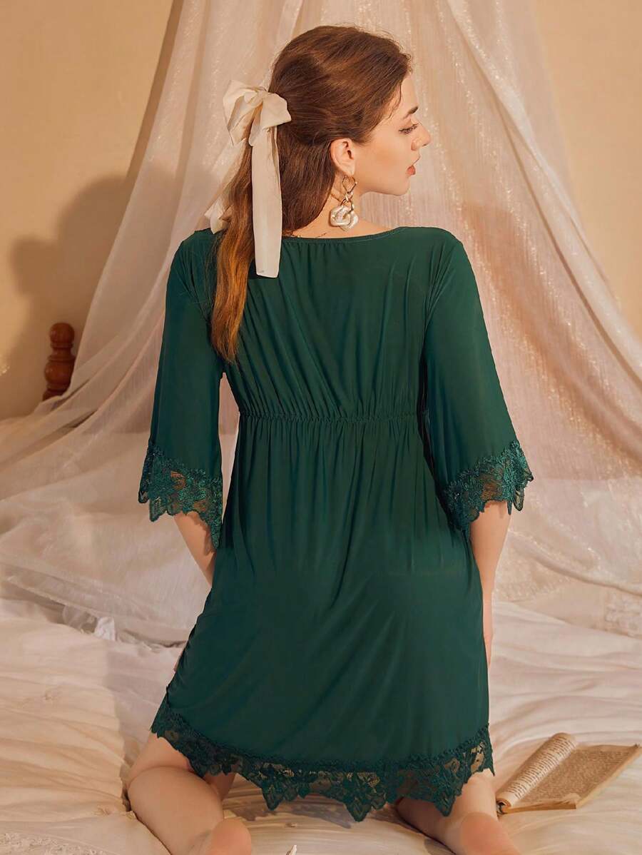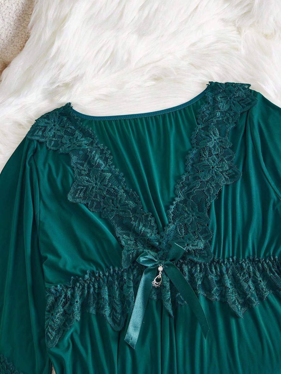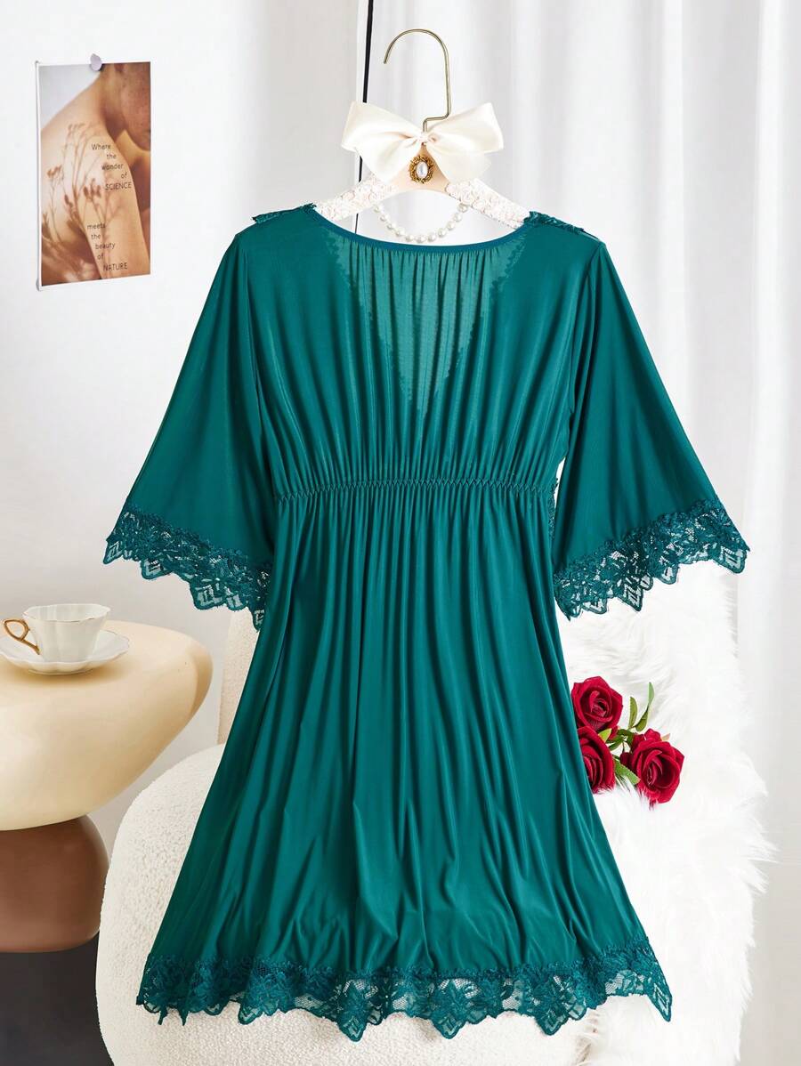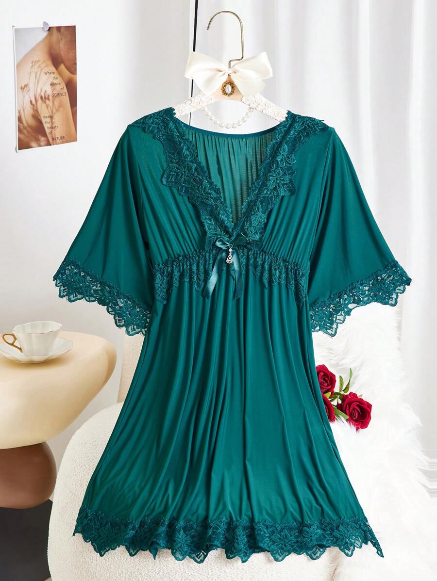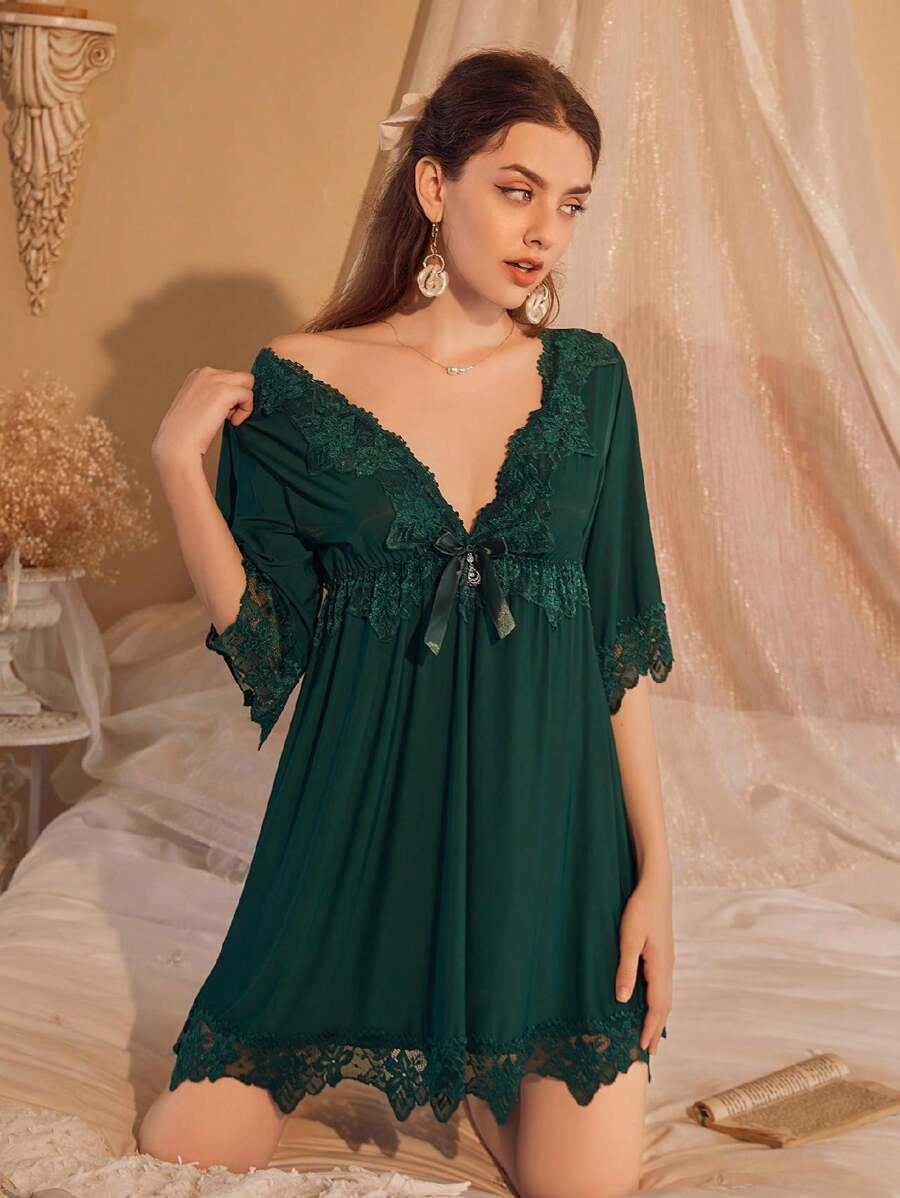 Camison de mujer de unicolor con lazo y encaje, camison delgado y sexy para todas las estaciones, vacaciones