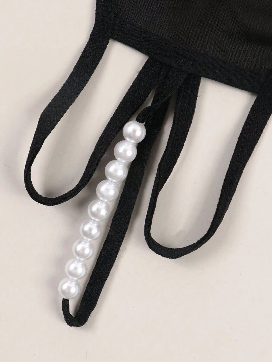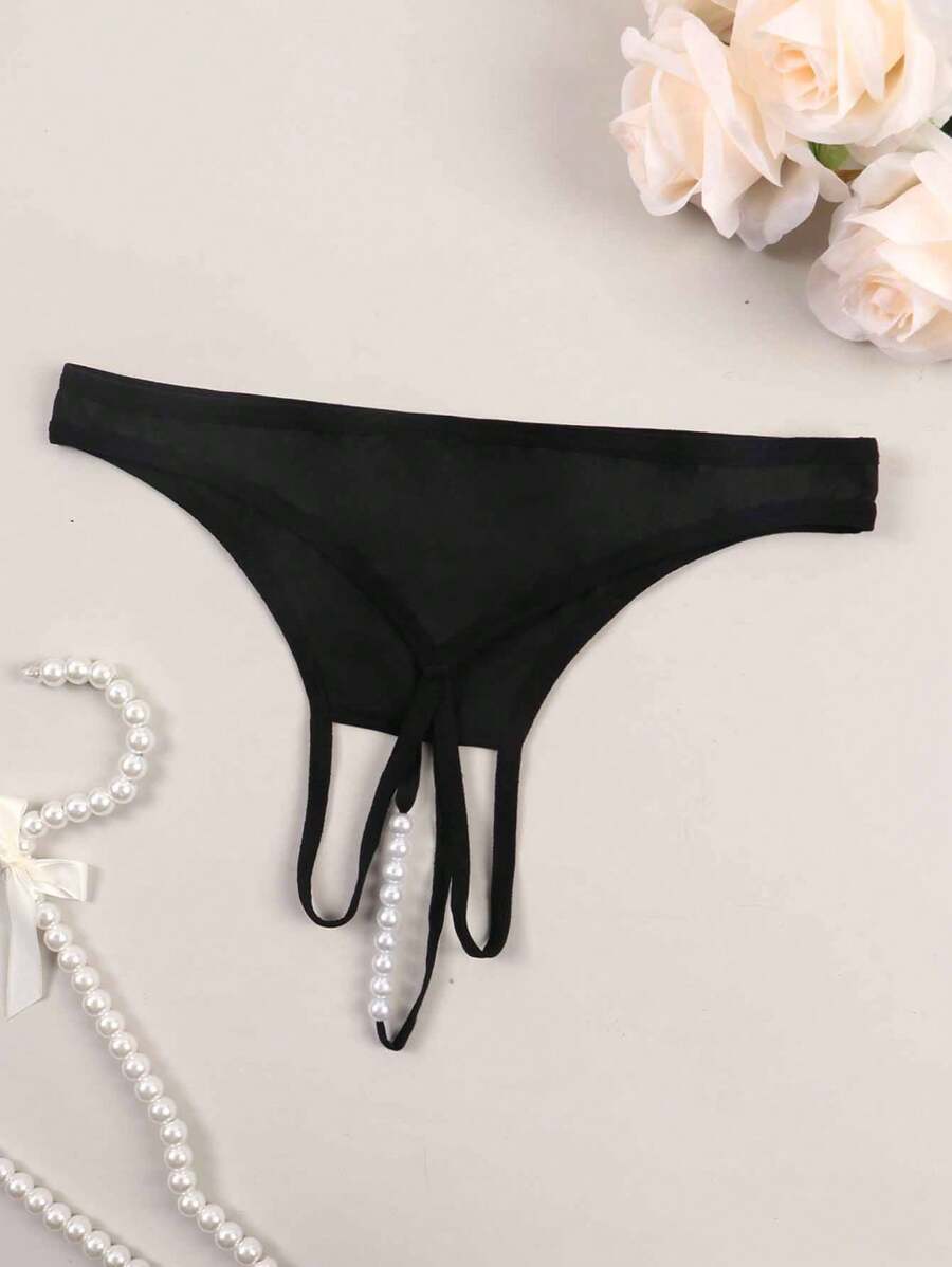 Bragas de mujer con estampado transparente, decoradas con perlas y sin entrepierna para salir