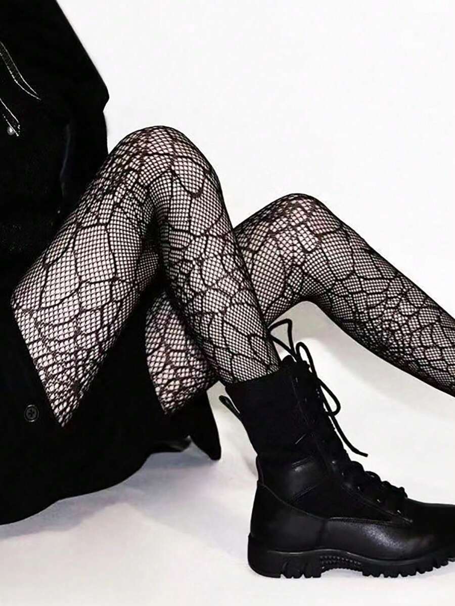 1 par medias de rejilla con telarana negra de halloween, medias finas de encaje hueco y malla para mujer, tipo gotico oscuro