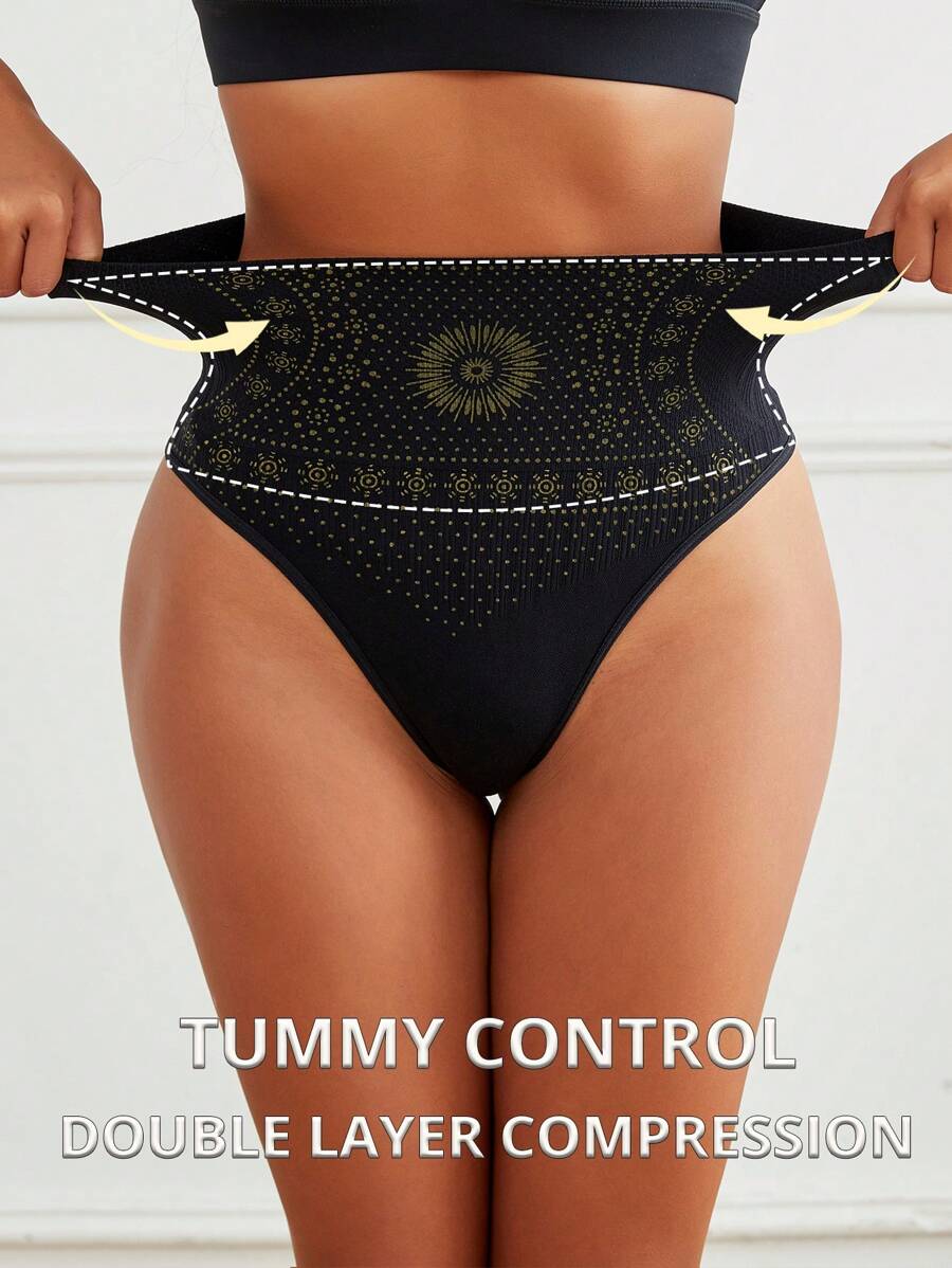 Flarixa bragas estampadas sin costuras de cintura alta tipo tanga para mujer, con control de abdomen, de doble capa con efecto moldeador