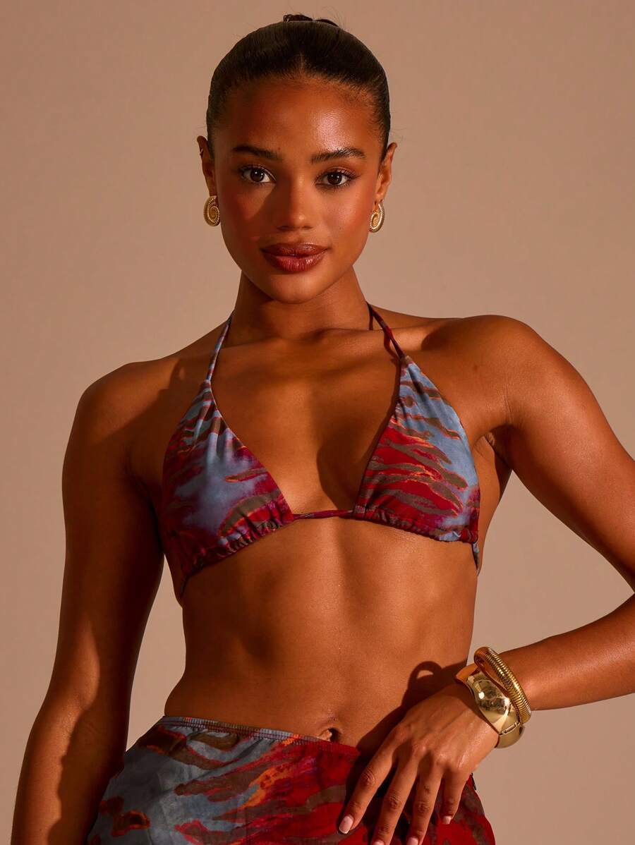 Resort bikini con estampado todo sobre y parte superior de bikini triangular para verano, vacaciones en la playa, ibiza, vacaciones, atuendo de club