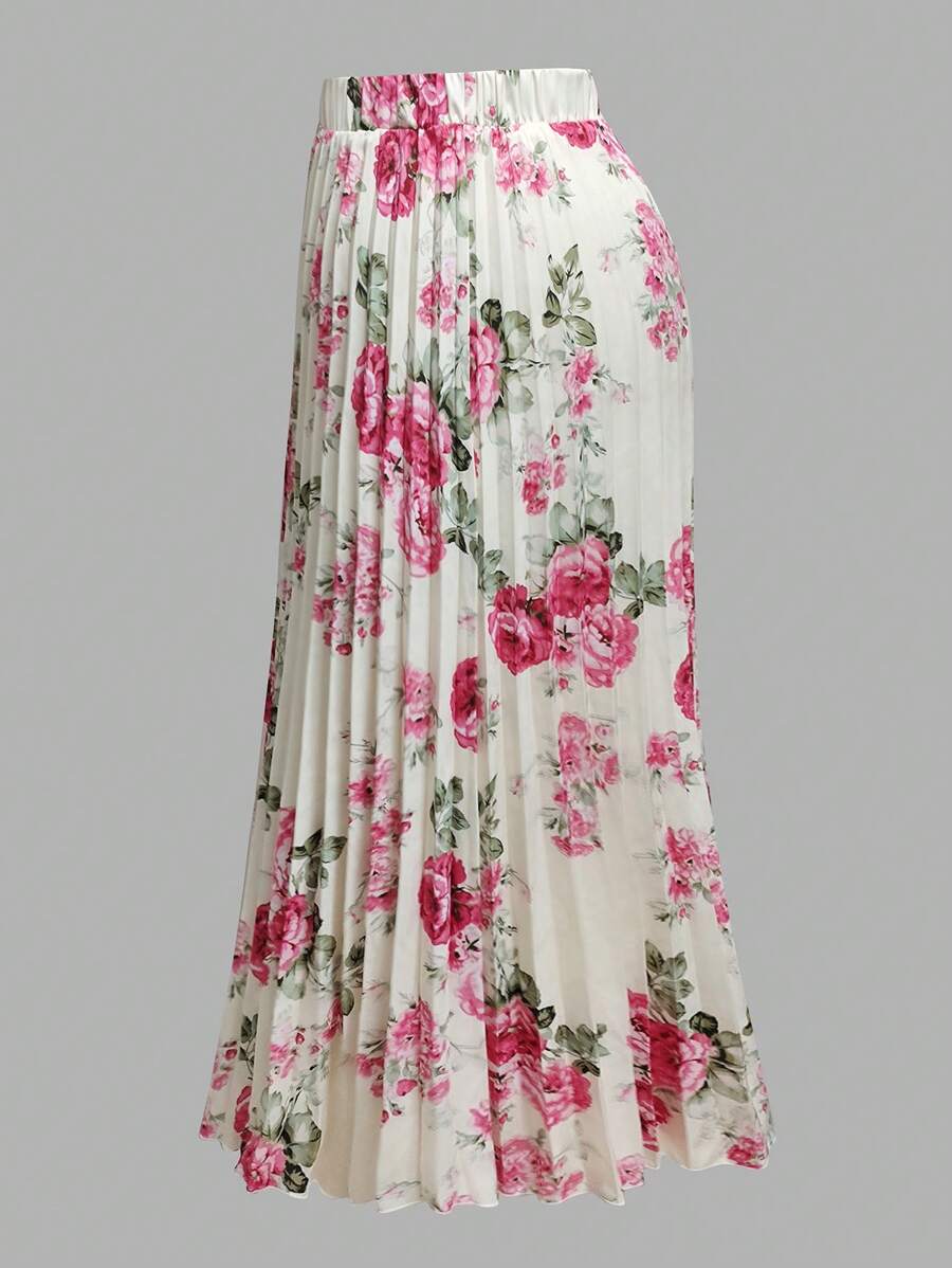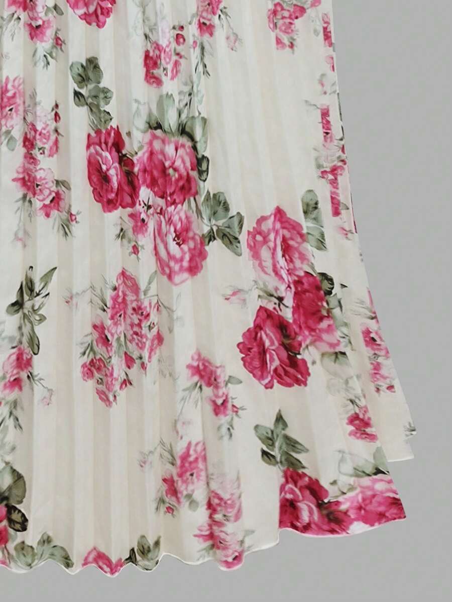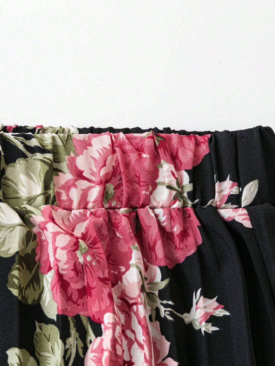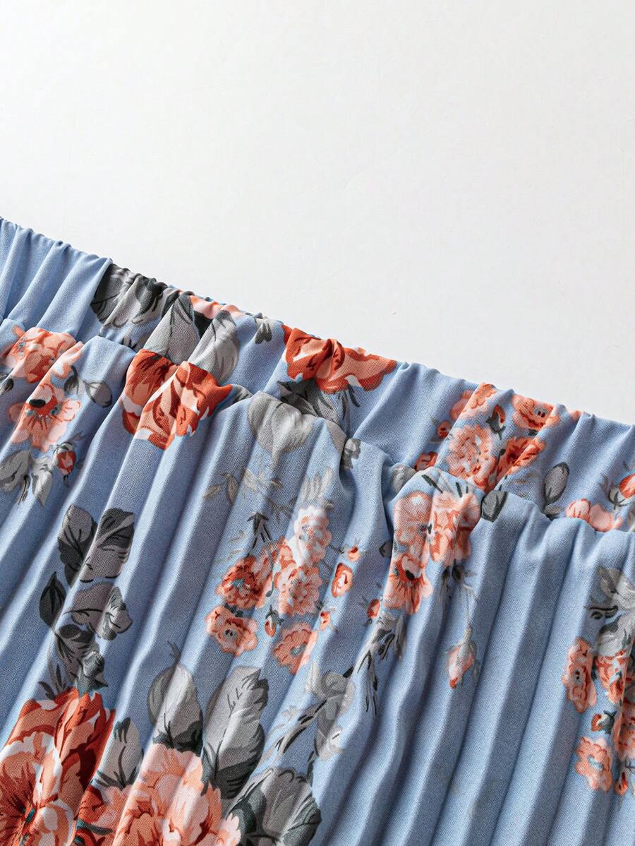 Vestido de mujer de talla grande con estampado integral fruncido y falda larga acampanada elegante