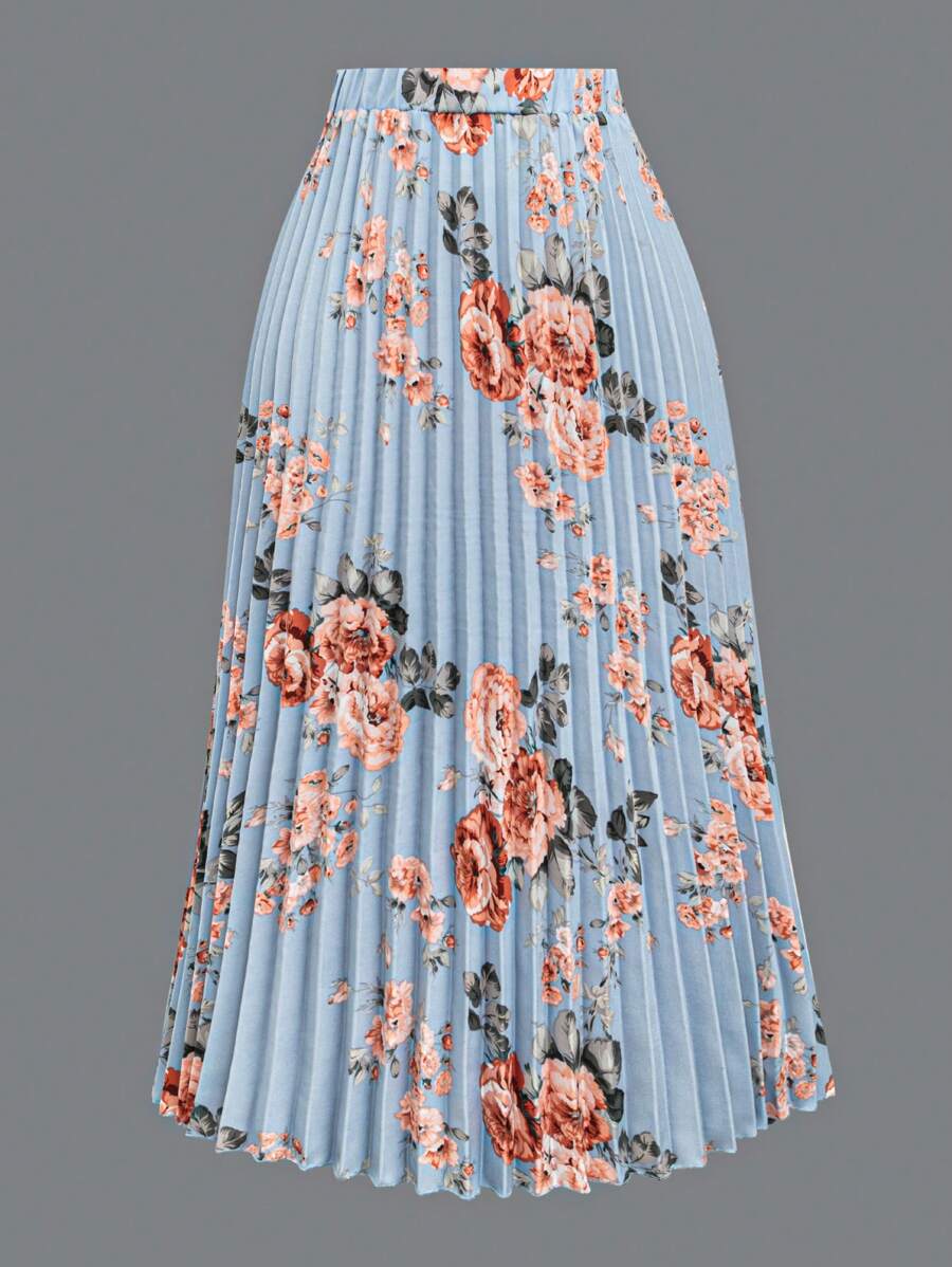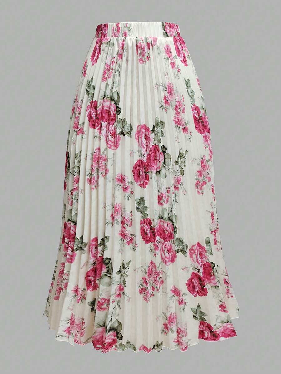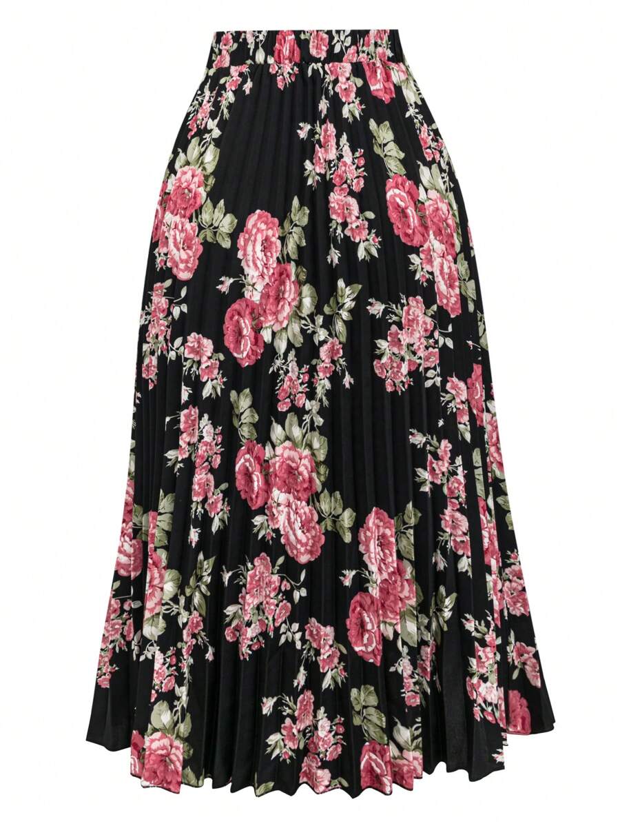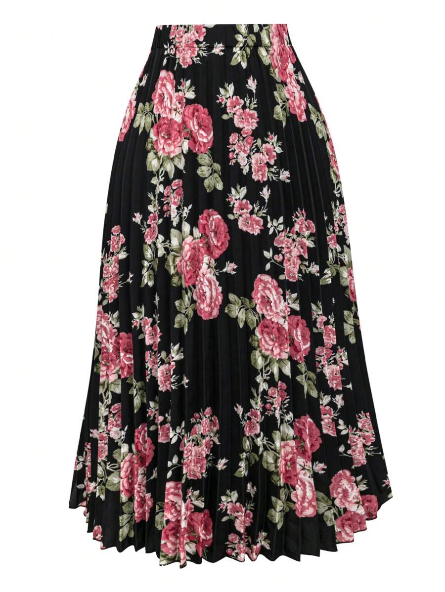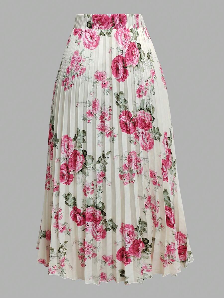 Vestido de mujer de talla grande con estampado integral fruncido y falda larga acampanada elegante