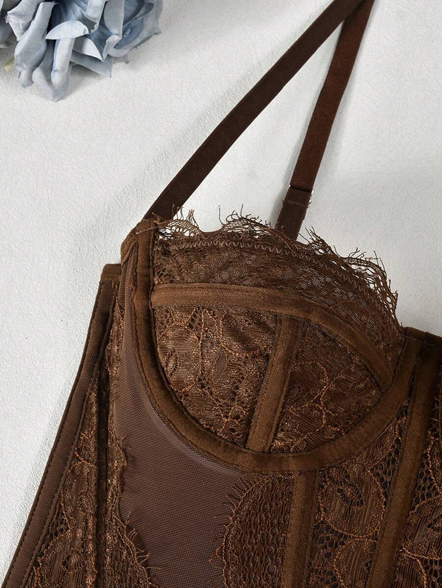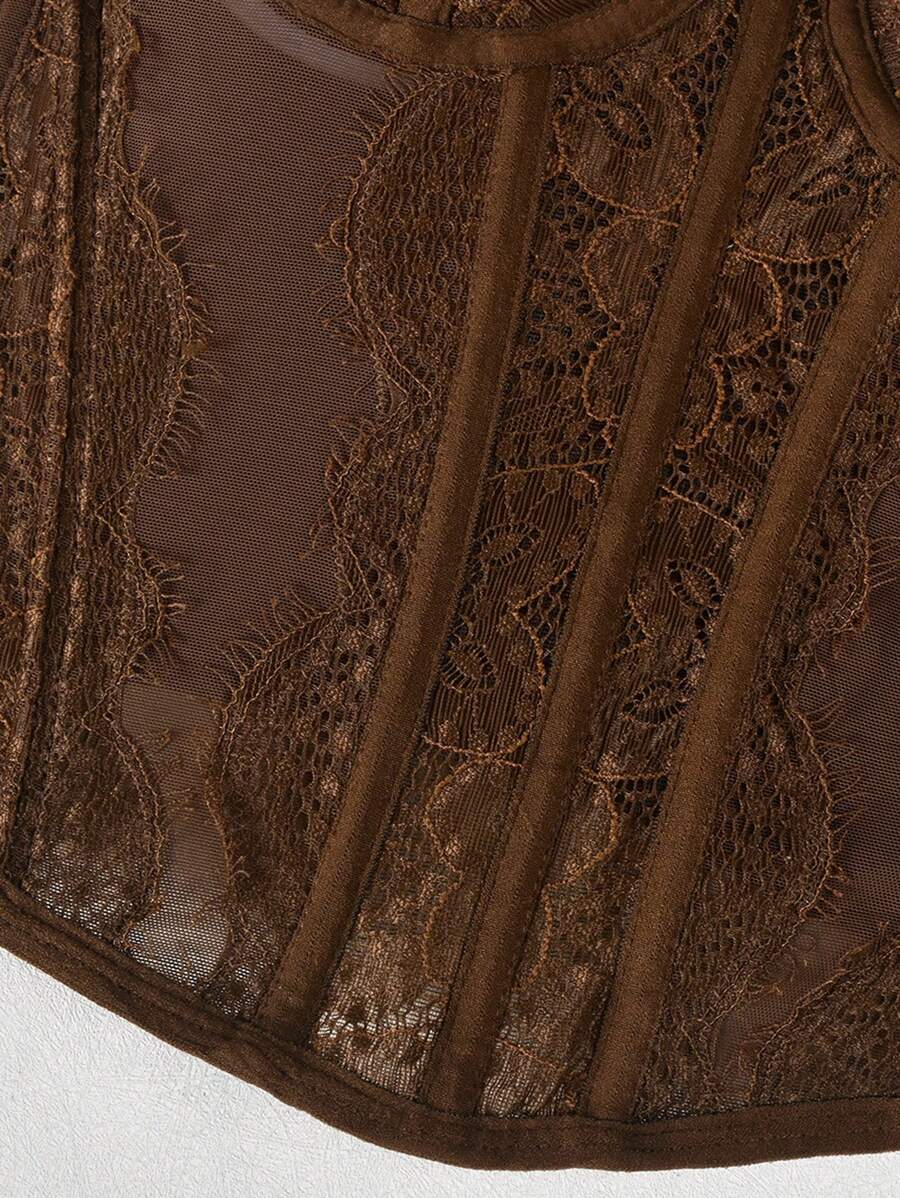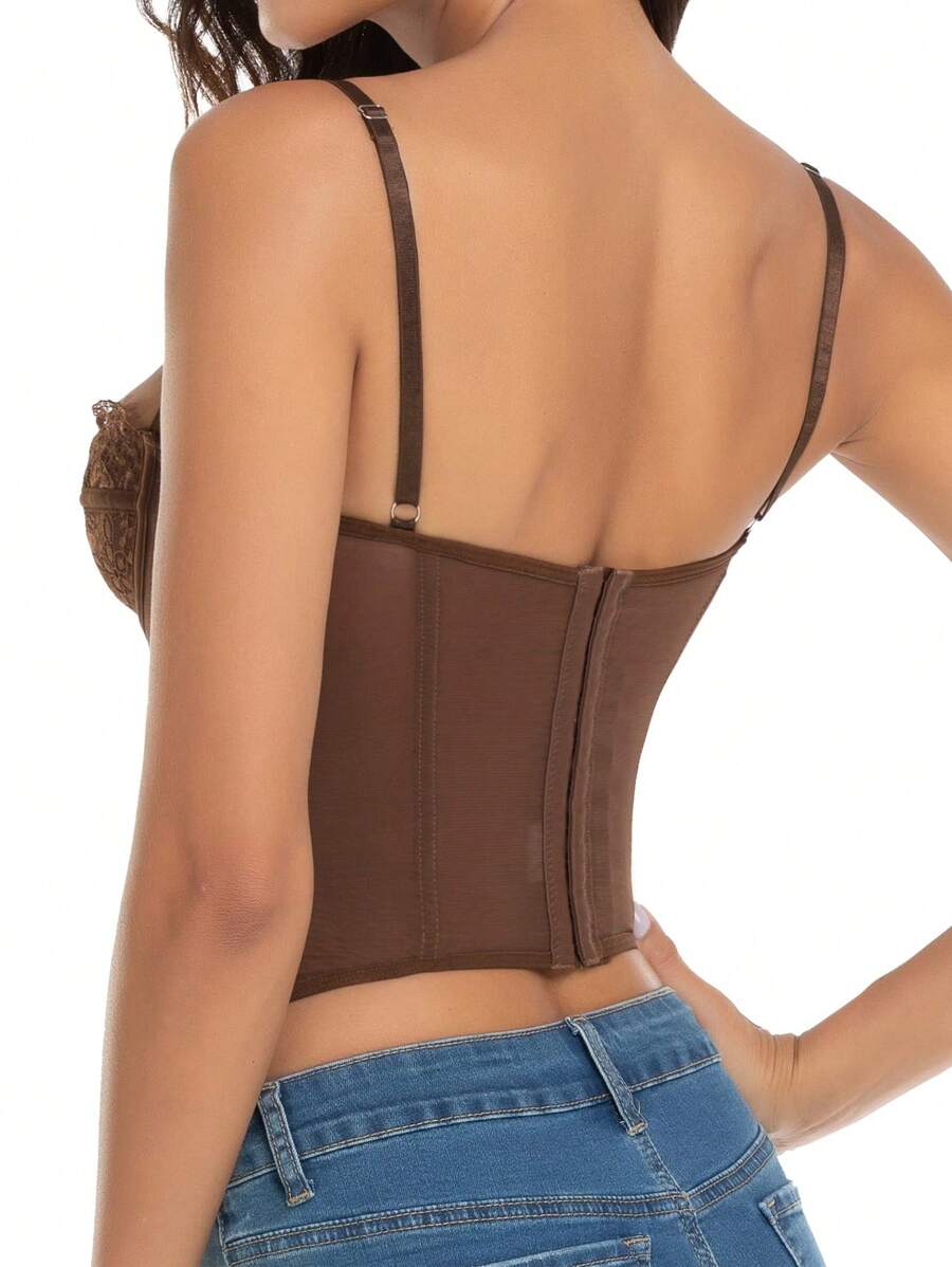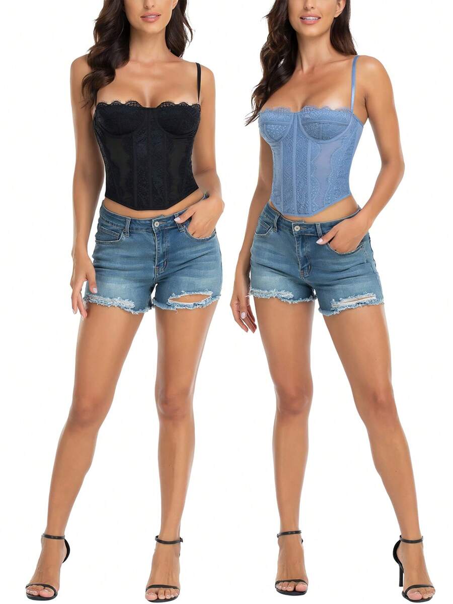 1 pieza parte superior de corse linda para mujeres para salir, parte superior de encaje y malla para cita nocturna con tirantes de espagueti para fiesta y club