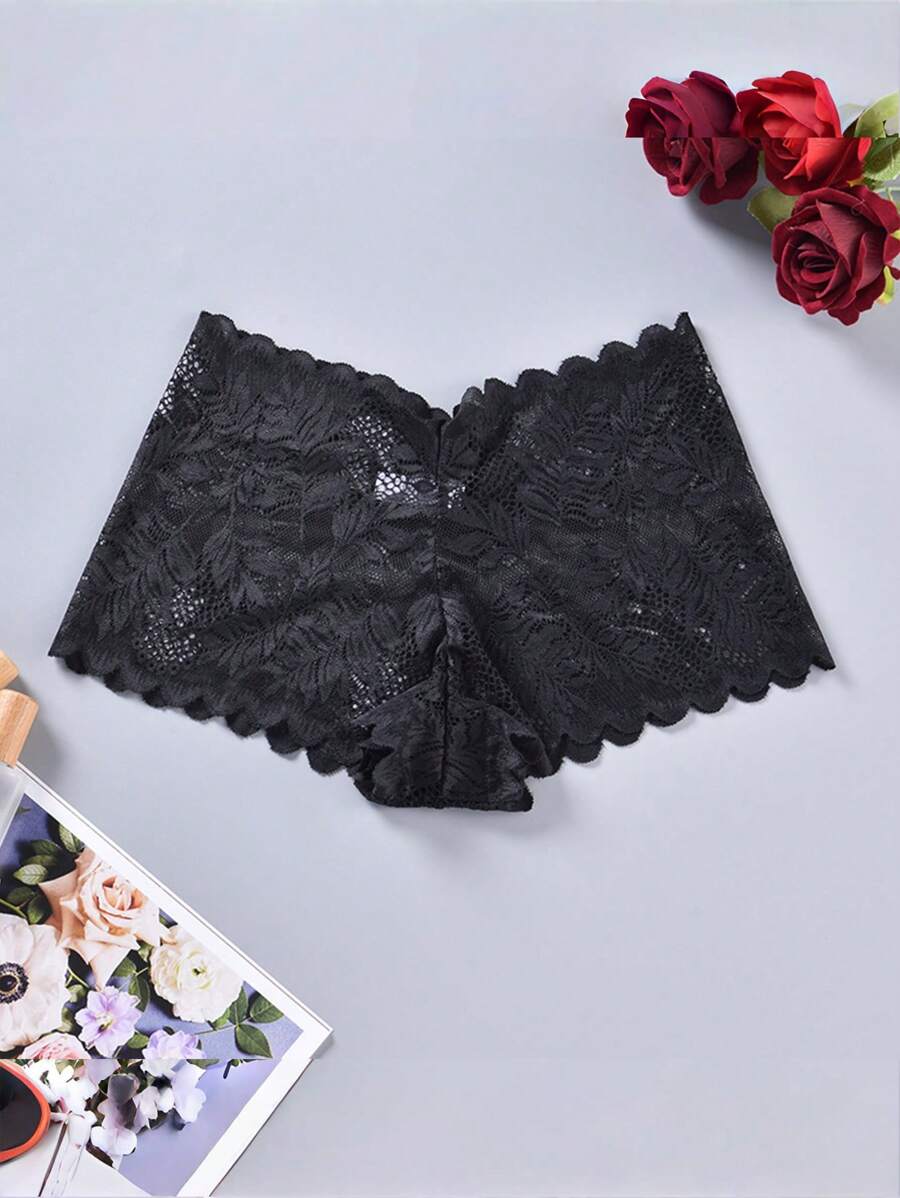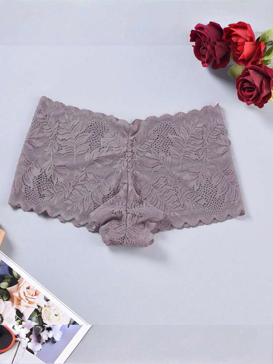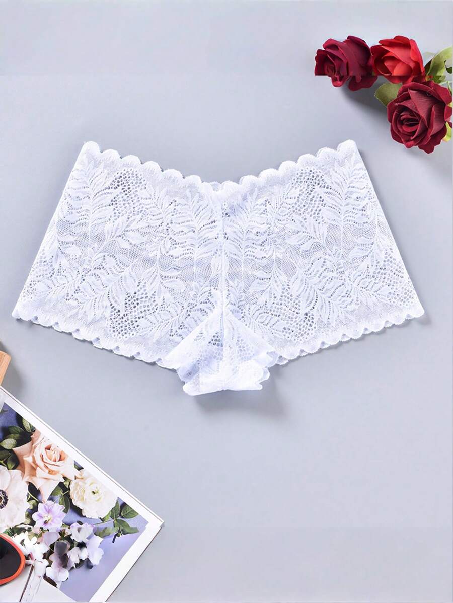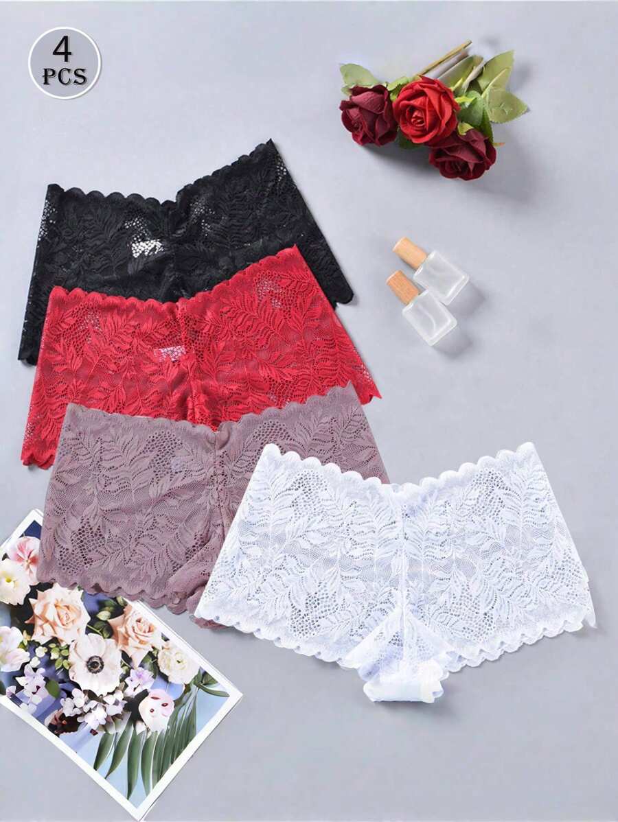 4 piezas bragas sexys de mujer tipo 'boyshort' de encaje con diseno floral calado, de cintura baja, transparentes e invisibles, lenceria para navidad
