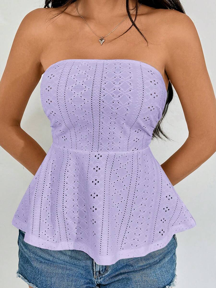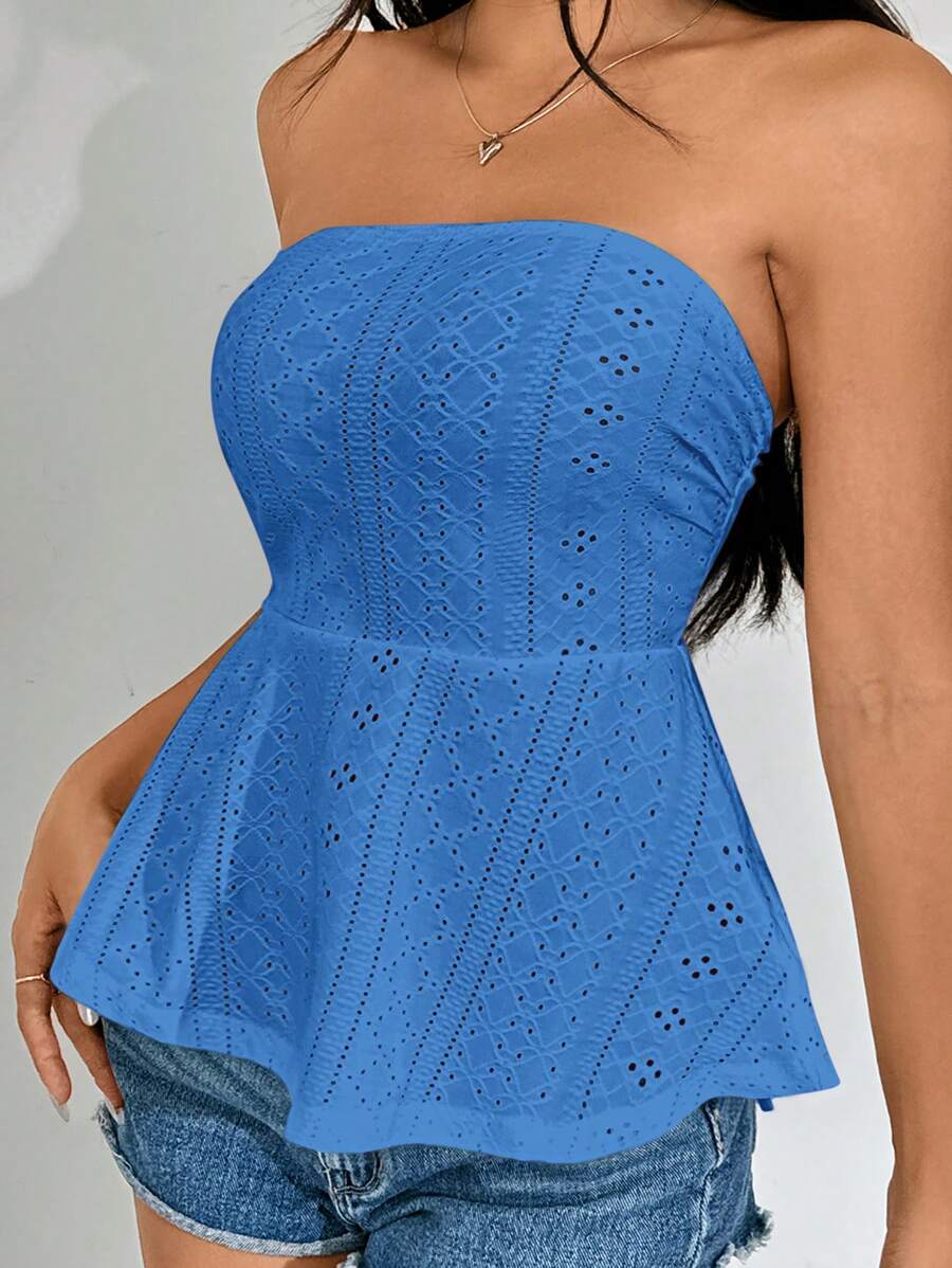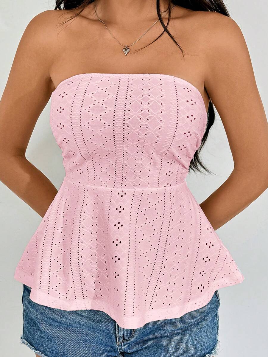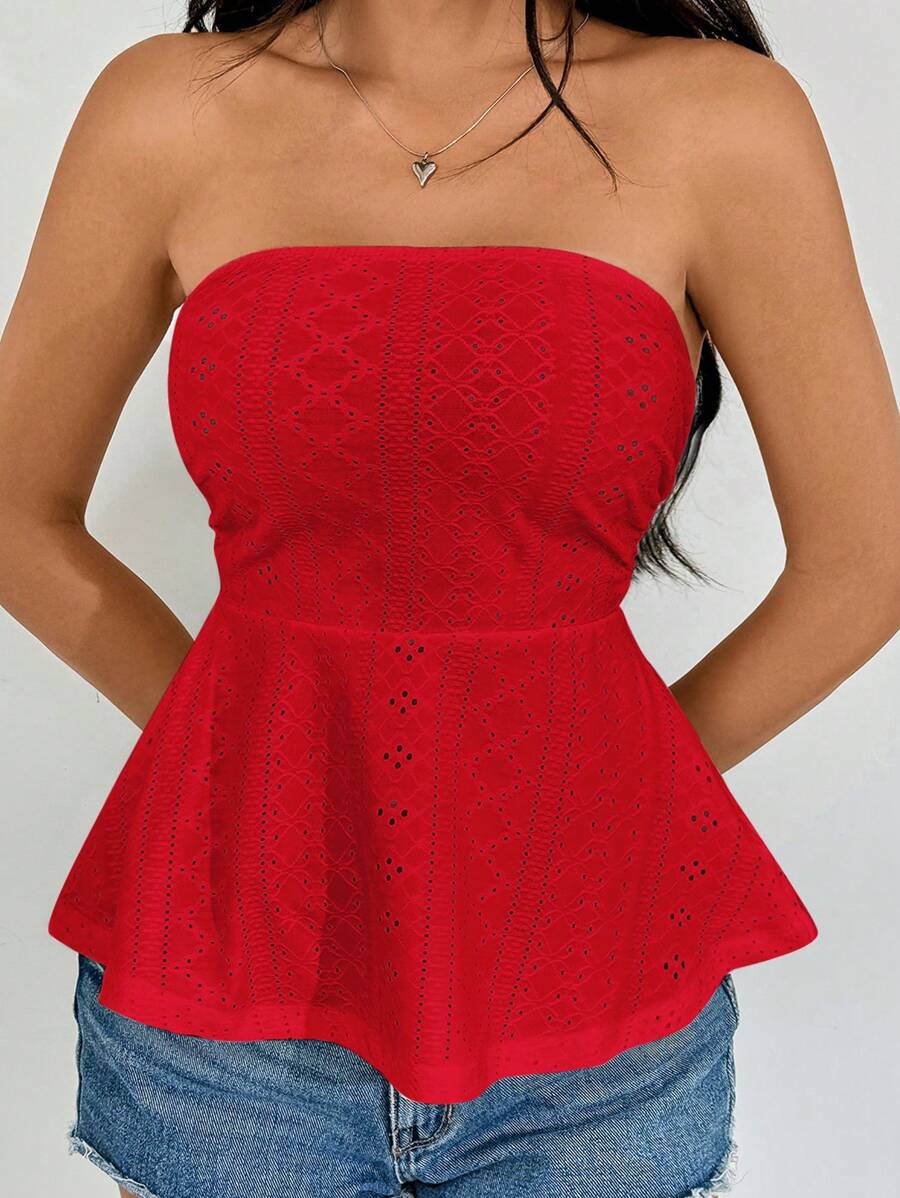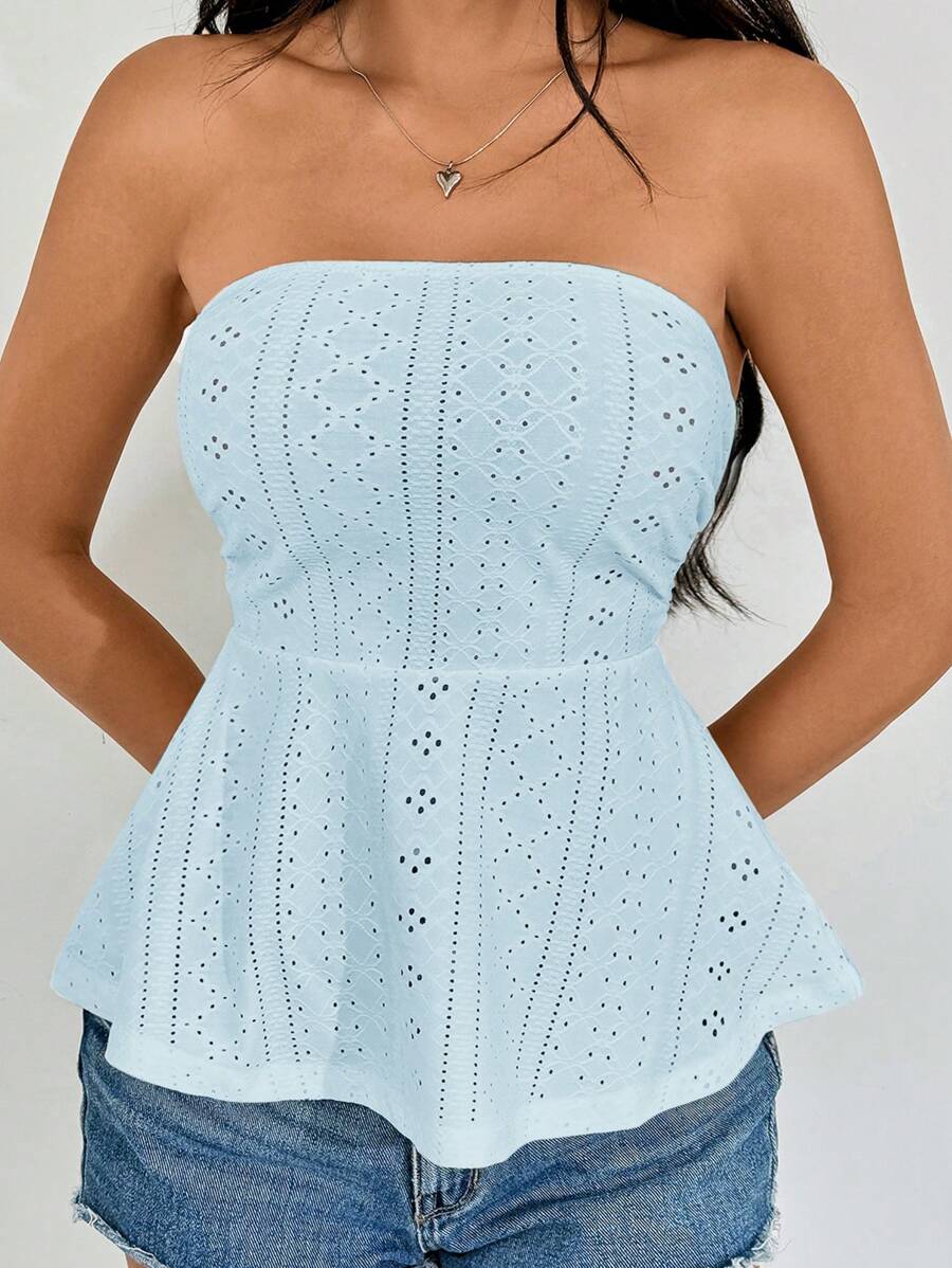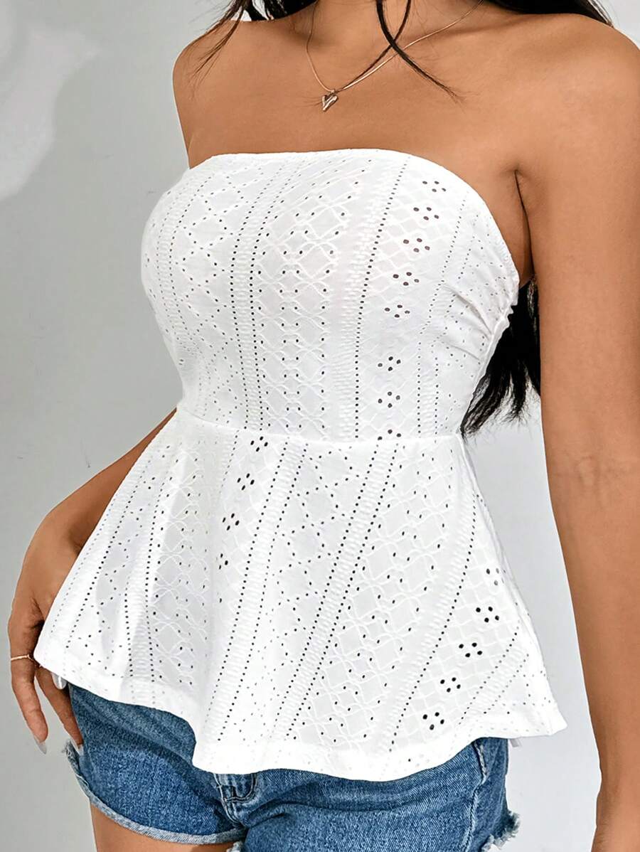 Top tubo con volante en el bajo, unicolor con bordado de ojales
