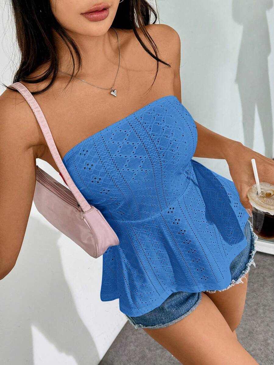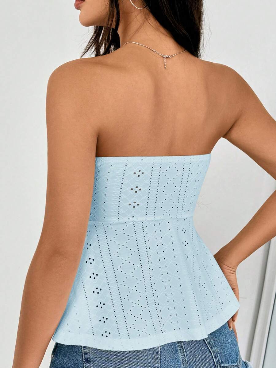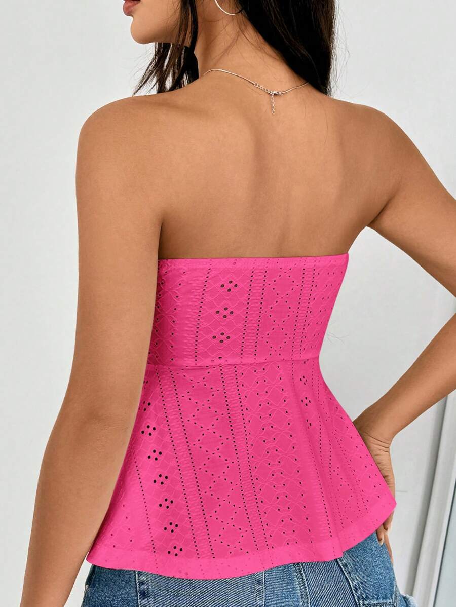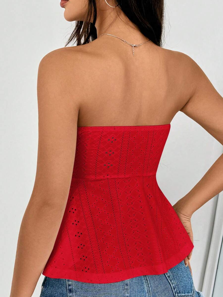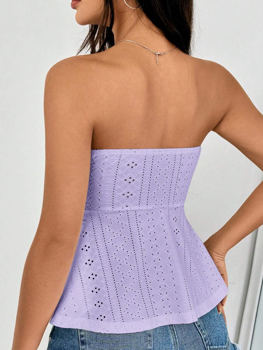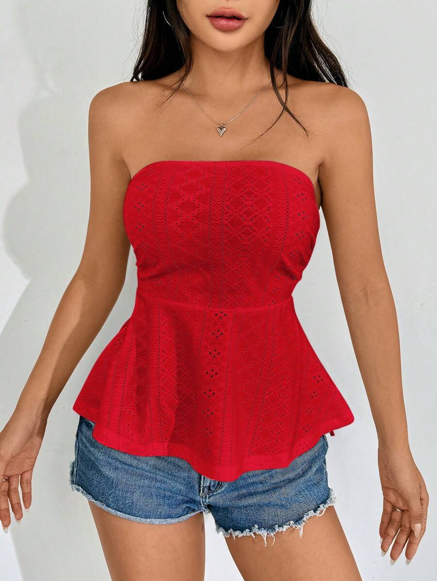Top tubo con volante en el bajo, unicolor con bordado de ojales