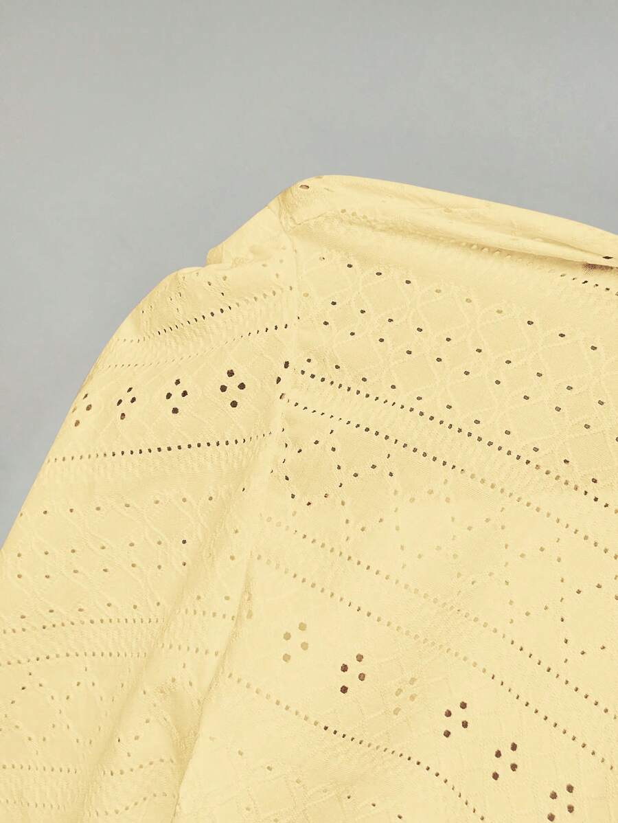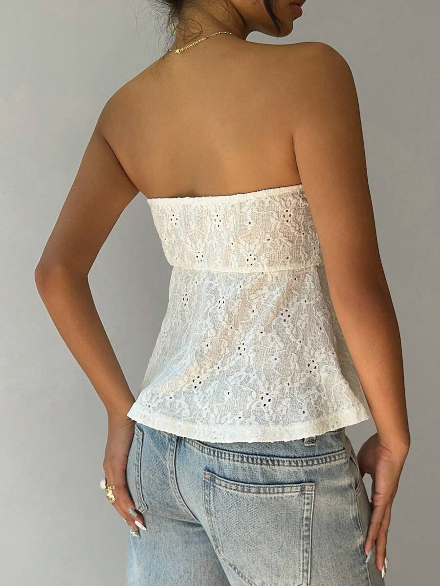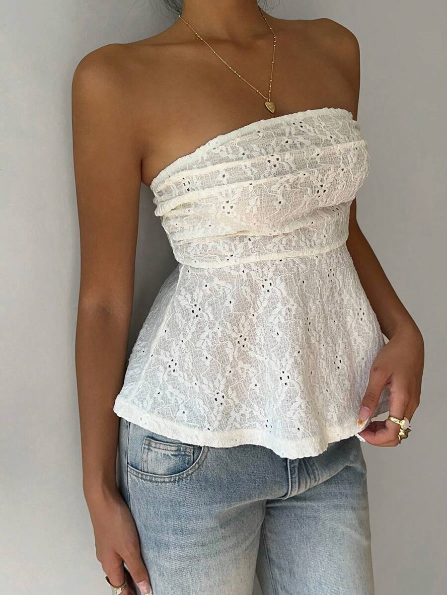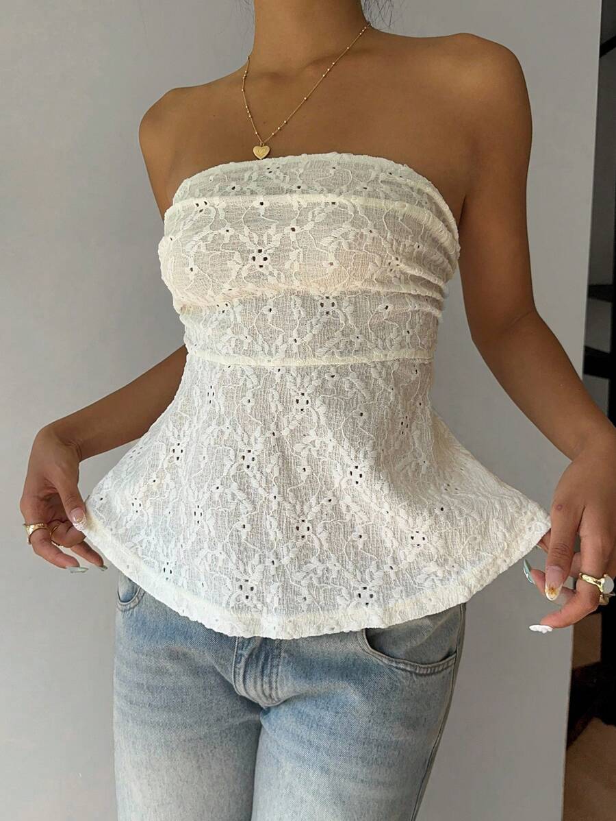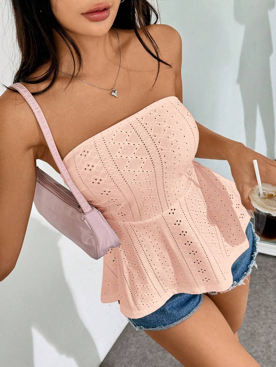Top tubo con volante en el bajo, unicolor con bordado de ojales