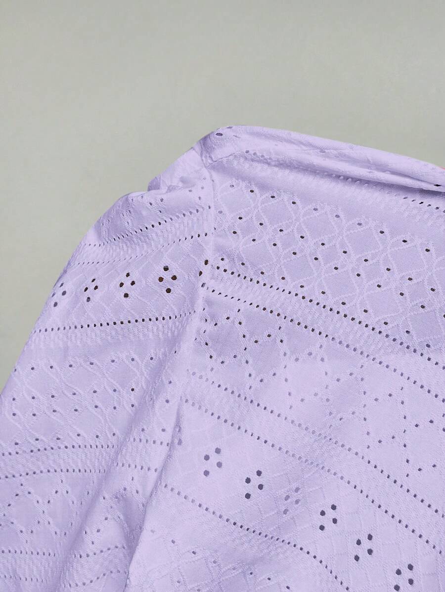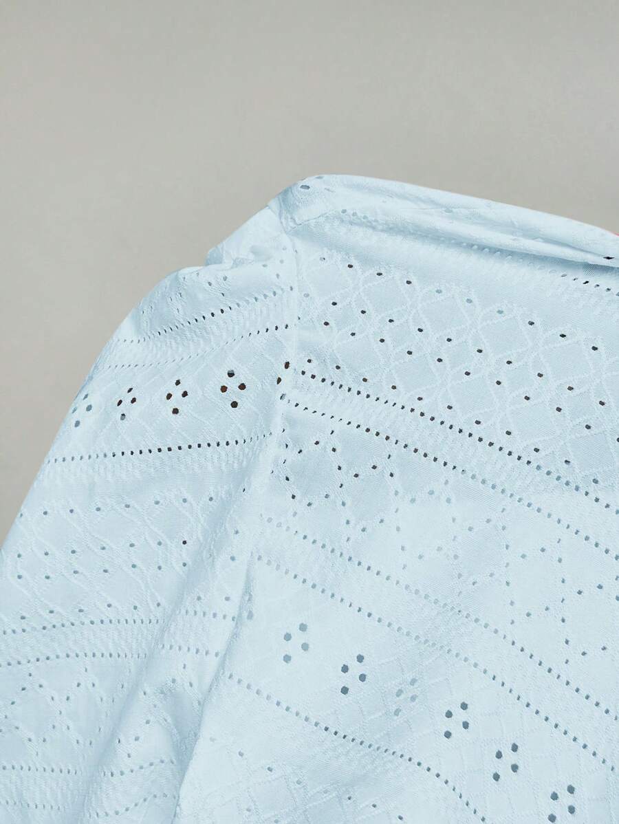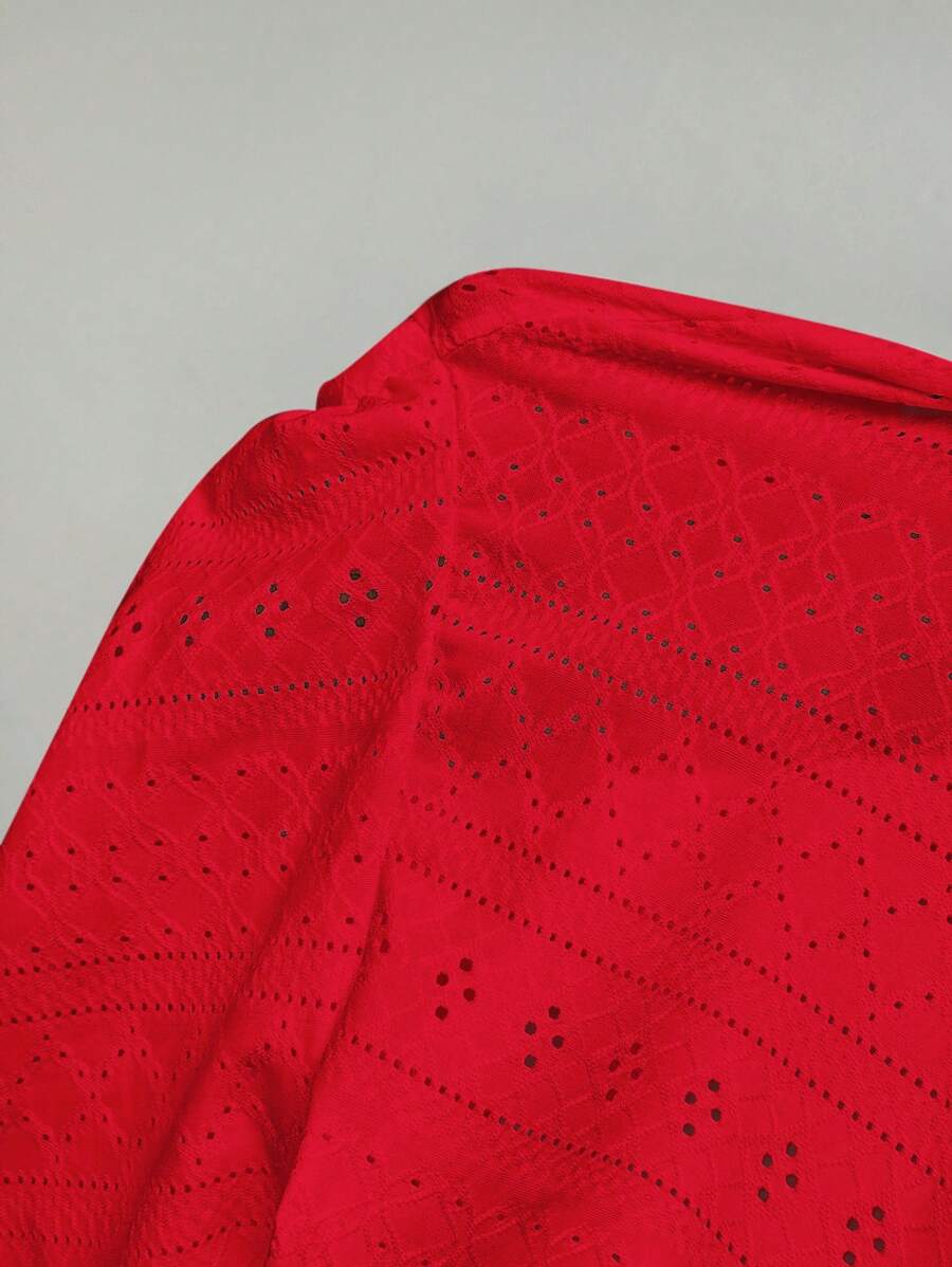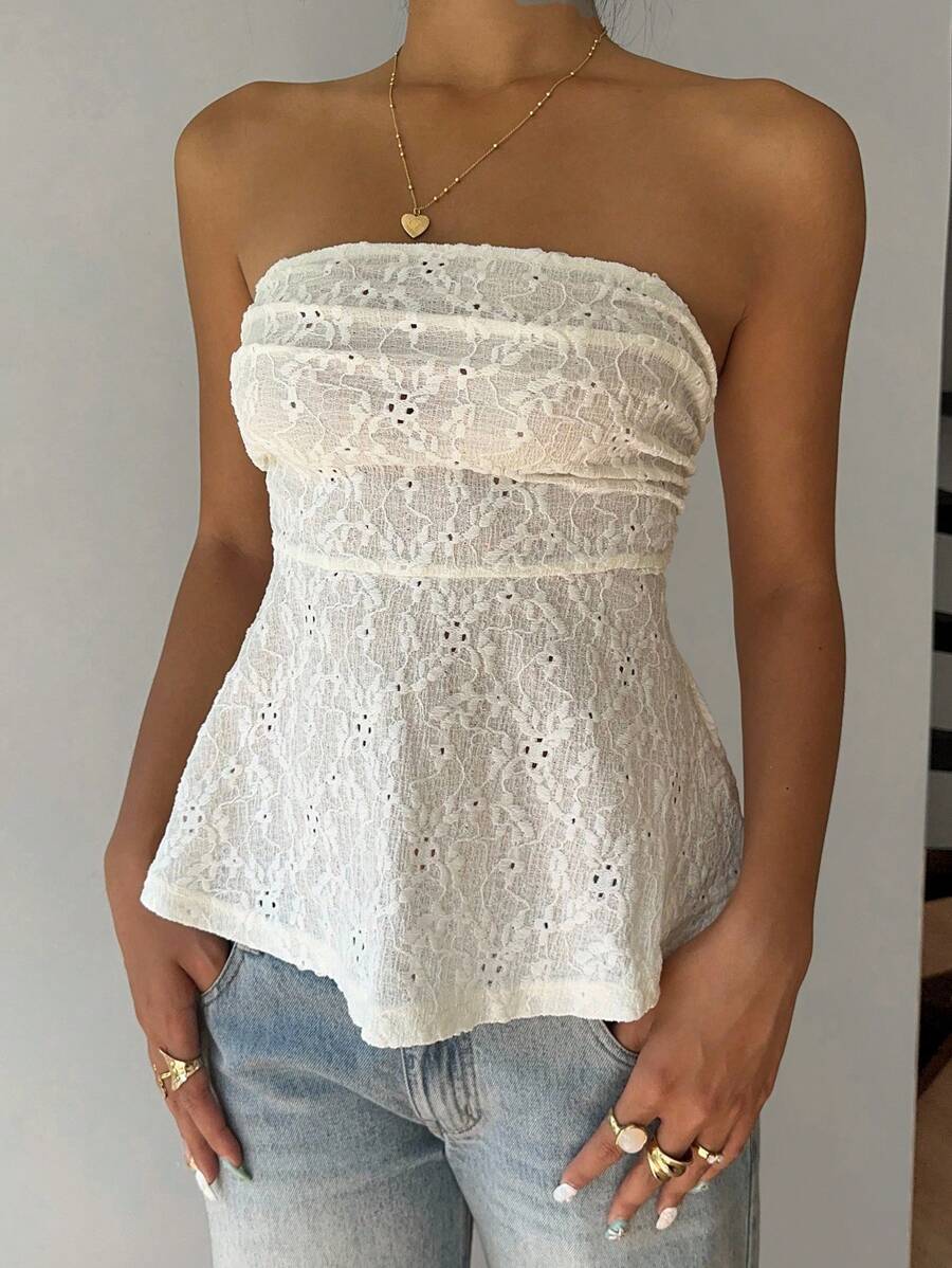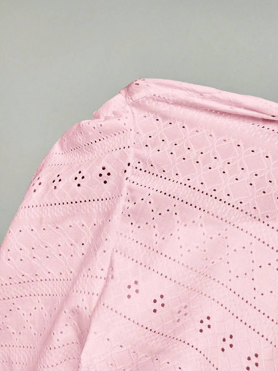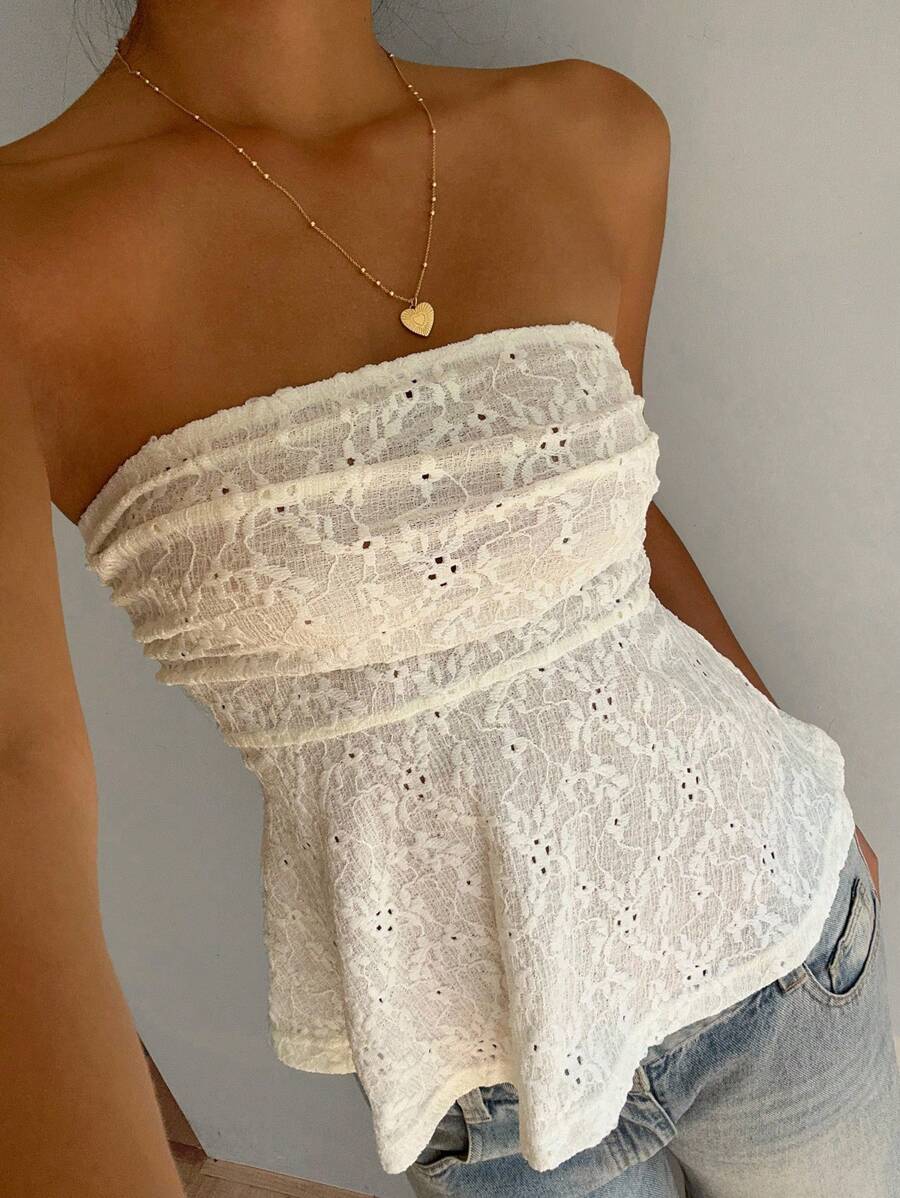 Top tubo con volante en el bajo, unicolor con bordado de ojales