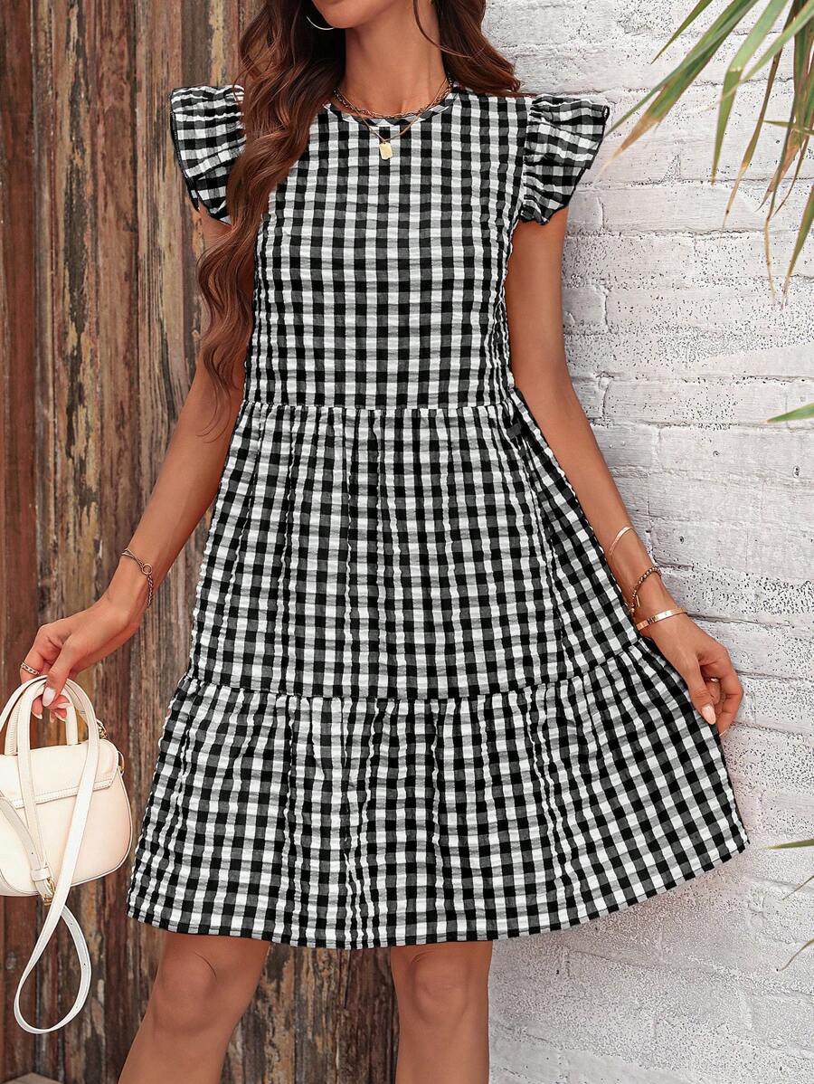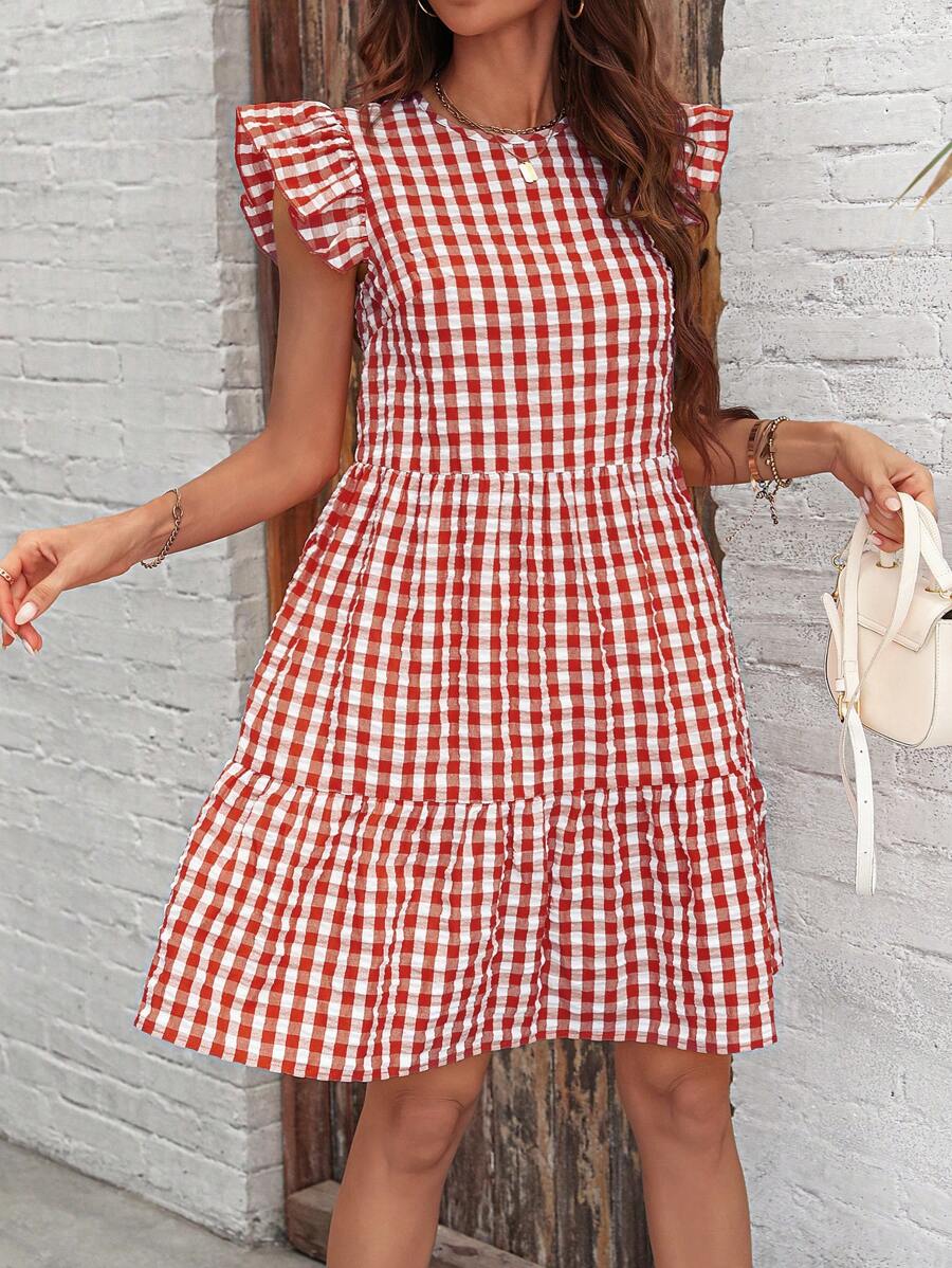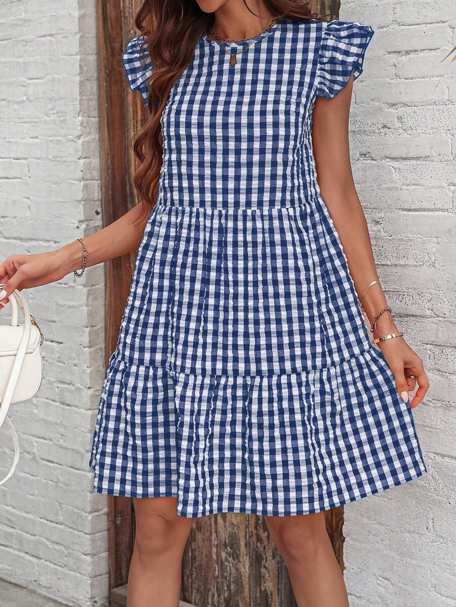 Vestido casual de manga de casquete con estampado para mujer para vacaciones