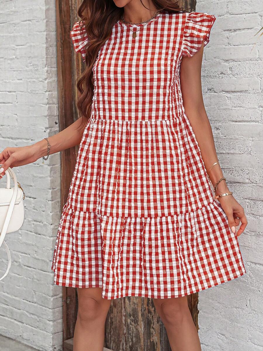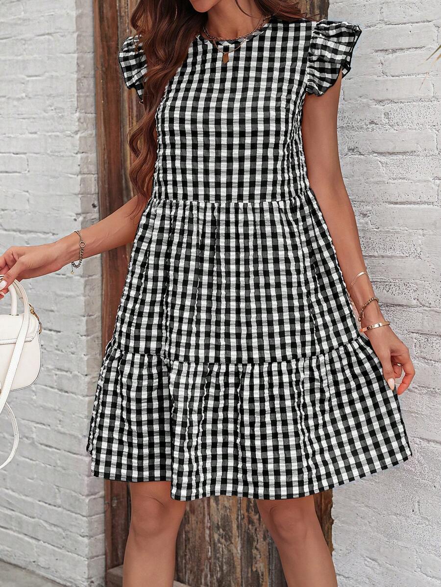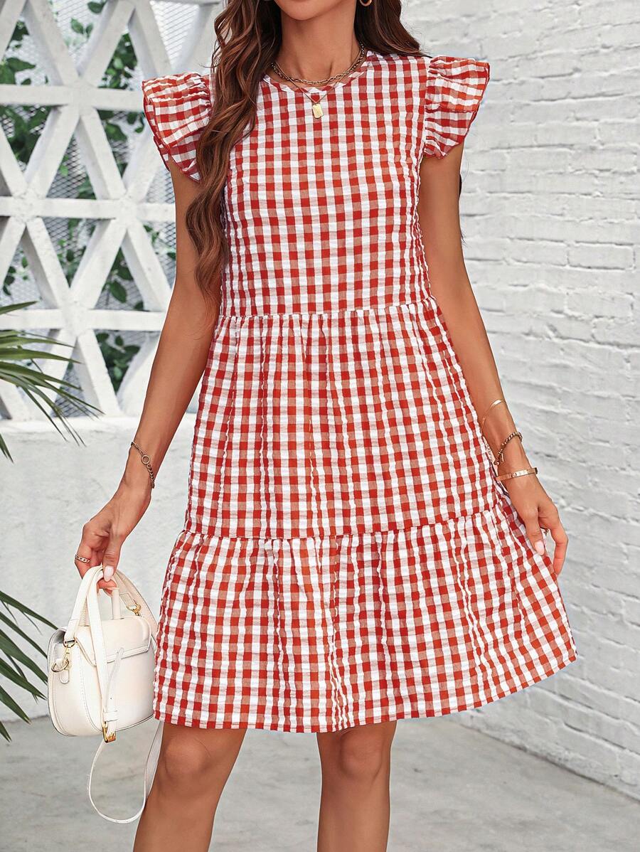 Vestido casual de manga de casquete con estampado para mujer para vacaciones
