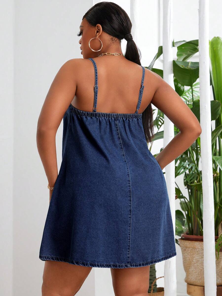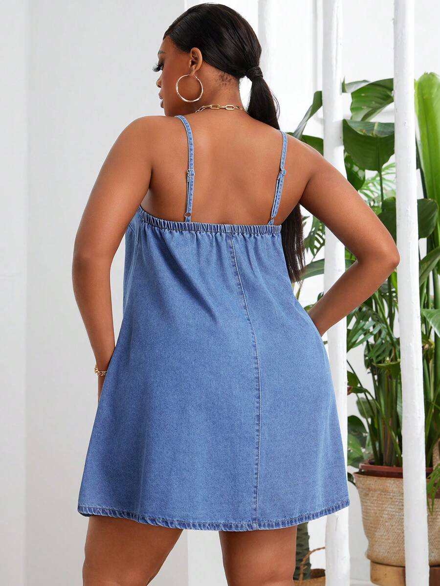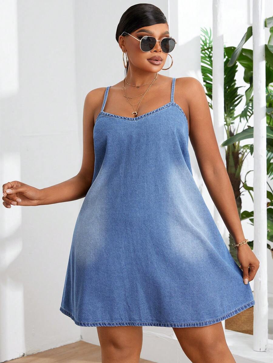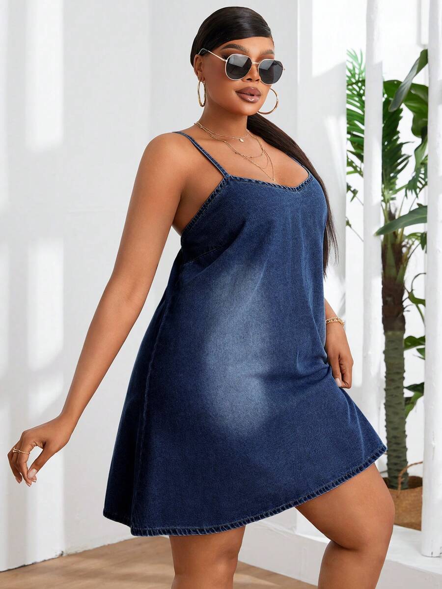 Vestido de tirantes de mezclilla informal para mujer de talla grande de verano