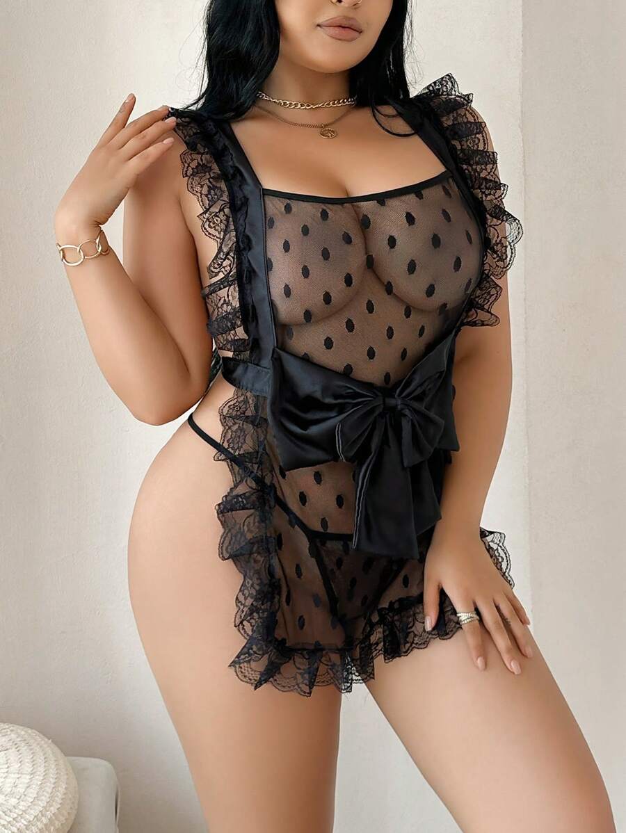 Conjunto de 2 piezas de vestido de sirvienta de talla grande con encaje floral, color negro, para halloween