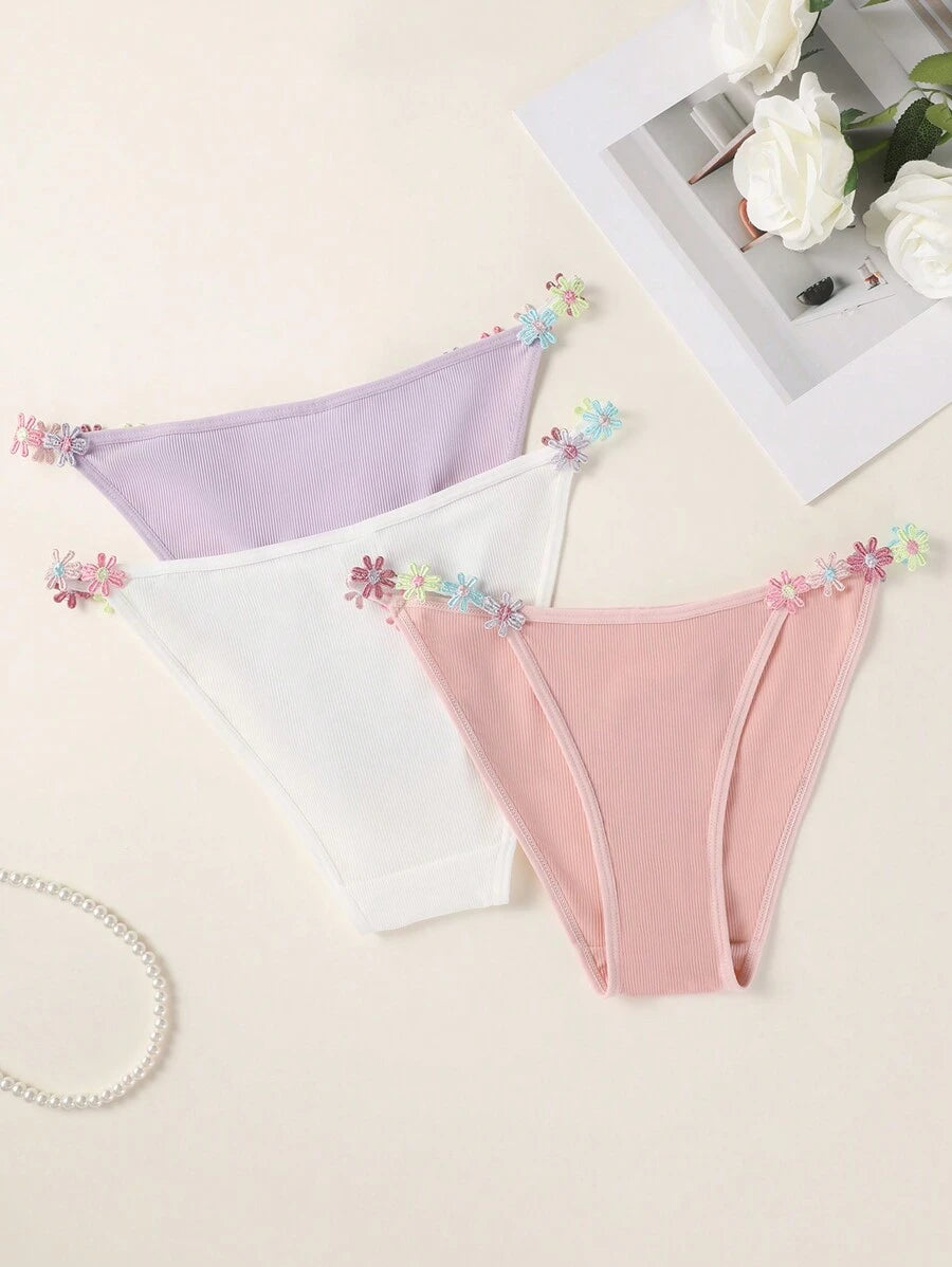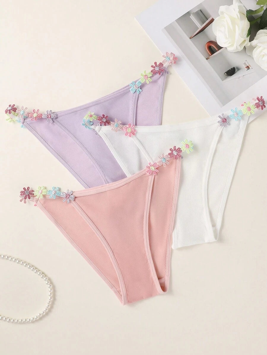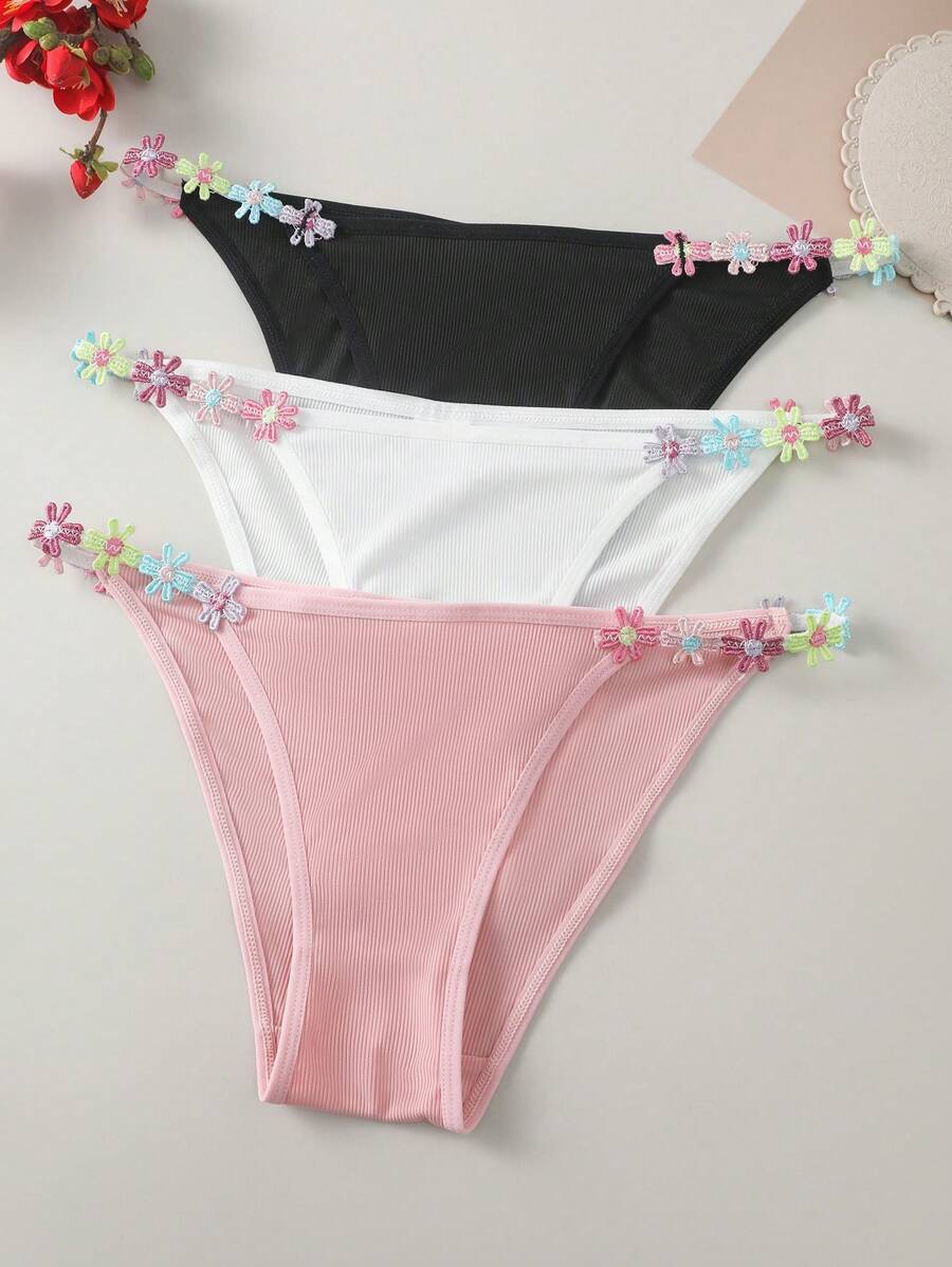 3 piezas/paquete bragas de moda con decoracion floral para mujer