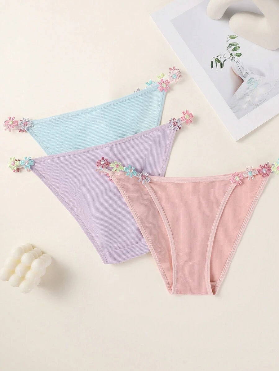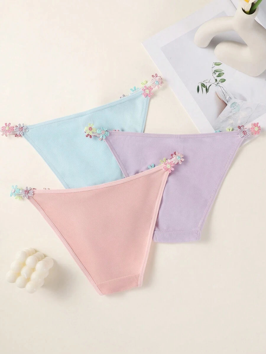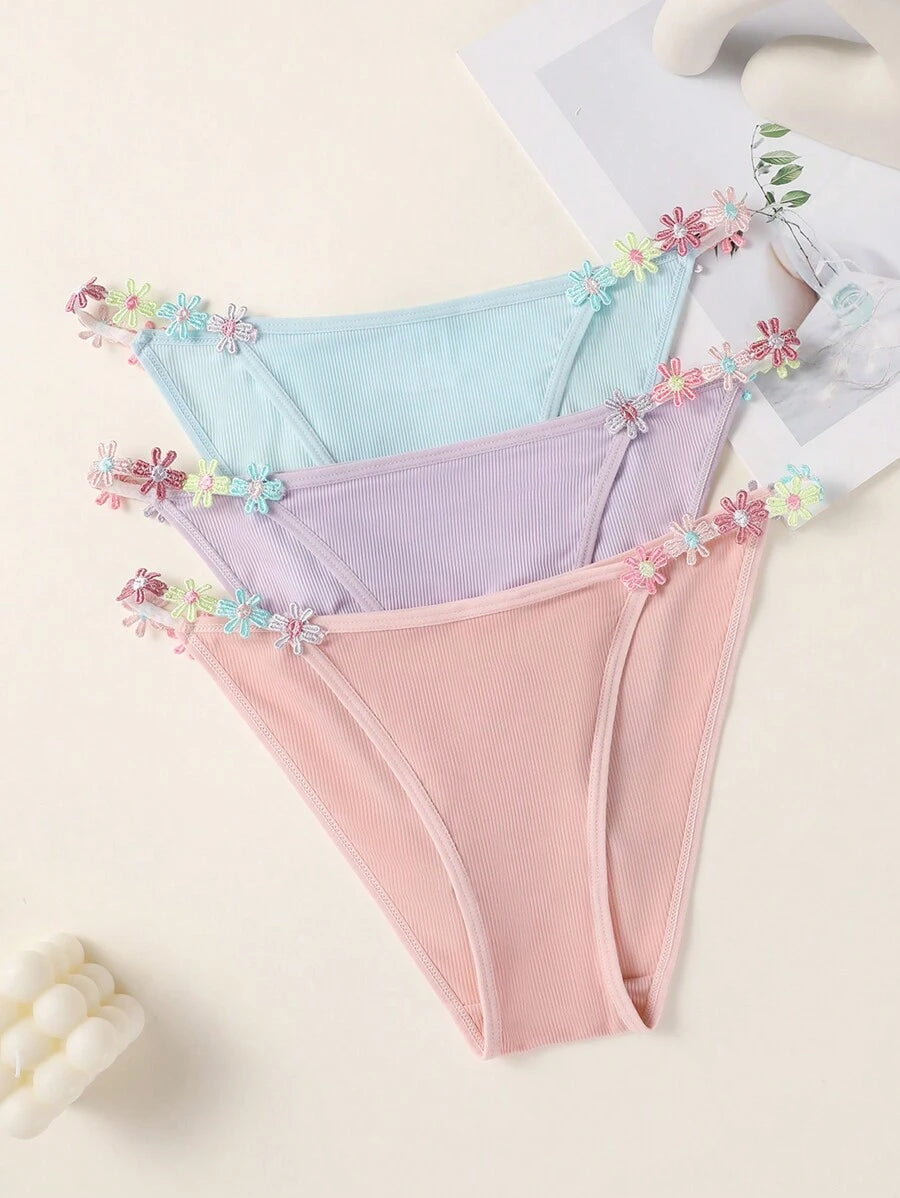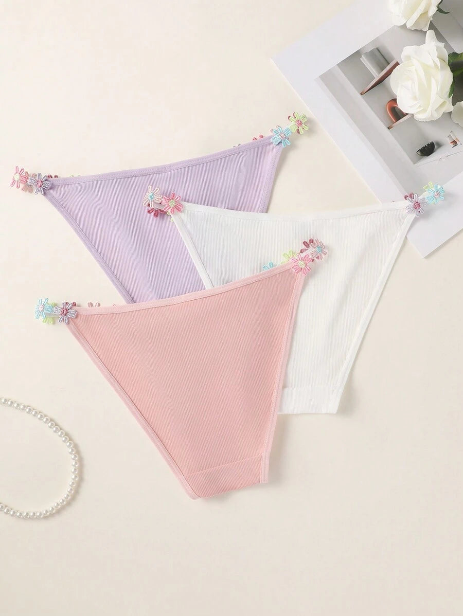 3 piezas/paquete bragas de moda con decoracion floral para mujer