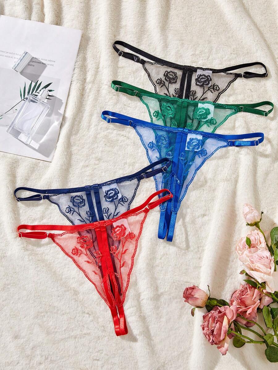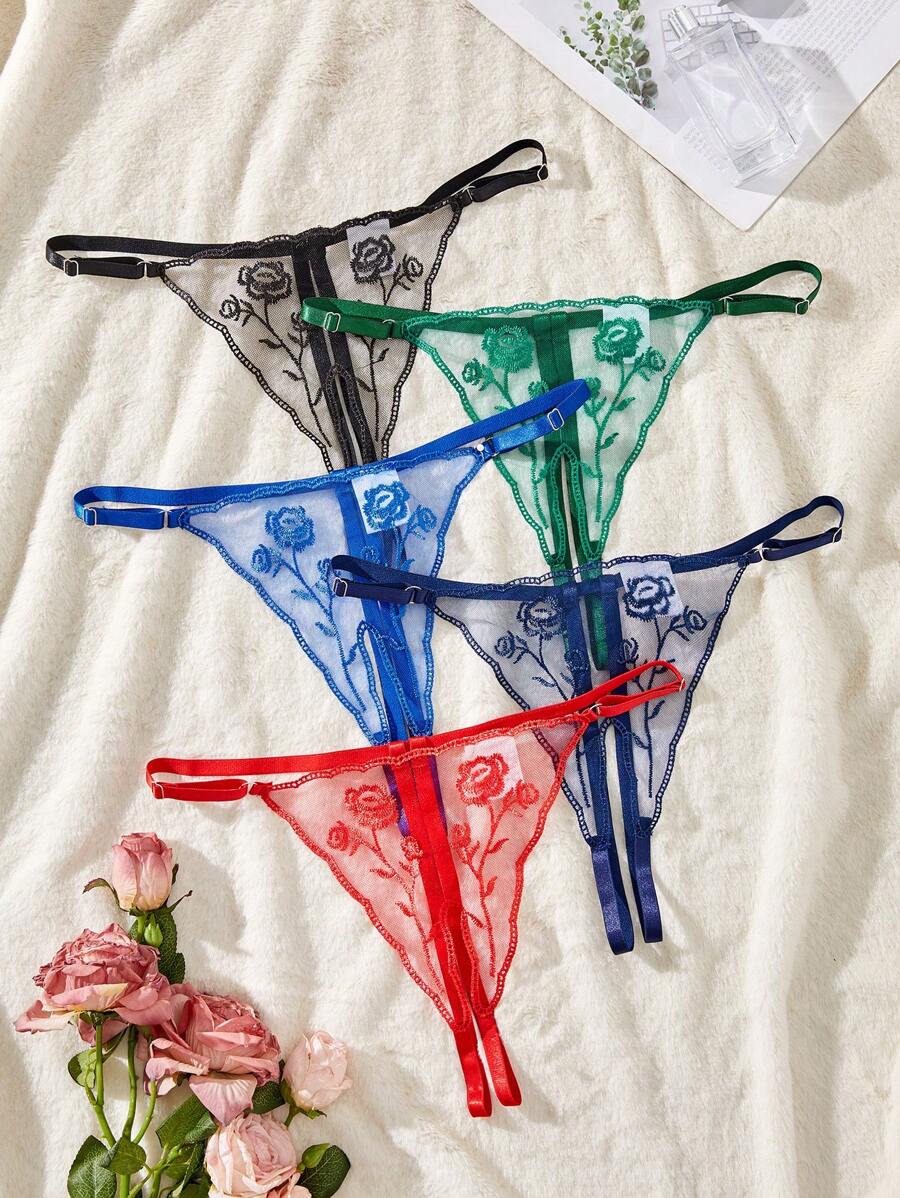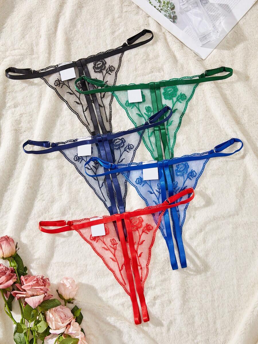 5 piezas/paquete ropa interior sexy con calado y bordado para mujeres