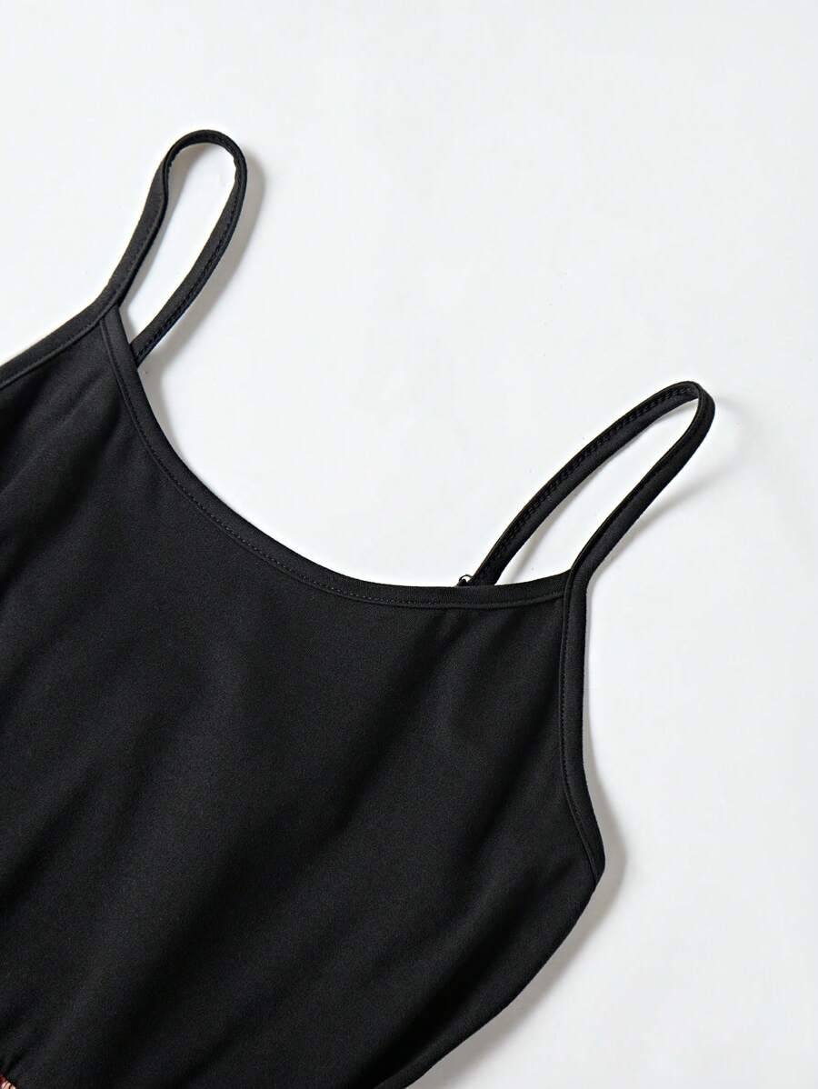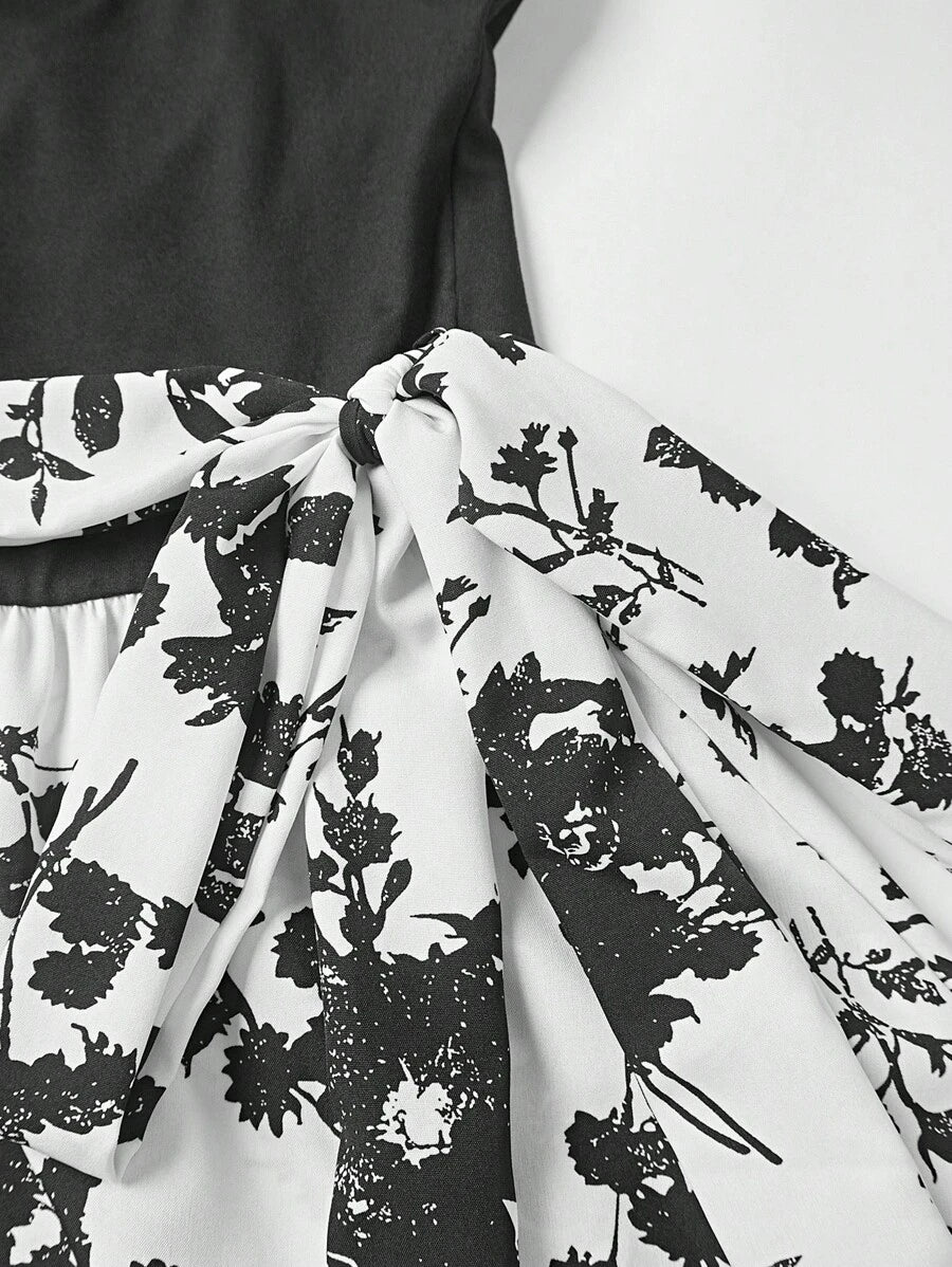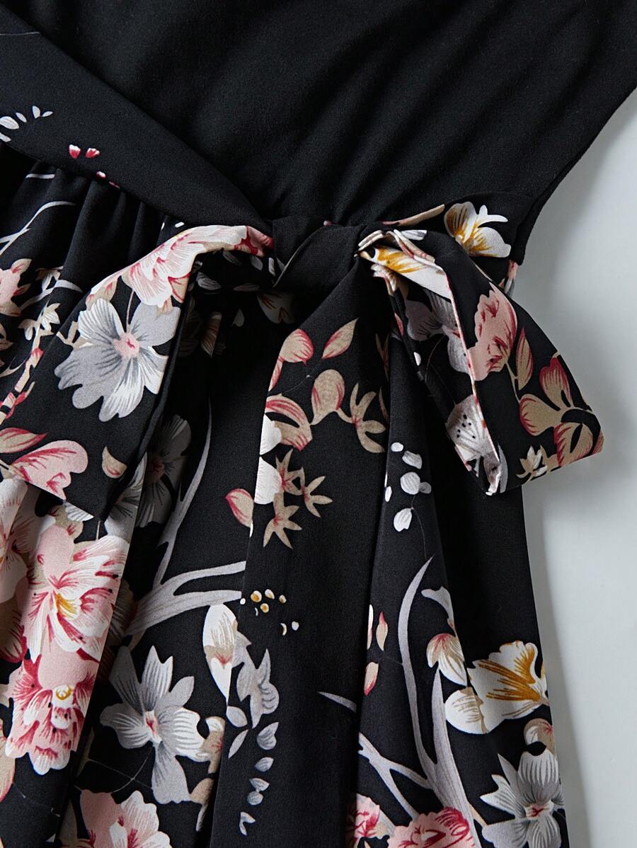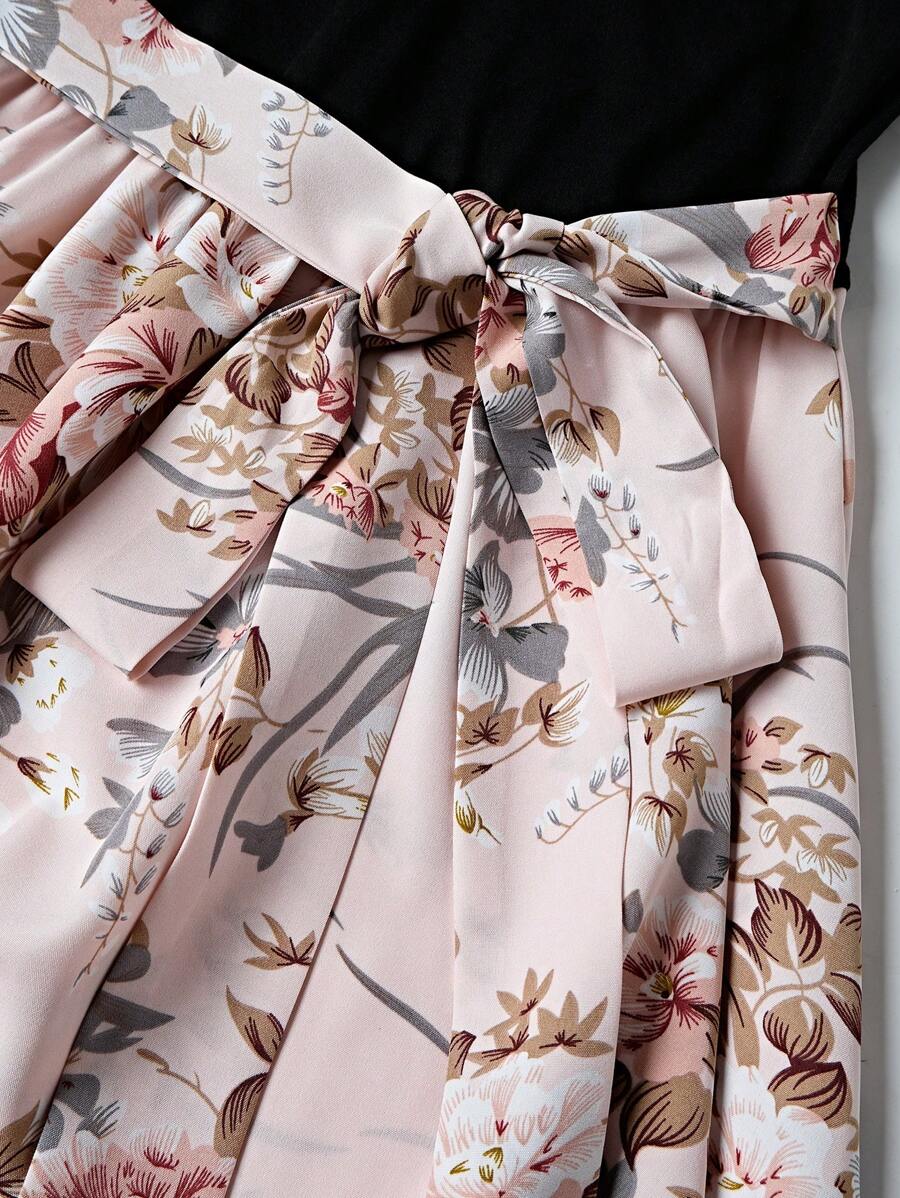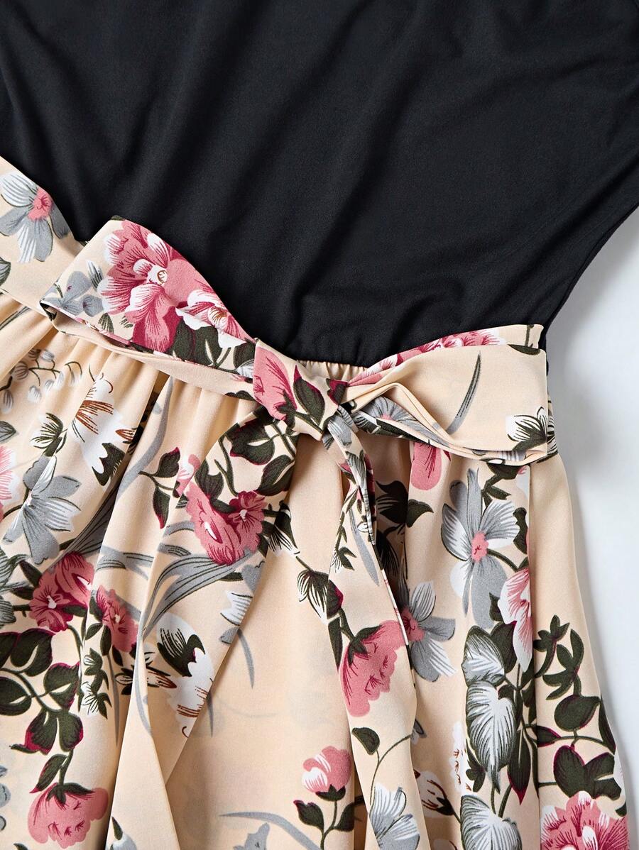 2 piezas conjunto elegante de vestido de tirantes con estampado floral y cinturon + cardigan de manga larga de unicolor para mujer