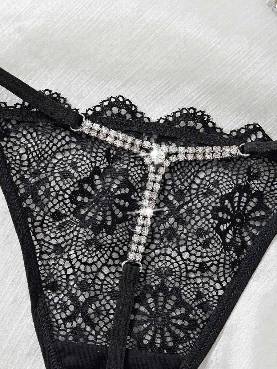 1 pieza tanga de lenceria sexy con decoracion de cristal para mujeres