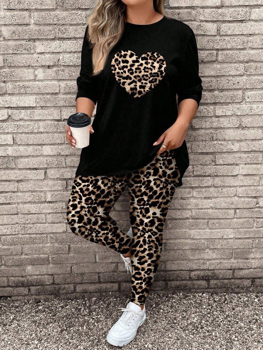 2 piezas/juego camiseta de manga larga casual y pantalones de yoga de talla grande para mujer para otono e invierno