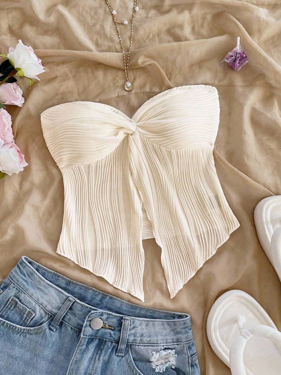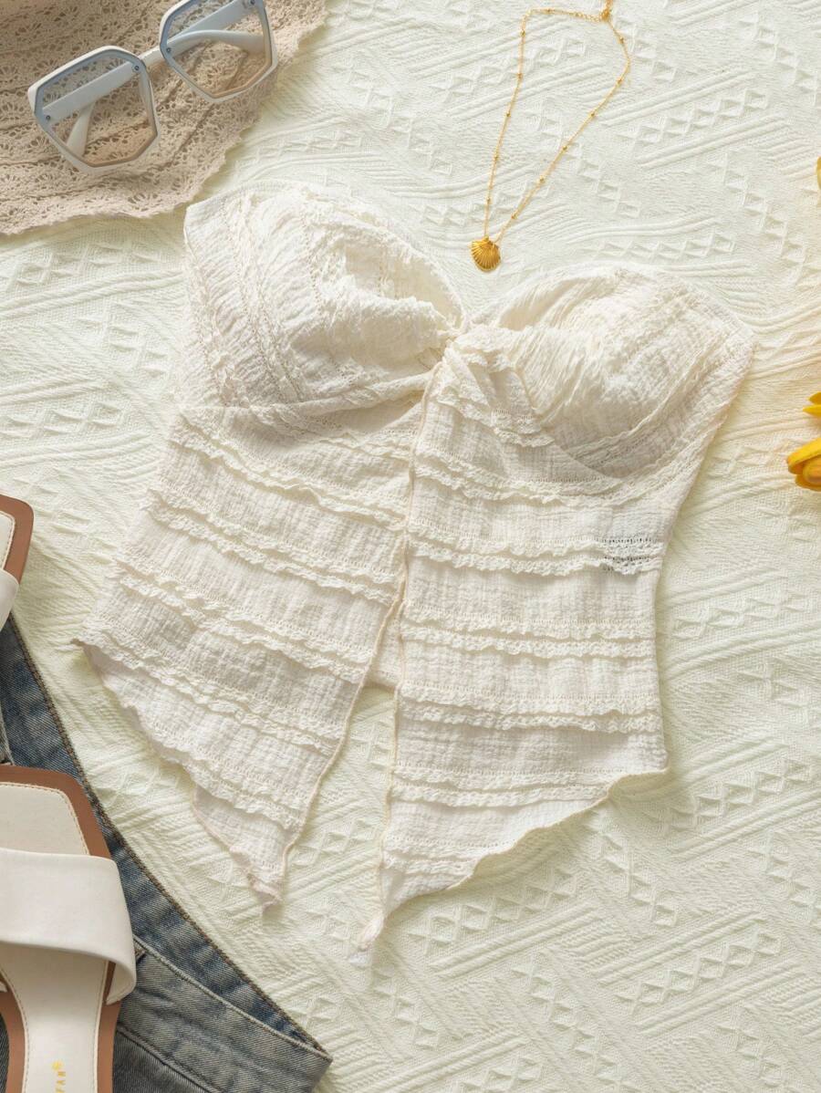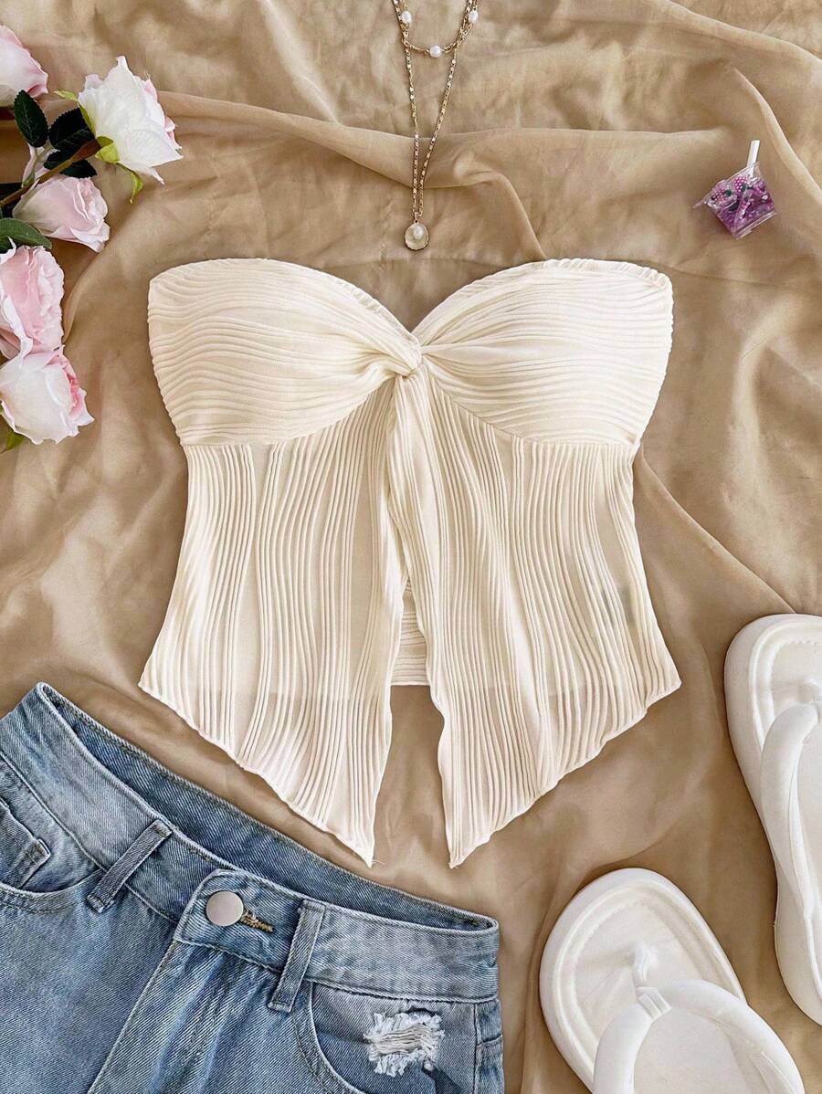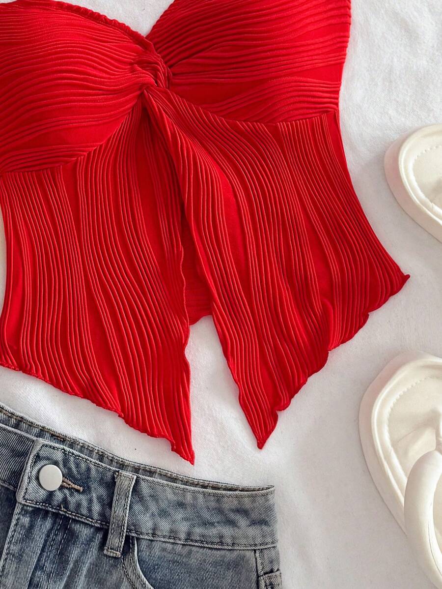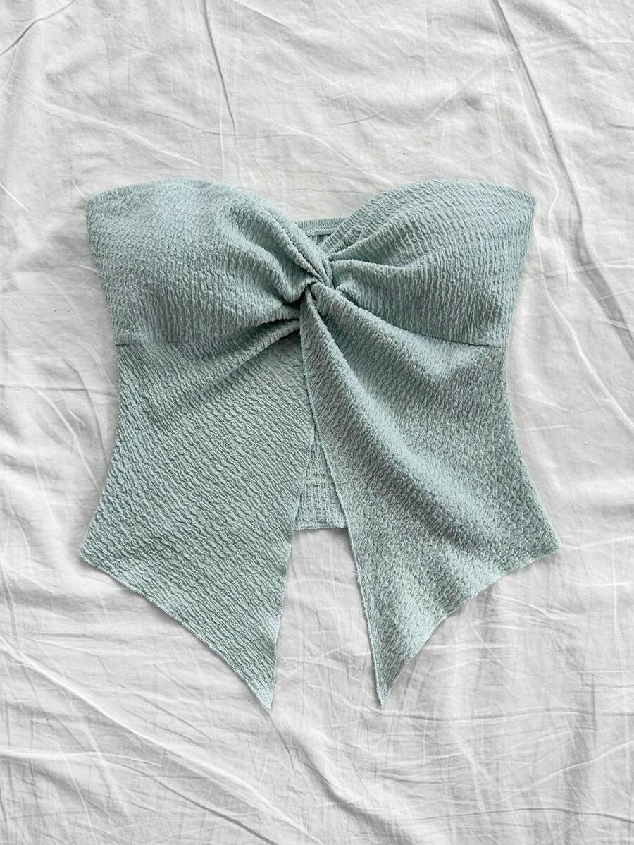 Blusa de gasa comoda con estampado floral azul y blanco, corte halter y abertura frontal, adecuada para te de la tarde, temporada de graduacion, y como capa para el invierno