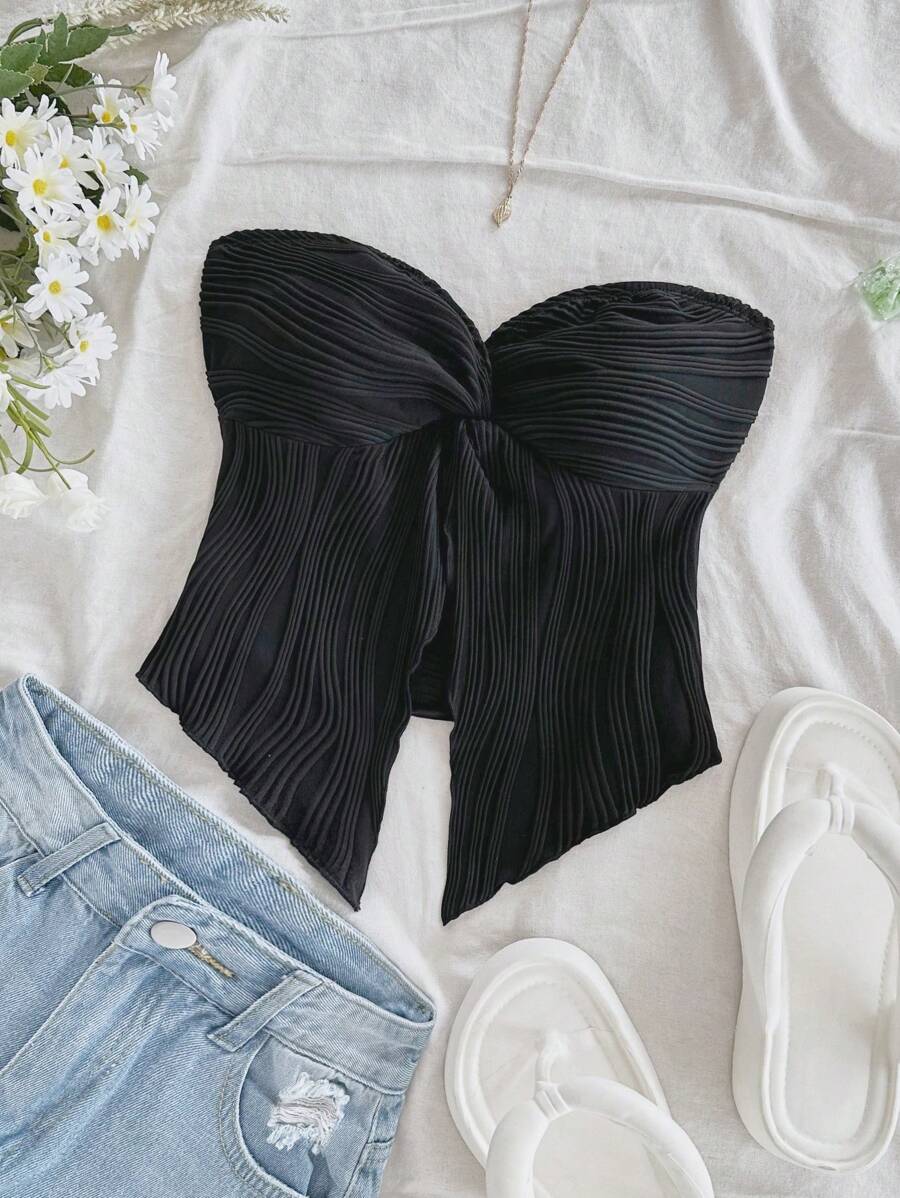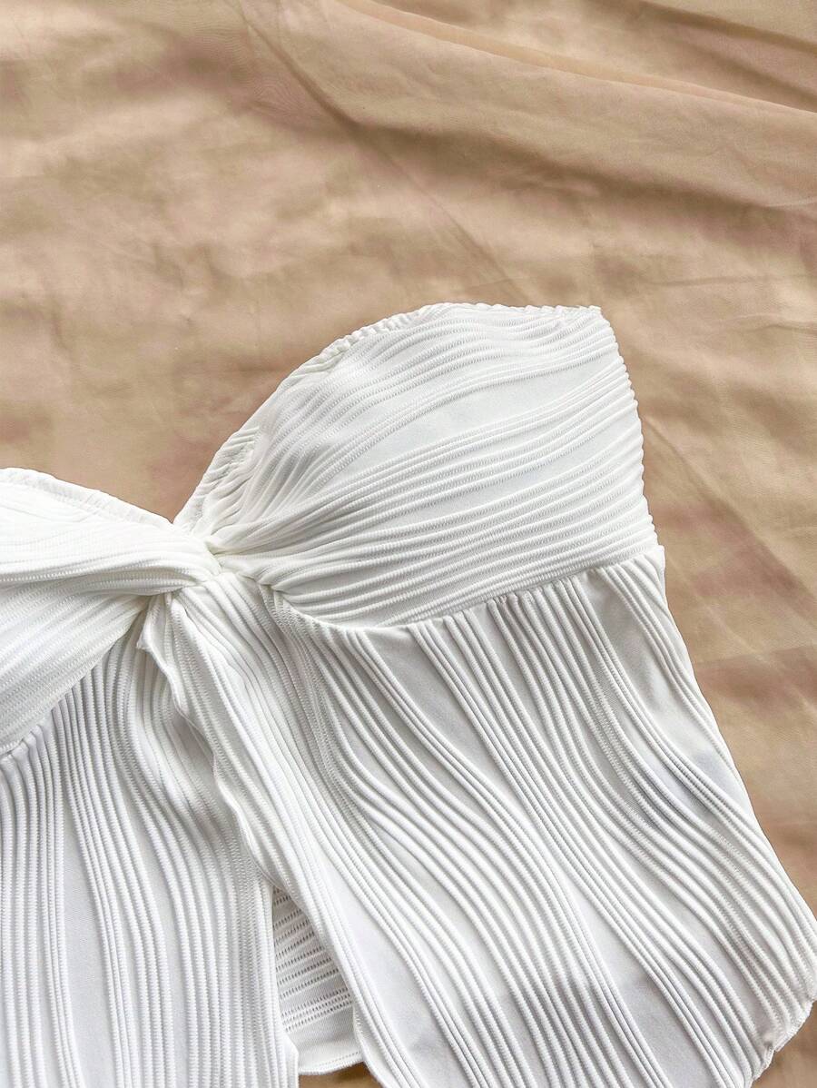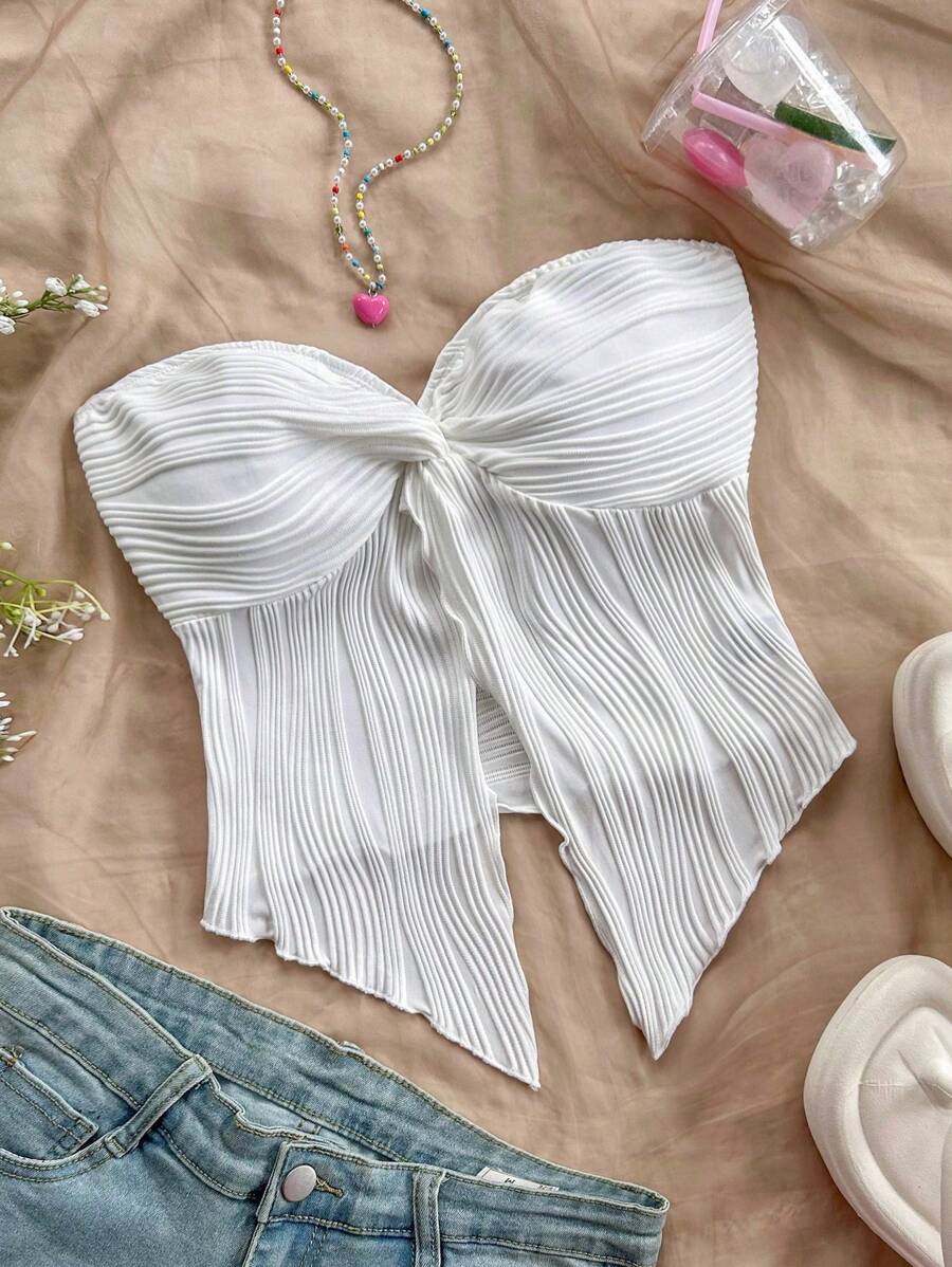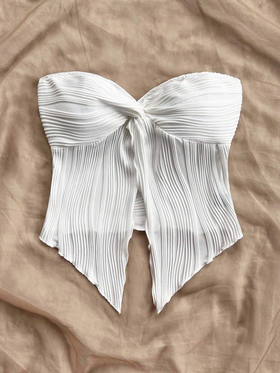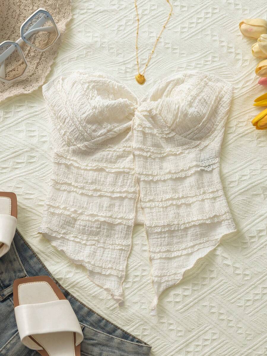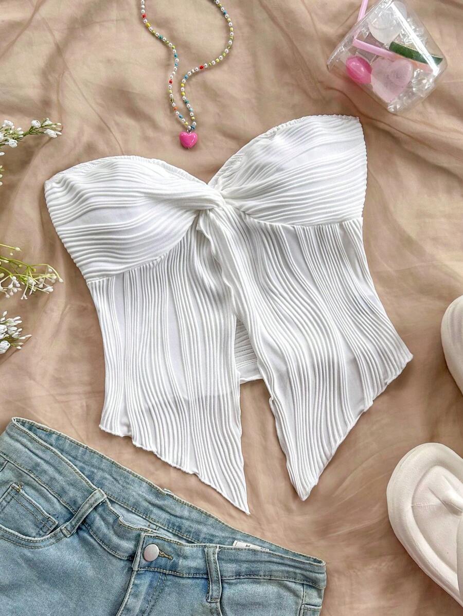 Blusa de gasa comoda con estampado floral azul y blanco, corte halter y abertura frontal, adecuada para te de la tarde, temporada de graduacion, y como capa para el invierno