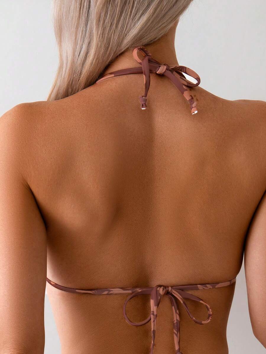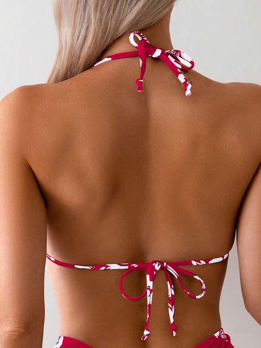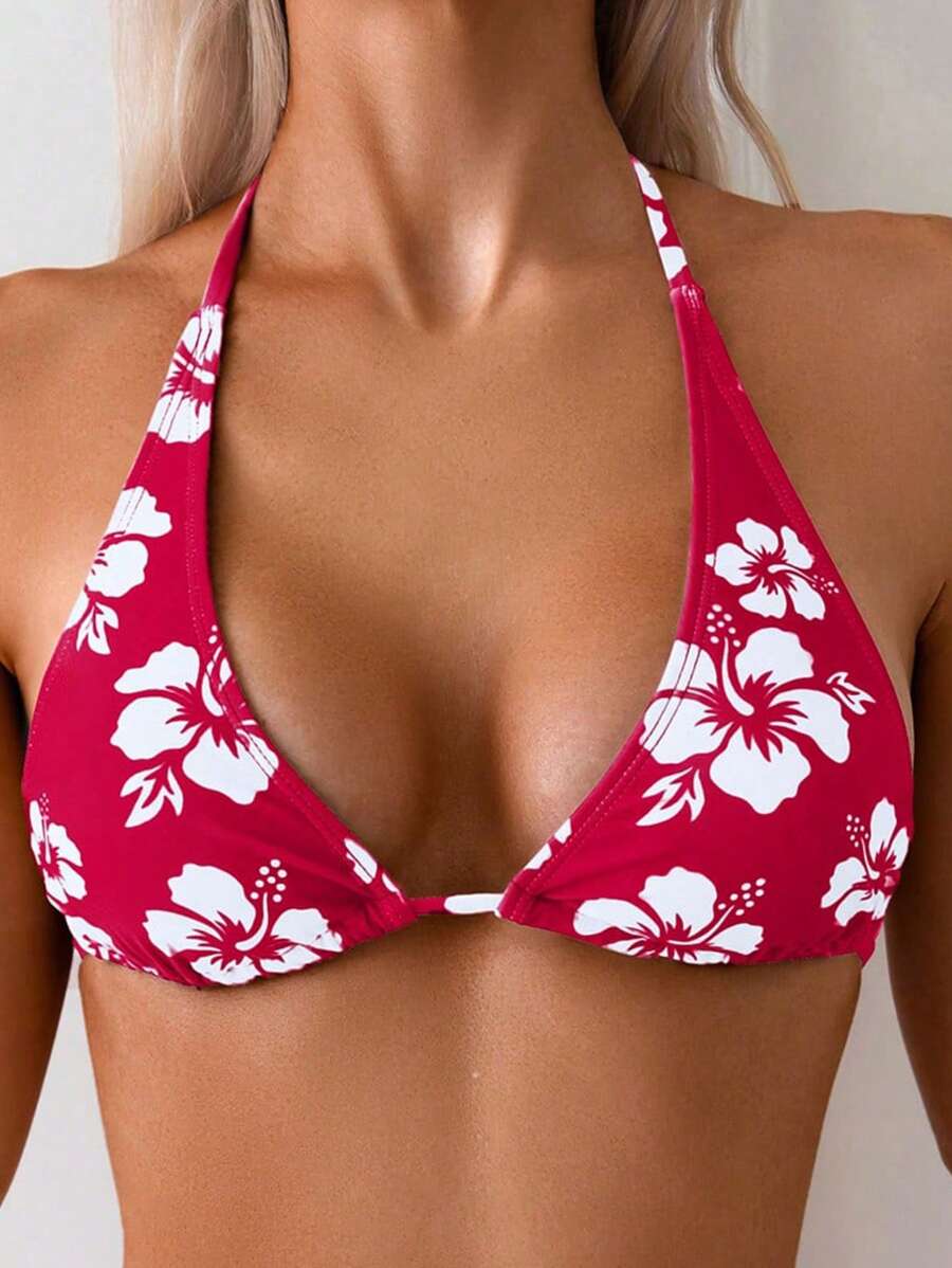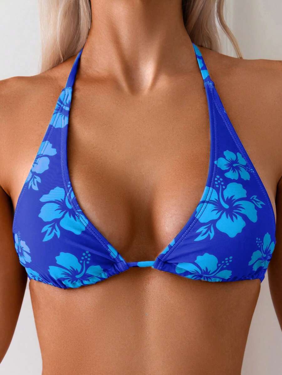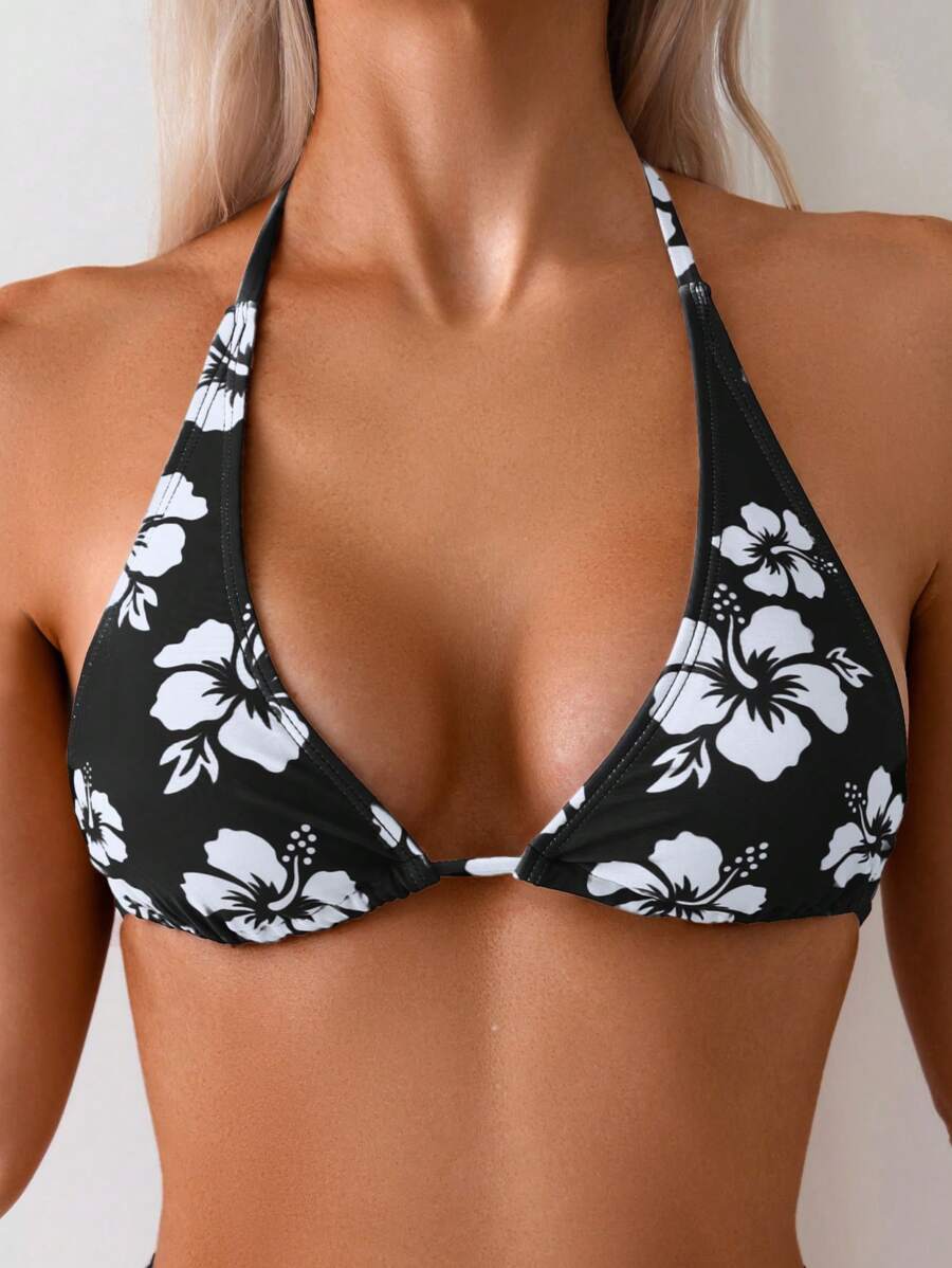 Top de bikini halter con estampado floral y espalda descubierta para mujer
