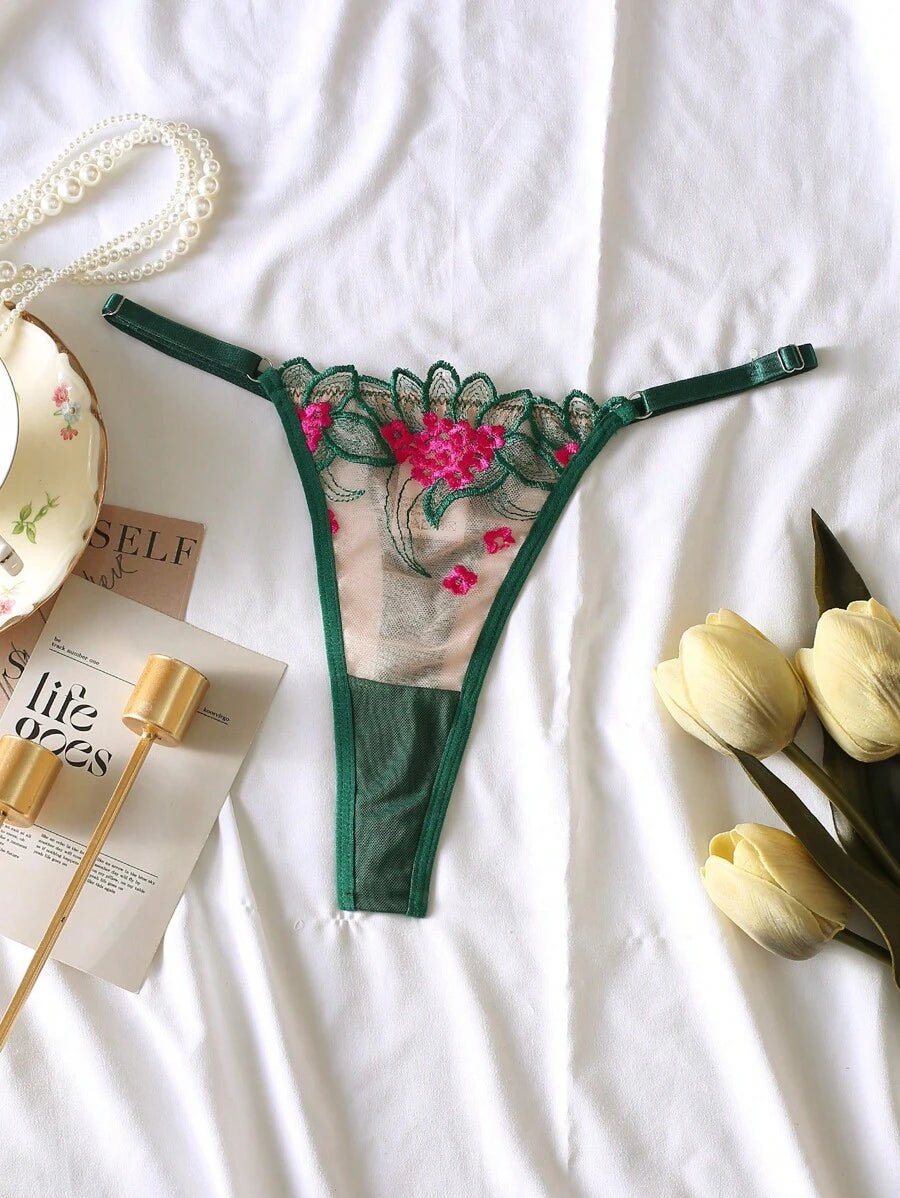 Tanga tipo g inspirado en el estilo vintage, comodo y sexy, con encaje y malla bordada