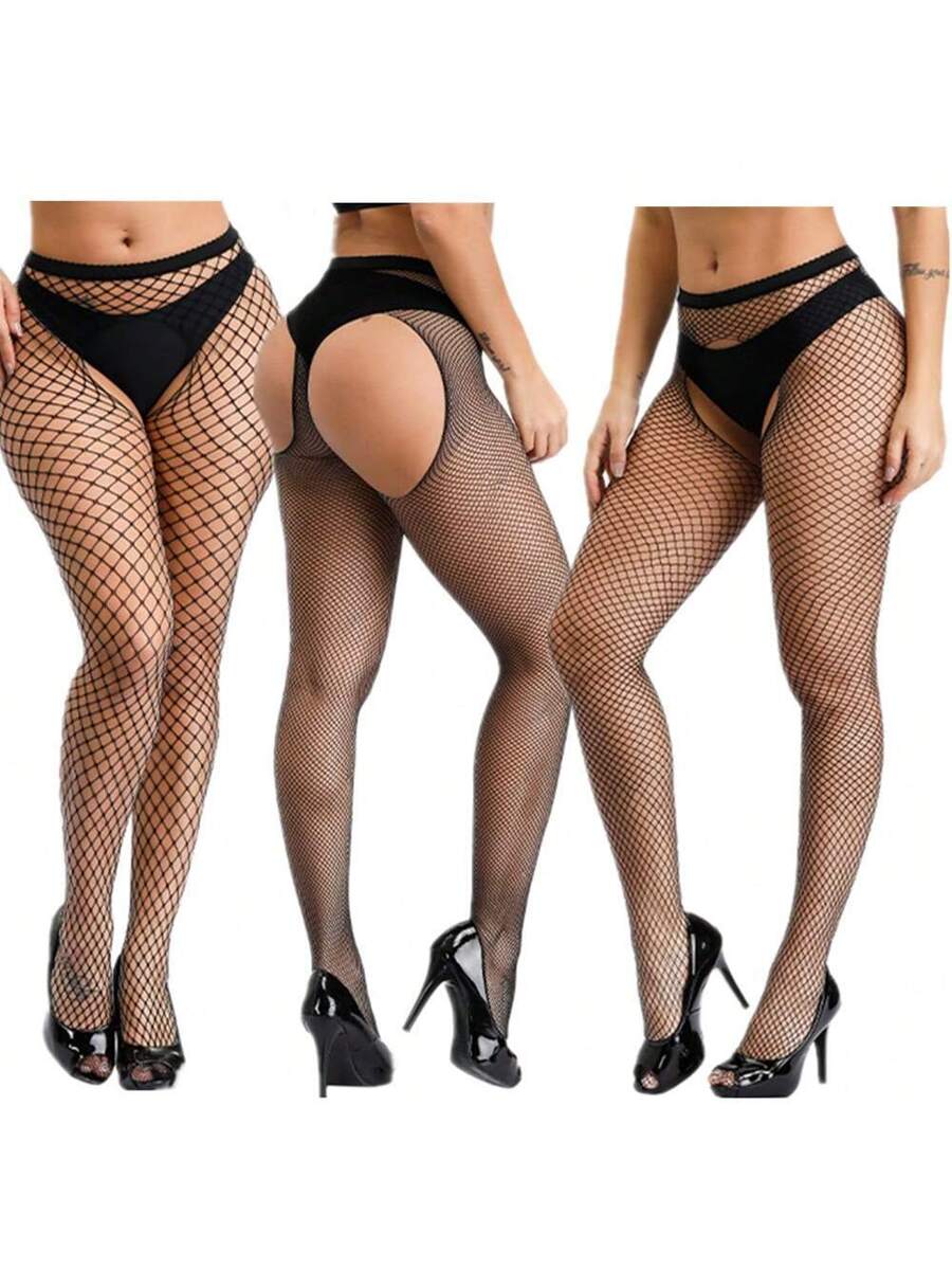 3 pares de medias de red de unicolor a la moda y de talla grande para decoracion diaria para mujeres
