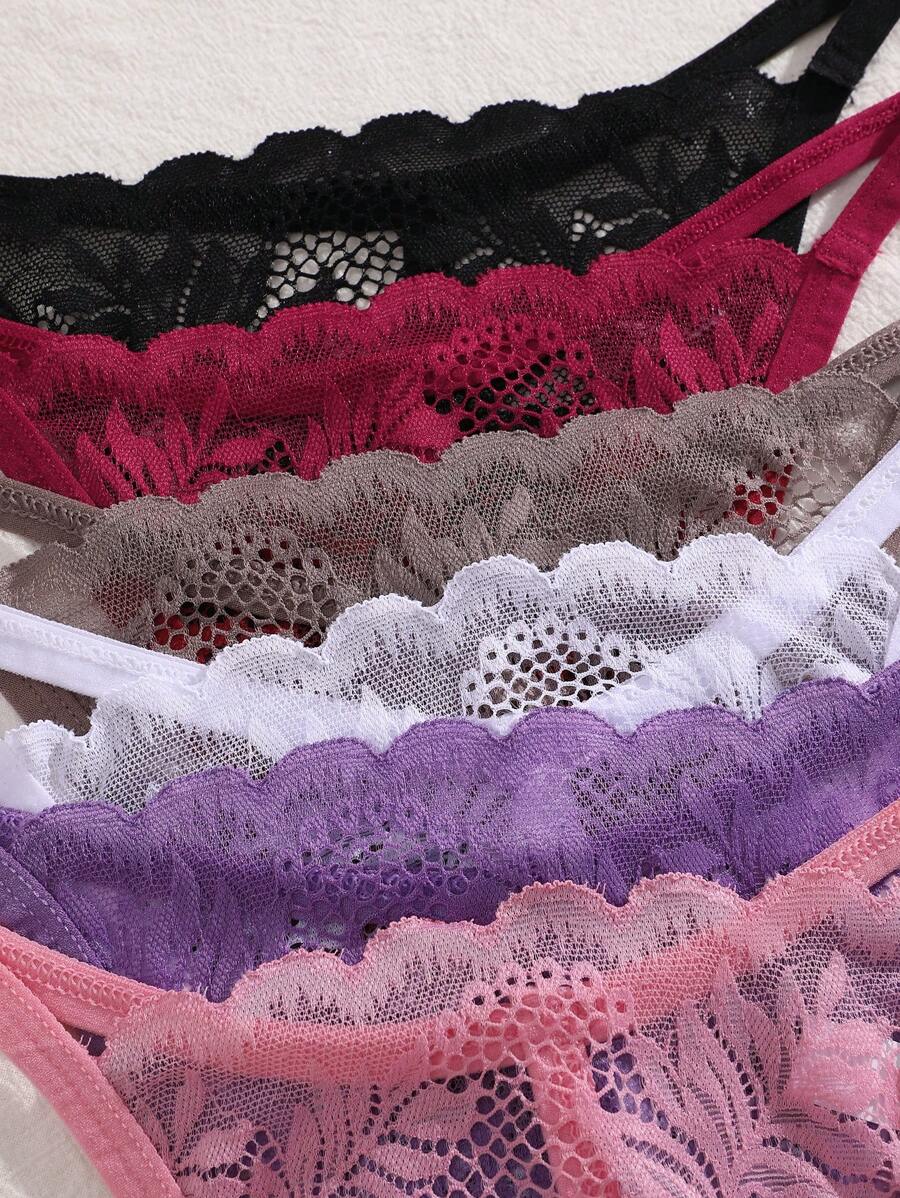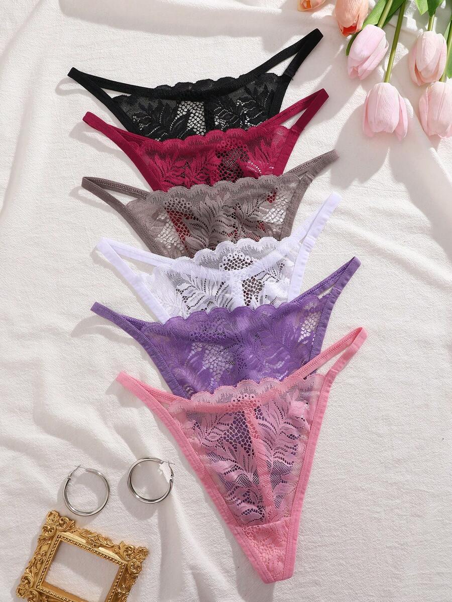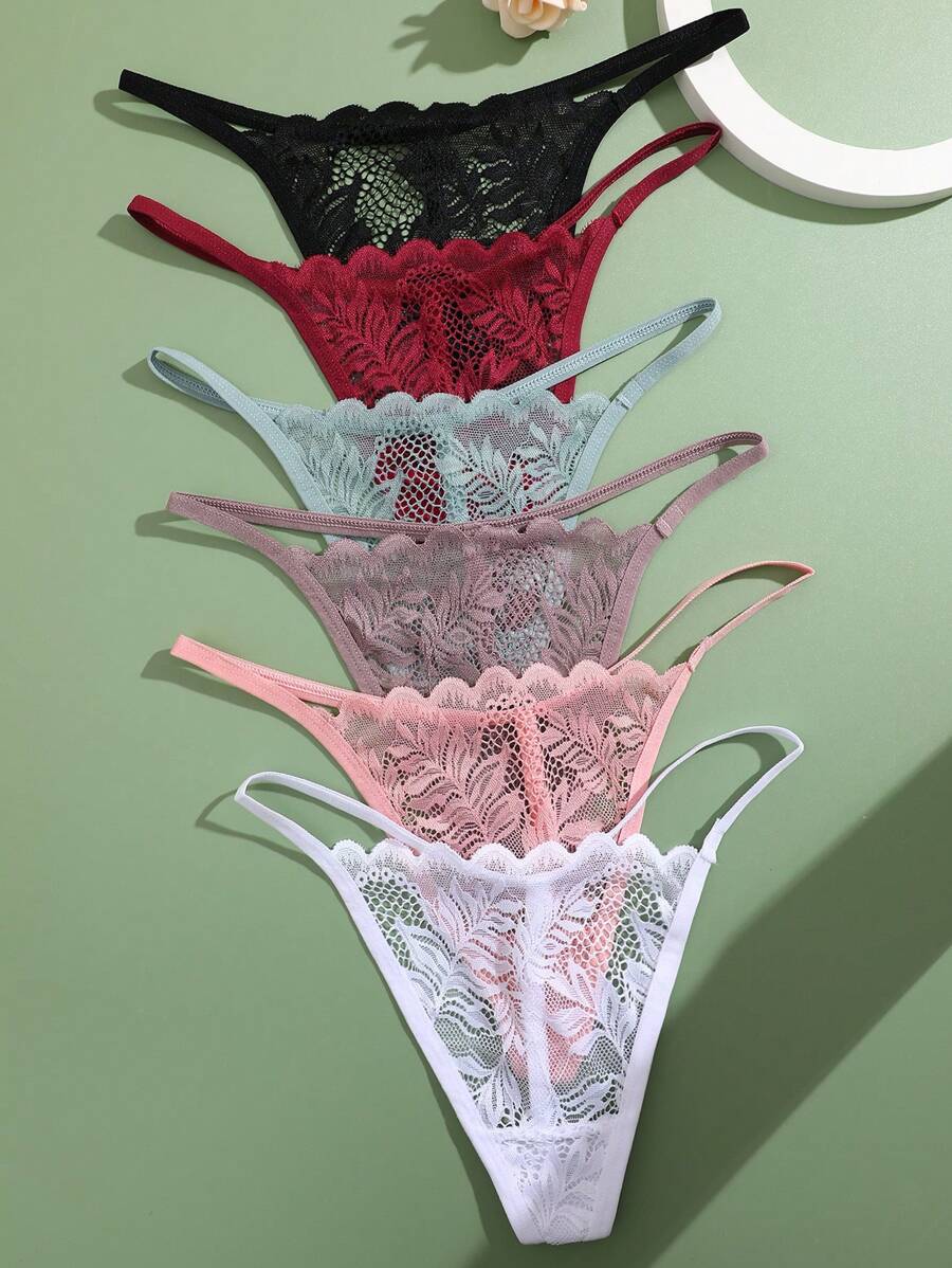 6 piezas de bragas tipo g-string de encaje comodas y transpirables para mujer, ropa interior femenina